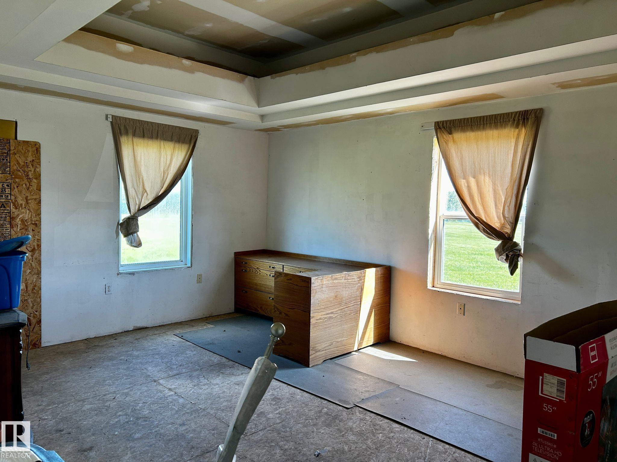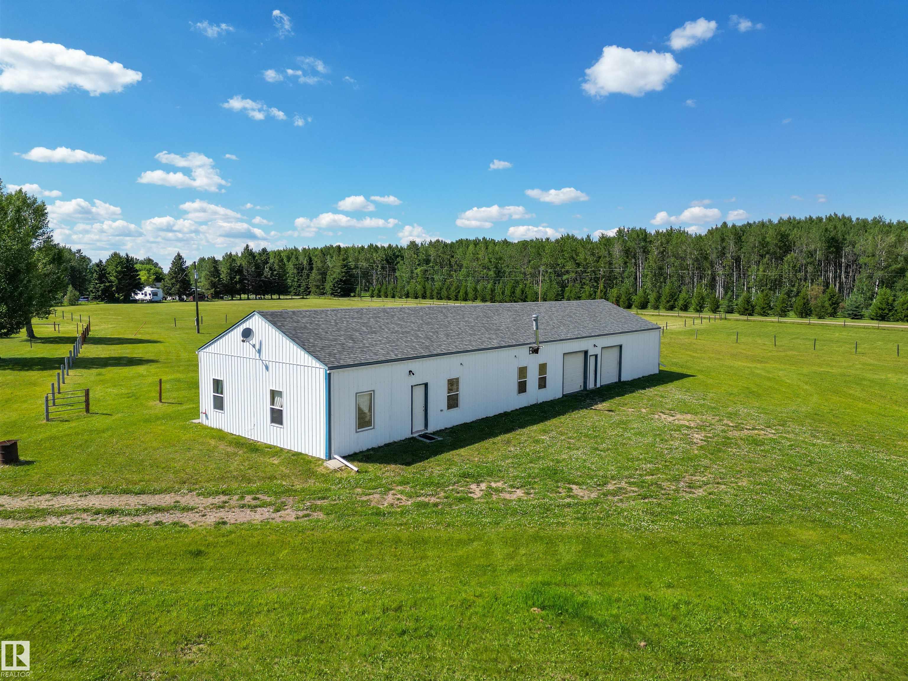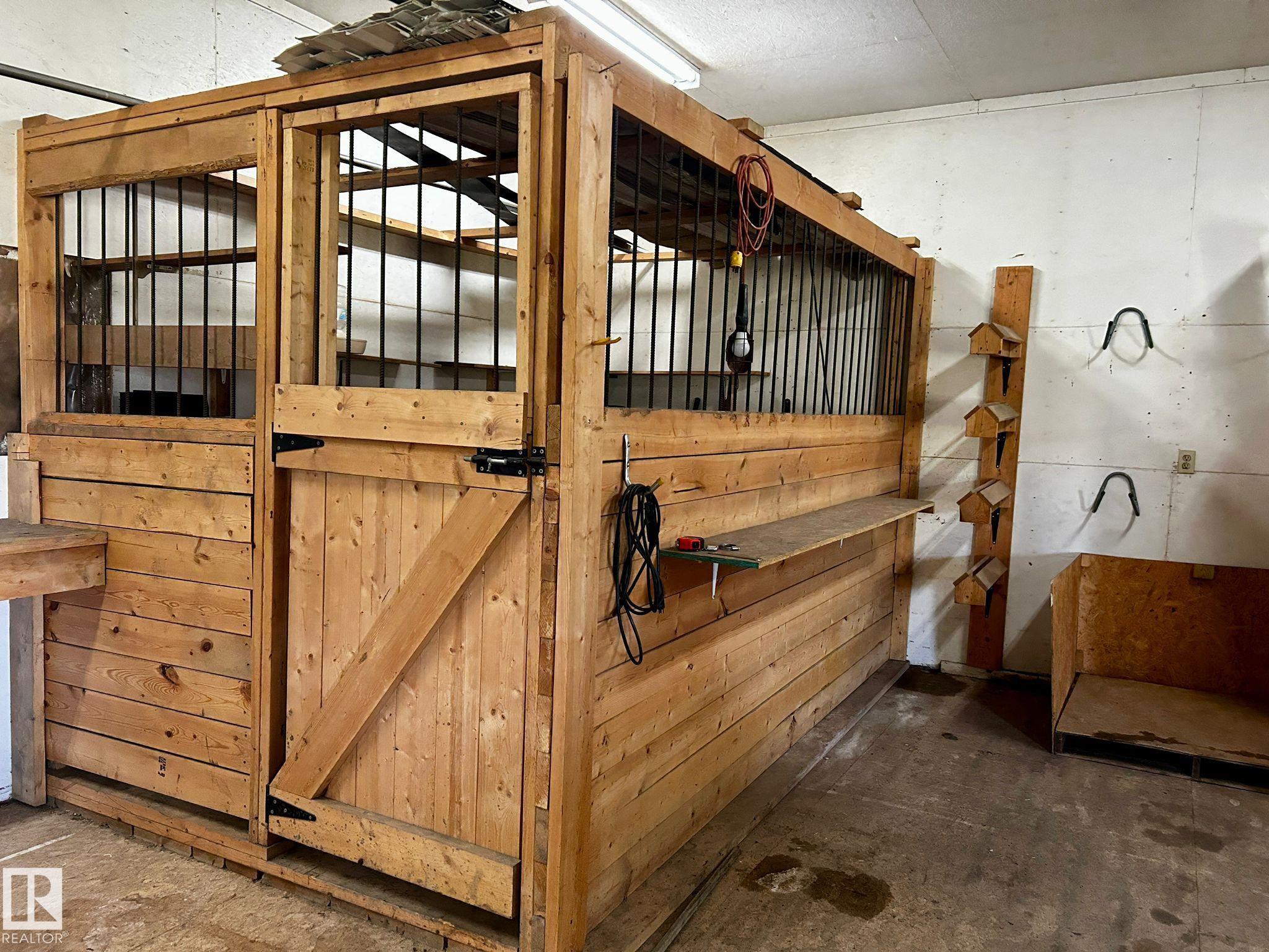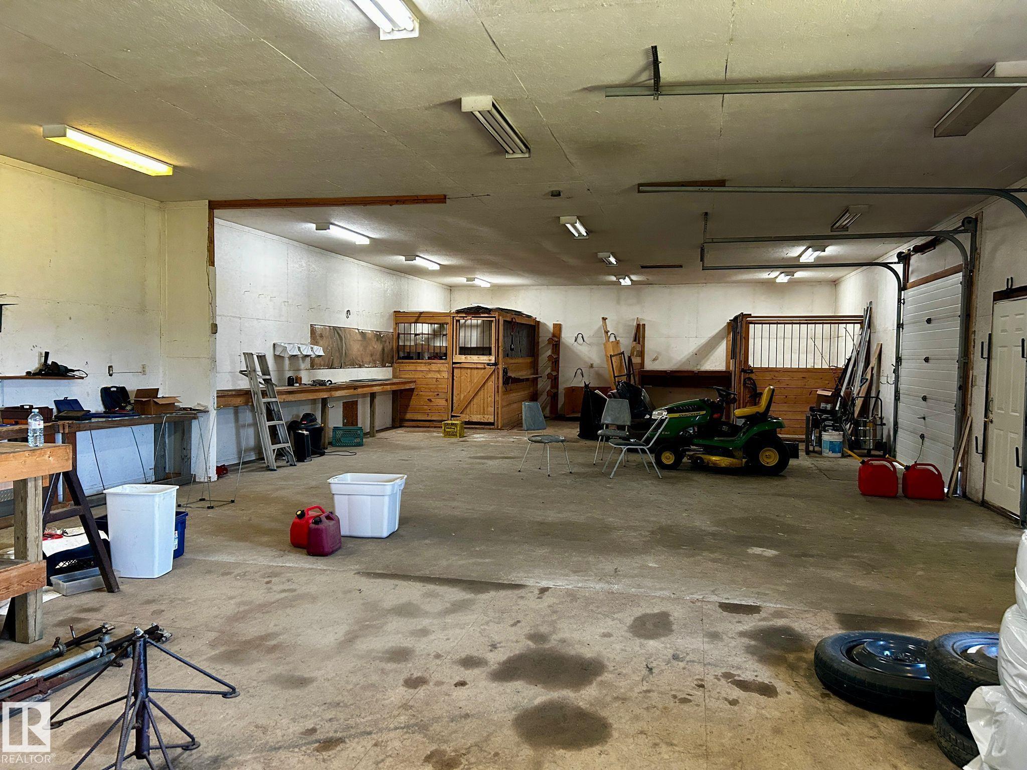 Situated on 9.24 acres, this bright and spacious bungalow has everything you need. The oversized single garage is heated and has laundry with additional laundry hookups in the utility room. There are four bedrooms, with the primary having a unique option of French door access to another bedroom, perhaps the perfect nursery set up? There is a 3 pc and 4 pc bathroom on either end of the home. The center of it all is the country pine kitchen with ample cupboard space and the gorgeous dining room with bay window! And don't forget the large living room with vaulted ceilings. Let's move on to the versatile shop! Measuring 100ftX30ft the possibilities are endless! There is the ability to hook up in-floor heat with four thermostats throughout. The south side of the shop is set up as an office, the middle has a room set up for wood work, and the large bay area with two overhead doors has a wood stove, two horse stalls and incredible space. There is a second approach for road access to the shop as well!