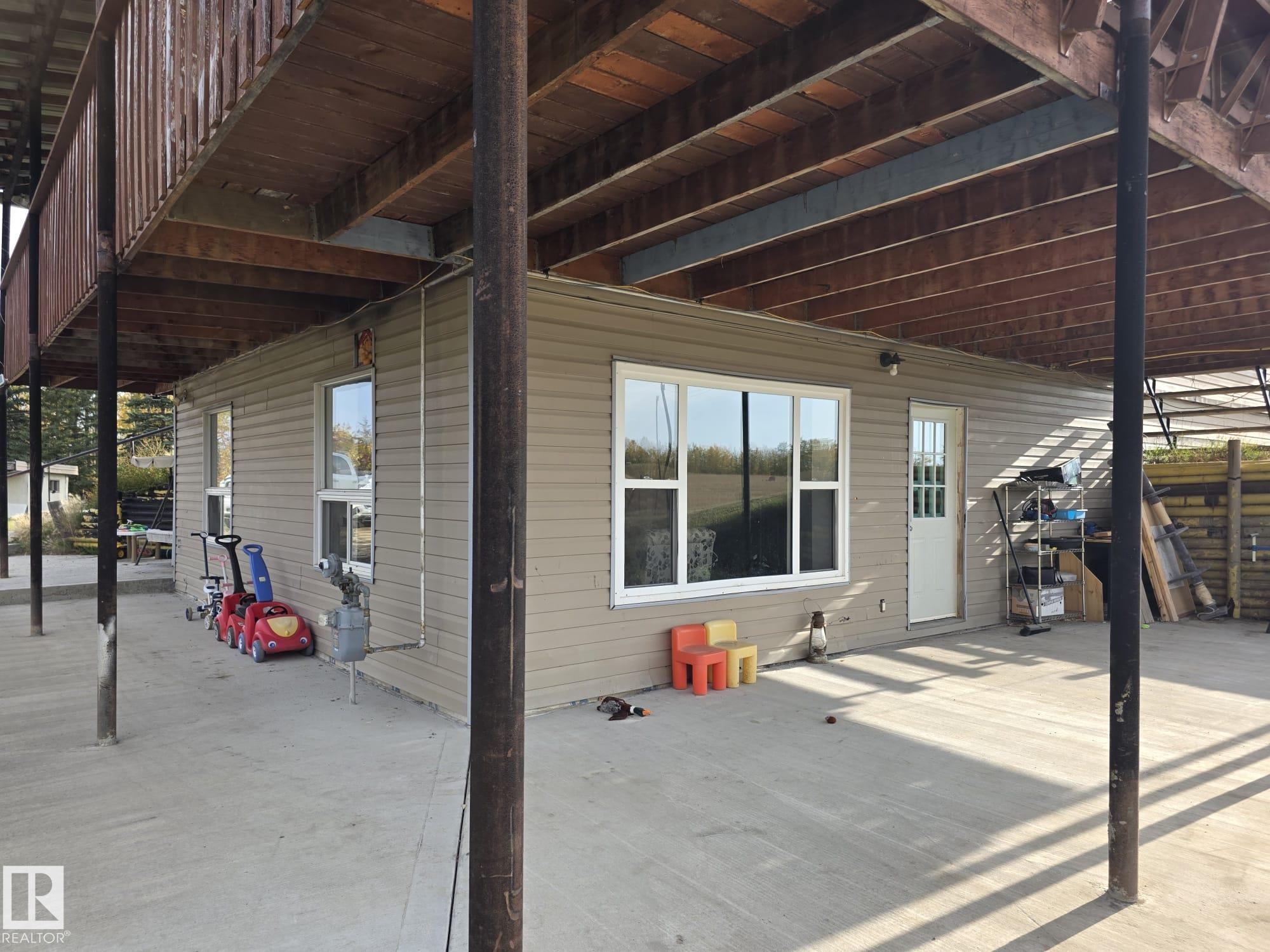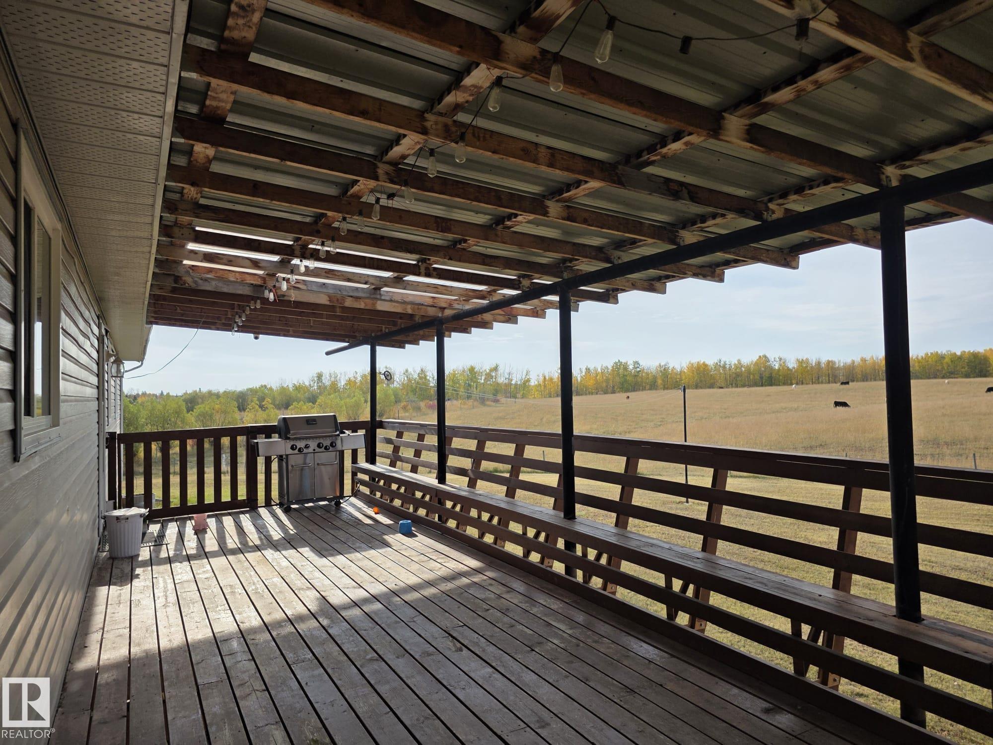 Private acreage living only 9 miles from town! Situated on 4.2 acres, this spacious 6-bedroom, 3-bathroom raised bungalow has a functional layout and fresh paint throughout. The main floor features 4 bedrooms, a bright kitchen and dining area, vaulted-ceiling living room, and convenient main floor laundry with access to the back deck. The primary bedroom overlooks the backyard and includes a 4-piece ensuite with jetted tub, while a second full bathroom completes the level. The developed walkout basement is only awaiting a finished ceiling and offers 2 additional bedrooms, a third full bathroom, large family room with big windows, and in-floor heating. Outside, enjoy the newer concrete patio and plenty of space to roam. The property is serviced by a Bell & Siphon septic system and an artesian well with auto waterer. A perfect blend of privacy and convenience just a short drive from town.
