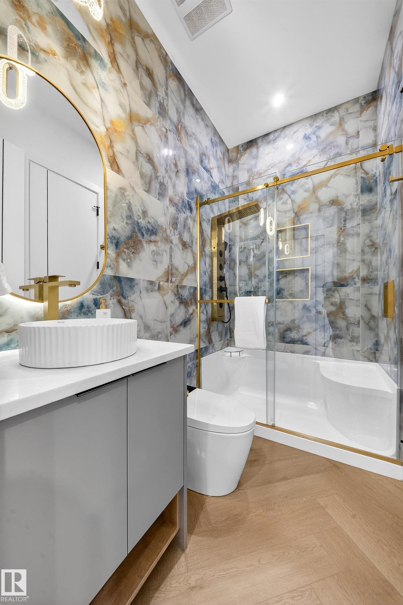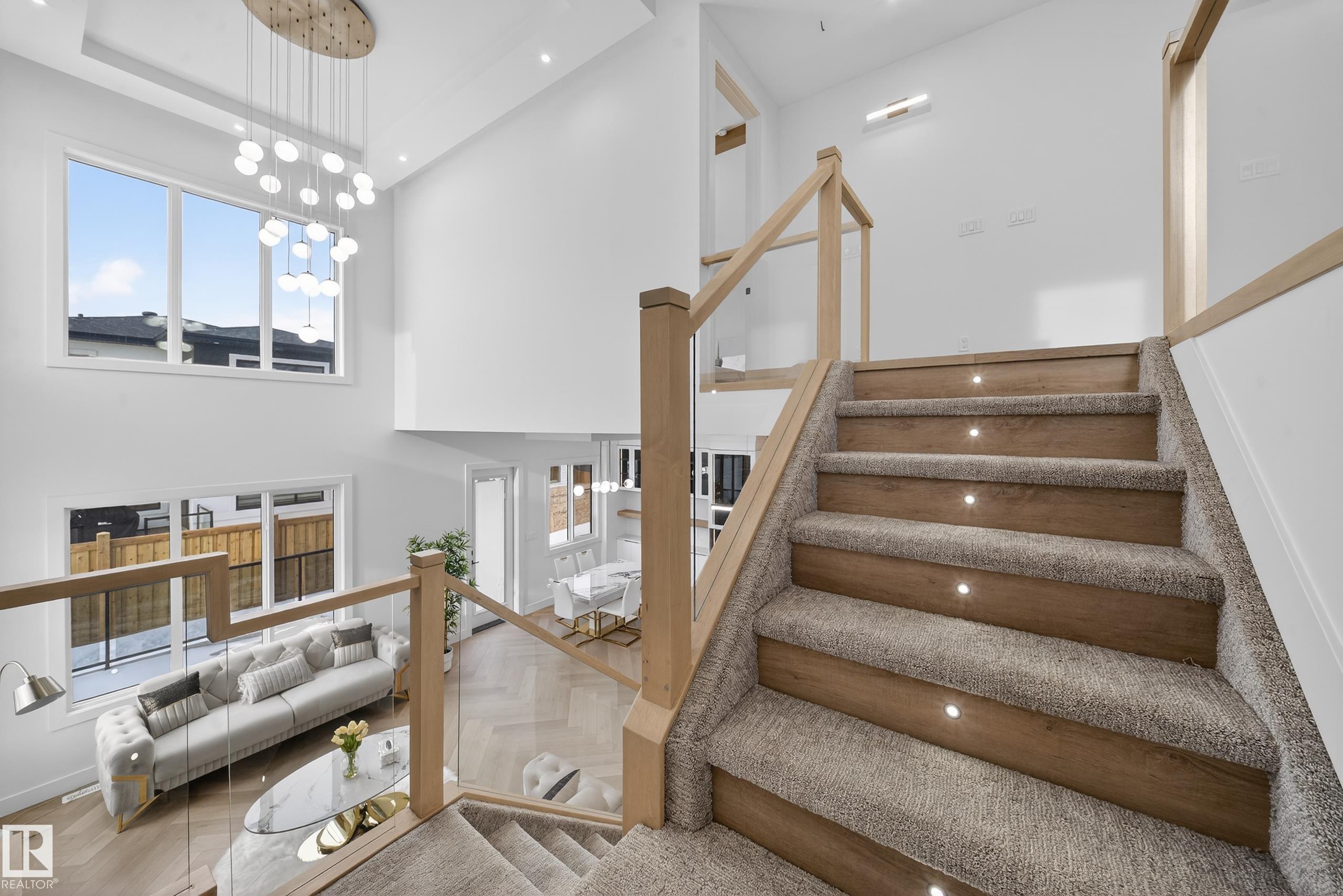 Built by the builder with LOVE & PASSION, one-of-a-kind Alces home sits next to the PARK and offers total 8 bedrooms, 4 with beautiful park views, a dramatic open-to-above living room with custom LEATHER-paneled feature wall and 3D vapor fireplace, chef's kitchen with upgraded appliances, HERRIGBONE VINAYL FLOORING ON MAIN & 2ND, 3D vapor fireplace in the island, Mohave luxury quartz countertops and matching full-height quartz backsplash, modern feature walls, 10 ft painted ceiling on main floor that make the home feel brighter & more open, a dedicated PRAYER room, special space for your Roomba & COFFEE STATION, upgraded lighting and plumbing fixtures, ABOVE 3900+ SQ.FT LIVING SPACE, 8 BEDS, 6 FULL Baths, double attached garage with cabinets, fully finished BSMT with income potential LEGAL 2-bedroom suite, additional 1-BED owner's suite for exceptional flexibility. MASTER bedroom showcases a vaulted ceiling and huge custom windows, prime location close to all amenities with easy access to major highways.