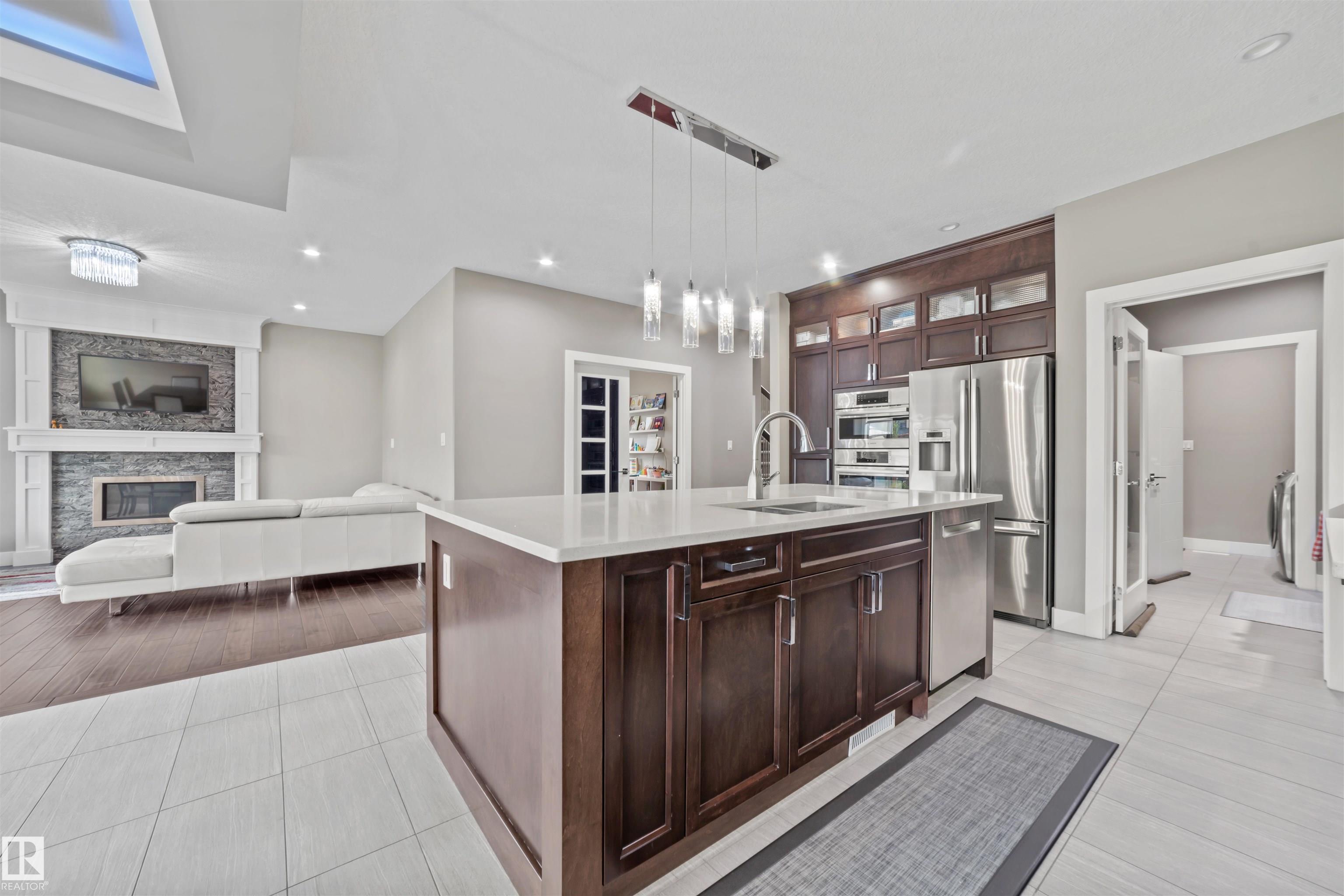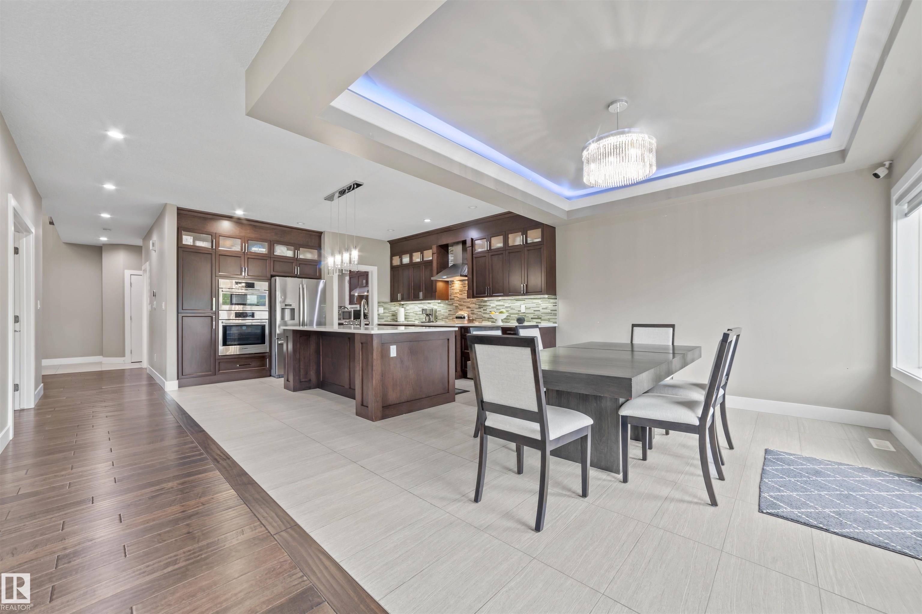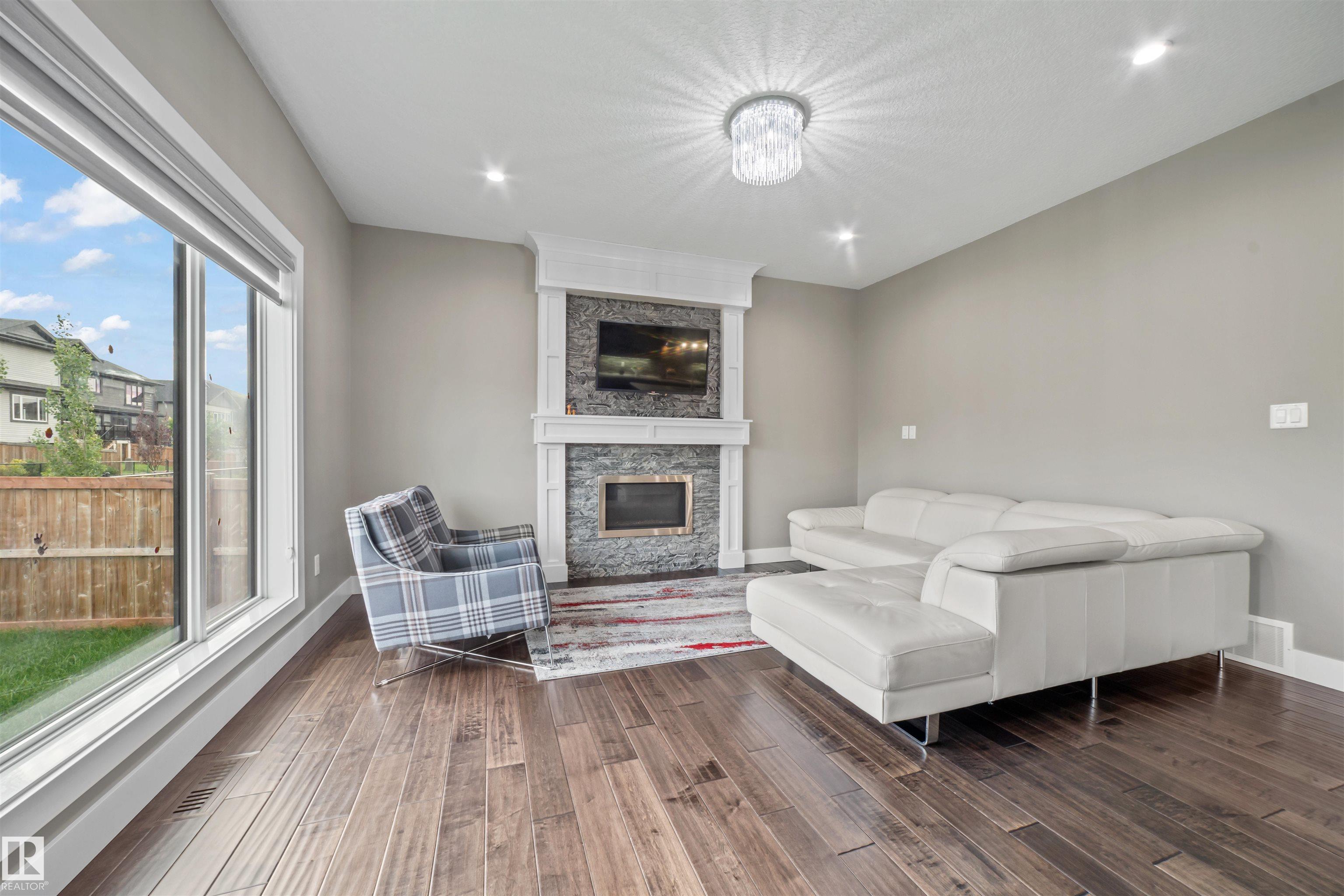 Welcome to this stunning 2,864 SqFt 2-storey home including 2BEDROOM LEGAL BASEMENT SUITE in the vibrant community of Allard, backing directly onto a scenic walking trail! Featuring 7 spacious BEDROOMS and 5 FULL BATHROOMS, this beautifully designed home boasts 9-ft ceilings on all floors, engineered hardwood throughout the main living and dining areas, and a sleek stone-faced gas fireplace in the great room. The chef's kitchen is a dream with ceiling-height maple cabinetry, a large island with eating bar, tile flooring, and an adjoining SPICE KITCHEN. A main floor bedroom and full bath offer flexibility for guests or multi-generational living. Upstairs you'll find a spacious bonus room with wrought iron railings, a luxurious primary suite with 10-ft ceilings, jetted tub, separate shower, and walk-in closet. Two more upstairs bedrooms include a private ensuite and a Jack & Jill bath, all with walk-in closets. The fully finished legal 2 bedroom basement has a separate entrance and is currently tenanted.