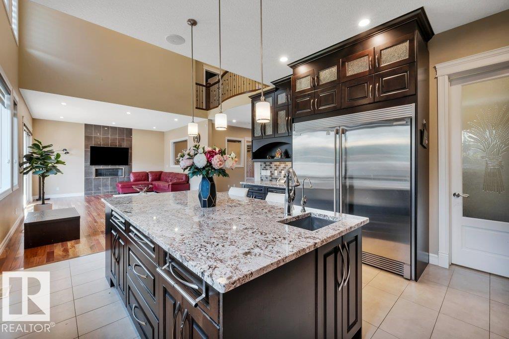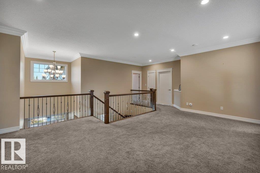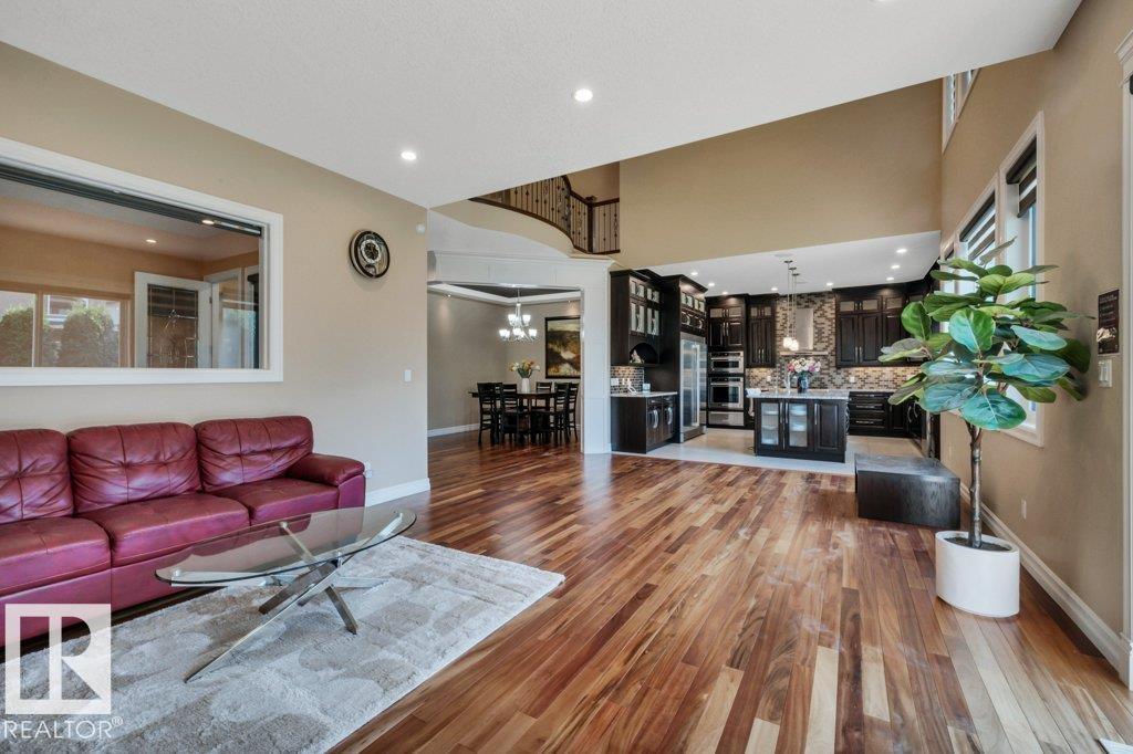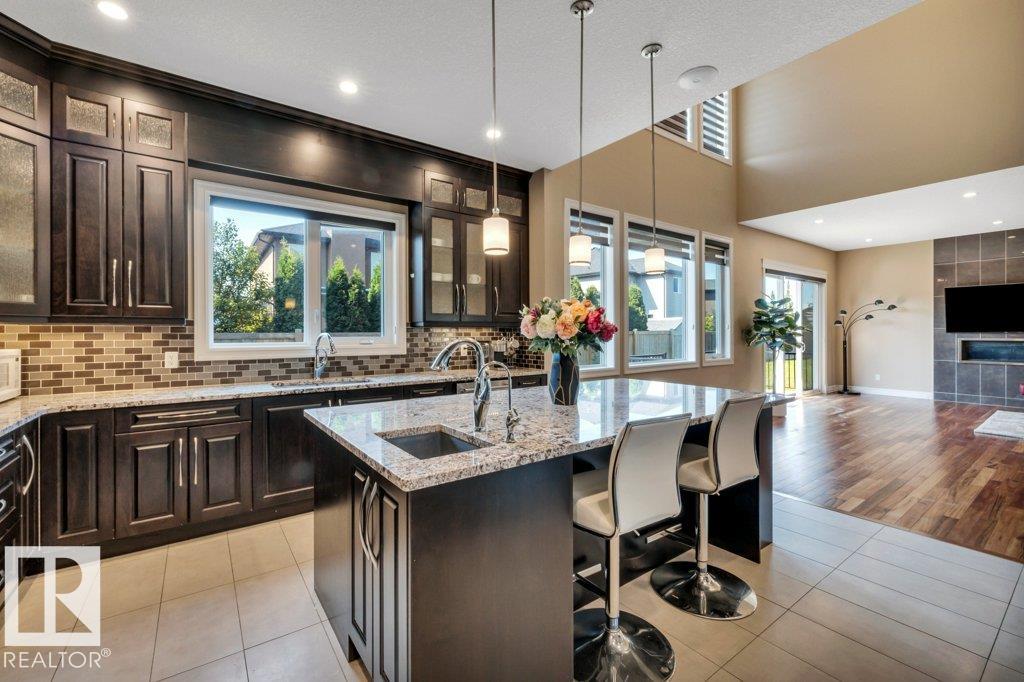 Welcome to Allard! This magnificent mansion offers over 5,370 sqft of living space, featuring 5 large bedrooms & 4.5 baths. The spacious foyer leads to a VERSATILE FLEX ROOM, ideal as a second dining room or guest receiving area, and flows into the majestic living room with 20 ft ceilings, large 3-panel windows, and a feature wall fireplace. The luxurious island kitchen boasts a WALK-IN PANTRY, GRANITE COUNTERTOPS, SOLID WOOD CABINETRY, and a BREAKFAST NOOK overlooking the FULLY FENCED BACKYARD BACKING ON TO TREES! Upstairs, you'll find 4 large bedrooms and 2 ensuite baths, including the primary bedroom with a SECOND FIREPLACE, JET SOAKER TUB, and WALKIN CLOSET. The FULLY FINISHED BASEMENT offers a GYM ROOM, a THEATRE ROOM with SPEAKERS and HT SCREEN, and a HUGE REC ROOM W/ FIREPLACE & WINE BAR! Enjoy a short walk to the CAVANAGH WALKING TRAILS, and close proximity to schools, shopping, transportation, parks, and playgrounds.