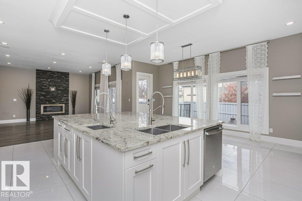 Experience luxury living in this stunning 5 bed, 5 bath, 5,236 sq ft contemporary home in Edmonton's sought-after Allard community. Built in 2015 on a 6,000+ sq ft lot, this family gem is steps from parks, top schools (Father Michael McGivney and shopping at South Edmonton Common.Bright open concept main floor with grand foyer, gourmet kitchen featuring granite counters, gas range, double ovens, huge island & butler's pantry. Cozy great room with linear fireplace flows to dining & deck with BBQ gas line. Upstairs: lavish primary suite with spa like 5 pc ensuite & walk in closet, 4 more bedrooms (including Jack-and-Jill bath), bonus room, and 2nd-floor laundry. Fully finished basement offers a media area, 5th bedroom & 3 pc bath perfect for guests or teens. Enjoy triple pane windows, 2 high-efficiency furnaces, HRV, central A/C, and an oversized triple garage. Fully fenced yard, low maintenance deck, & quick access to 41 Ave SW, the airport, Calgary Trail & South Edmonton common. Quick possession!