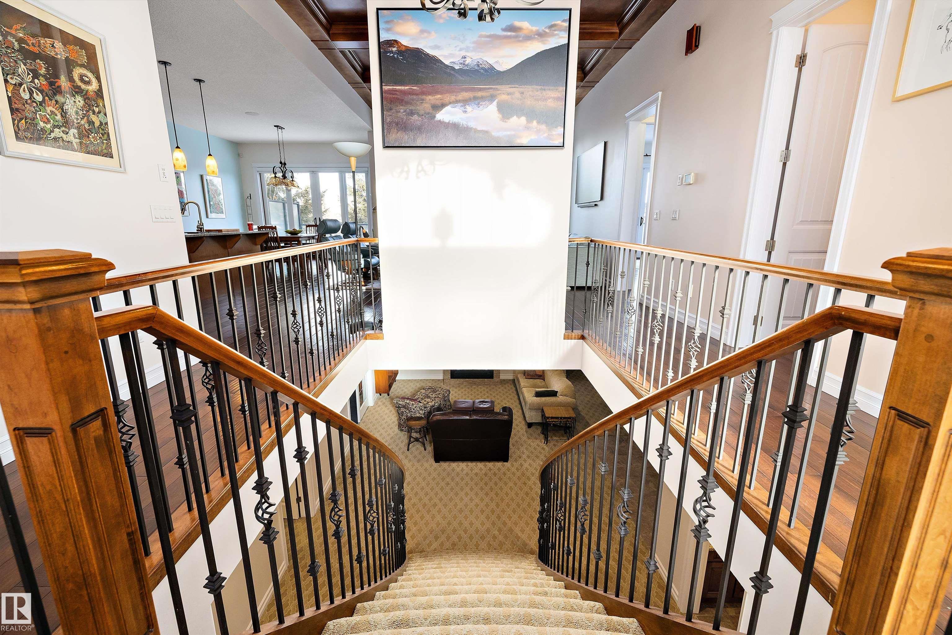 Executive WALKOUT bungalow in Allard backing onto a protected Reserve & Ravine with Triple Side-Load garage & sweeping aspen-lined driveway & grounds that beautifully frame the breathtaking interior design and finishes! This rare showpiece showcases 10-ft ceilings, 8-ft doors, expansive windows & doors that bathe the home in natural light. An open-concept main floor is tailored for upscale entertaining with a dramatic coffered-ceiling great room, lush treed-view dining area, chef-inspired kitchen w/ premium appliances, ovszd island, bar & walk-through pantry. A lavish primary retreat w/ balcony access overlooks ravine & features a spa-worthy ensuite with solar tube, jetted tub, custom shower & large WIC. A flexible 2nd bed/den & mudroom complete the main.The lower level stuns with a curved staircase, in-floor heating, wet bar, gym, gas fireplace,family room & 2 bedrooms. Step outside to a sprawling covered patio, perfect for entertaining. Prime location near walking trails, schools, shopping, QE2 & Henday