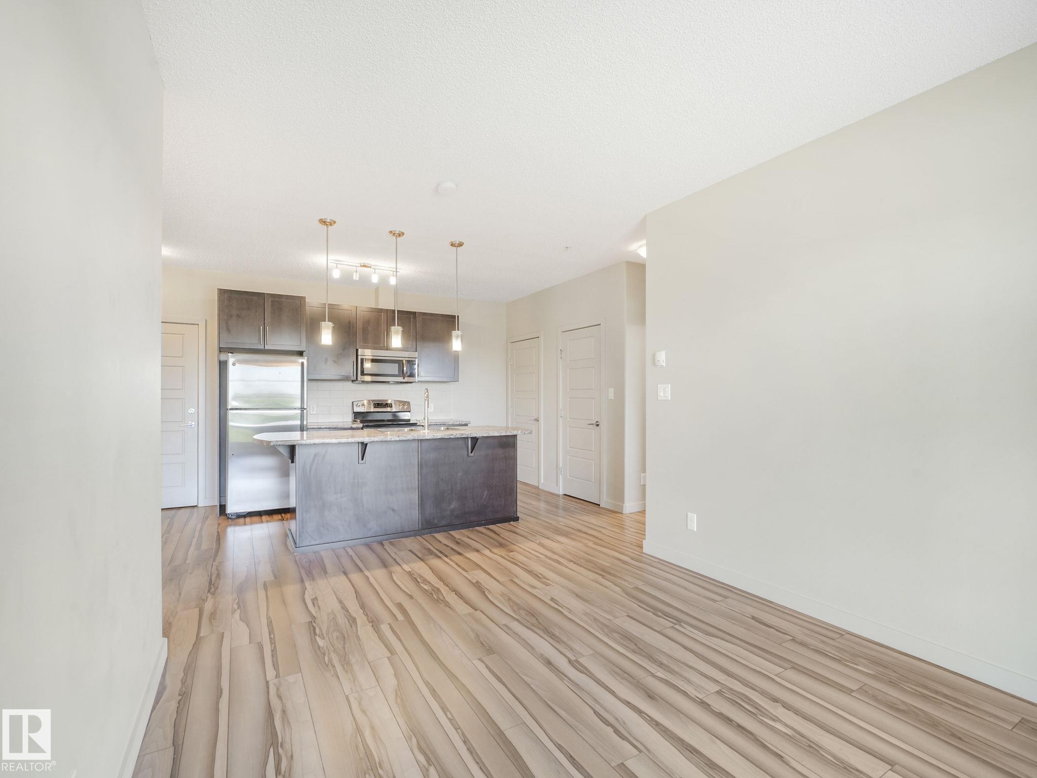 Your Home2Love in Allard is ready for you! This bright and spacious 2 bedroom, 2 bathroom condo offers the perfect combination of comfort and convenience. The open-concept design is highlighted by 9 ft ceilings, large windows, and modern finishes throughout. You'll love the convenience of in-suite laundry, 2 parking stalls (1 underground & 1 right next to the front entrance), and low condo fees in this pet-friendly building. The well-appointed kitchen flows seamlessly into the living and dining areas, creating the perfect space for entertaining. The primary suite features a walk-through double closet and private ensuite, while the second bedroom and full bath are ideal for guests, roommates, or a home office. Building amenities include a fitness room and a social lounge with billiards table, giving you extra space to relax or connect with friends. Situated in a highly desirable location, you're just minutes from schools, shopping centres, Blackmud Creek Ravine, and quick access to the Anthony Henday.