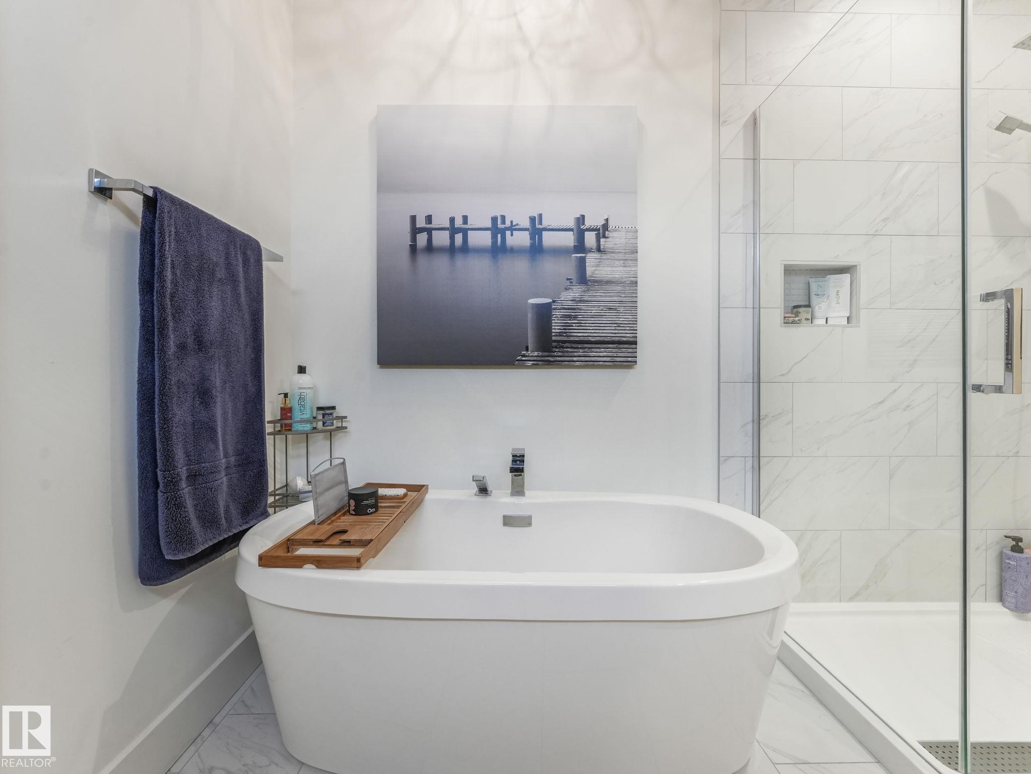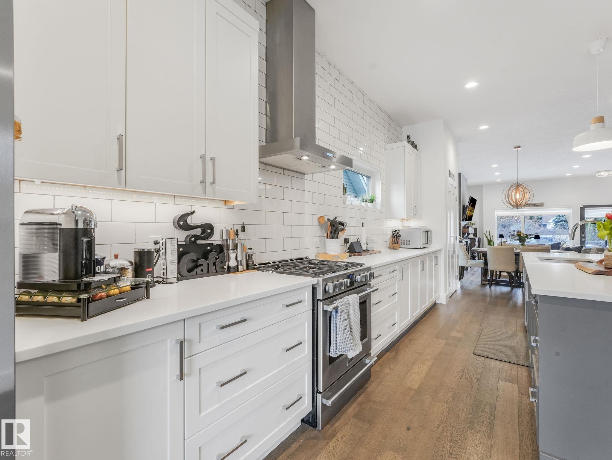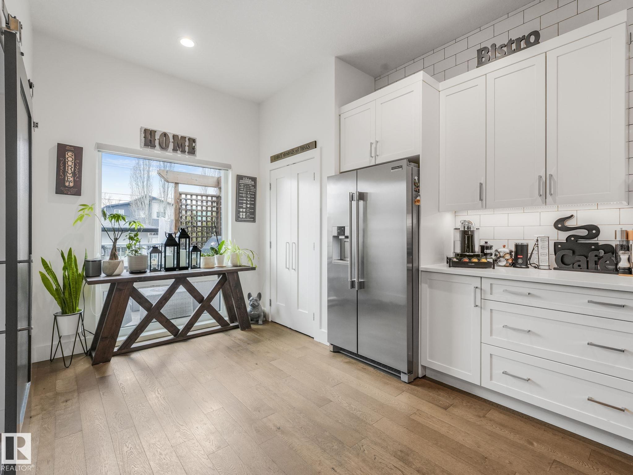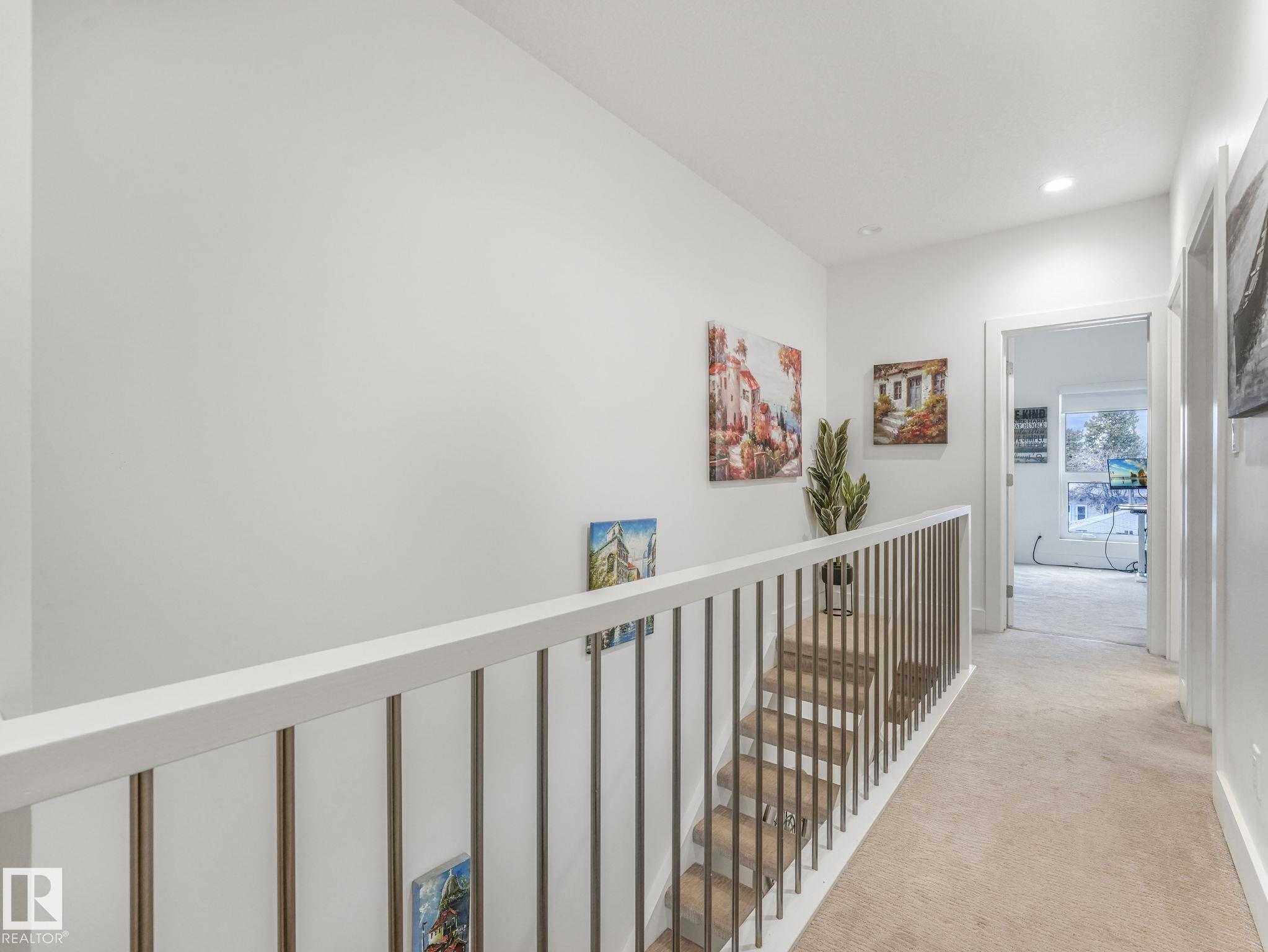 Modern living meets prime location in this architecturally striking Allendale home offering 2,822 sq ft just minutes from downtown, the theatre district, and the University of Alberta. Ten foot main floor ceilings and nine foot ceilings throughout the rest of the home create bright, open spaces. The main floor features a spacious living and dining area and a chef inspired kitchen with stainless steel appliances, gas range, and ample counters. Upstairs are three generous bedrooms, including a primary suite with walk through closets and a spa like ensuite, plus upper floor laundry. The fully finished basement adds a fourth bedroom, full bath, and family room. Outside, enjoy a 2023 low maintenance yard with two tier stone patios and artificial turf. Central A/C, fresh paint, and proximity to Strathcona High School, boutique shopping, the Italian Centre, Southgate, and bike trails make this home move in ready.