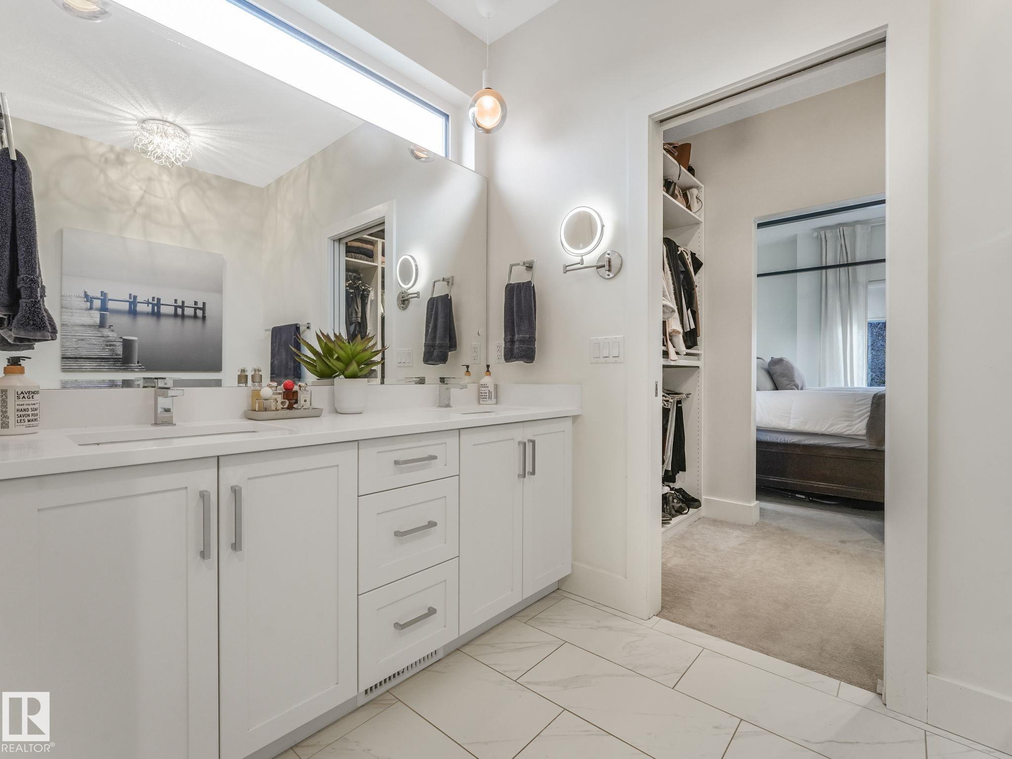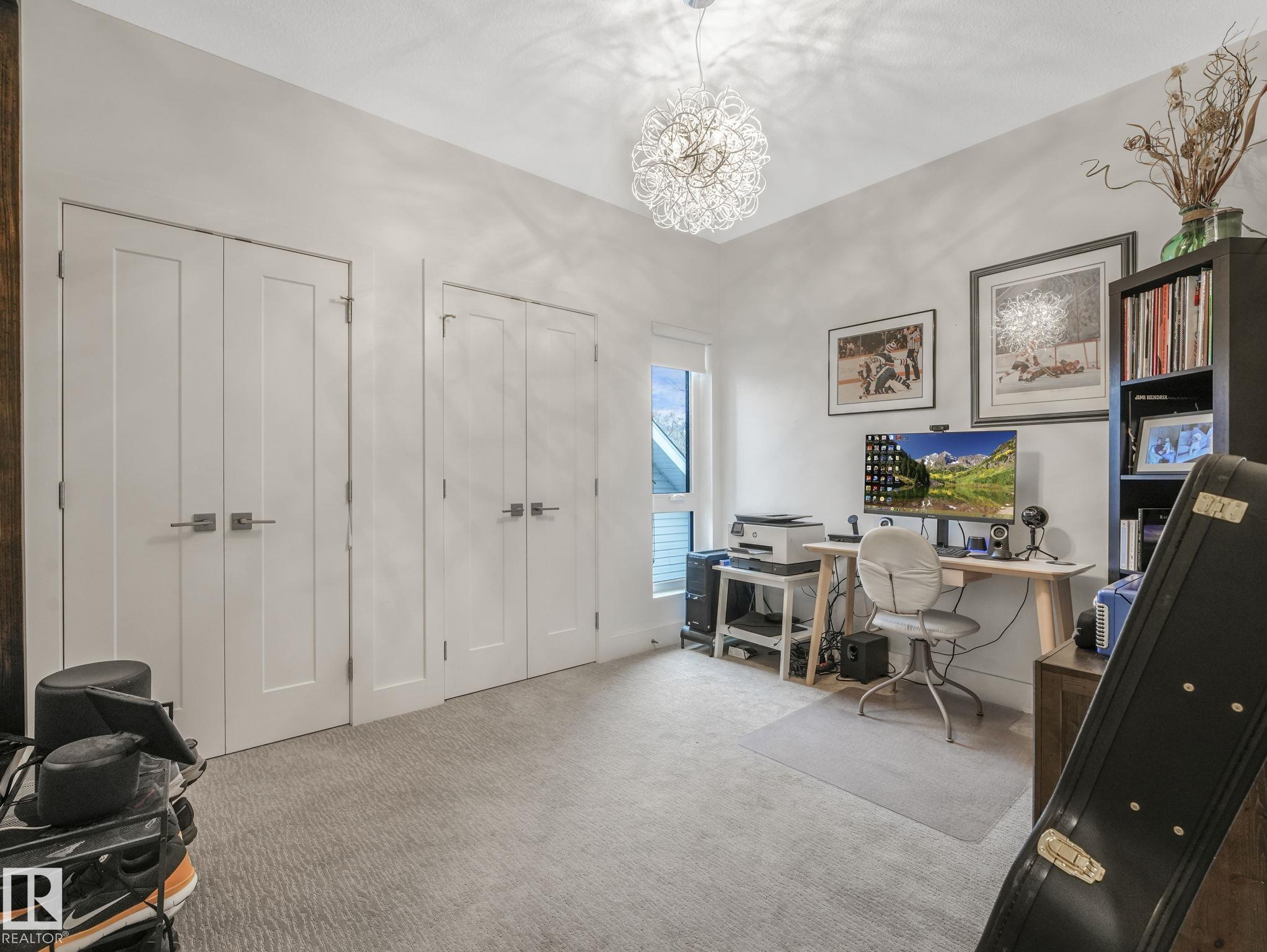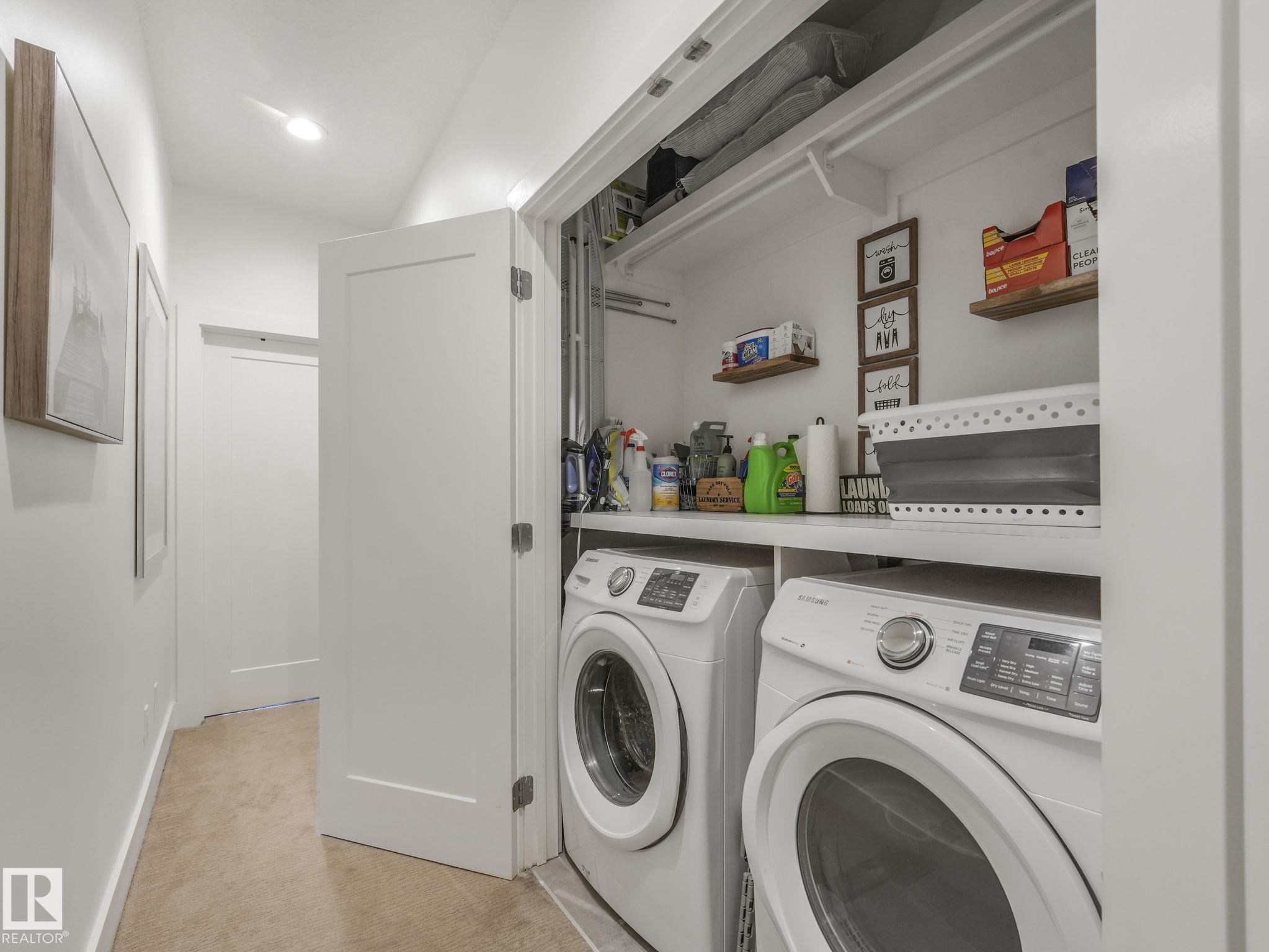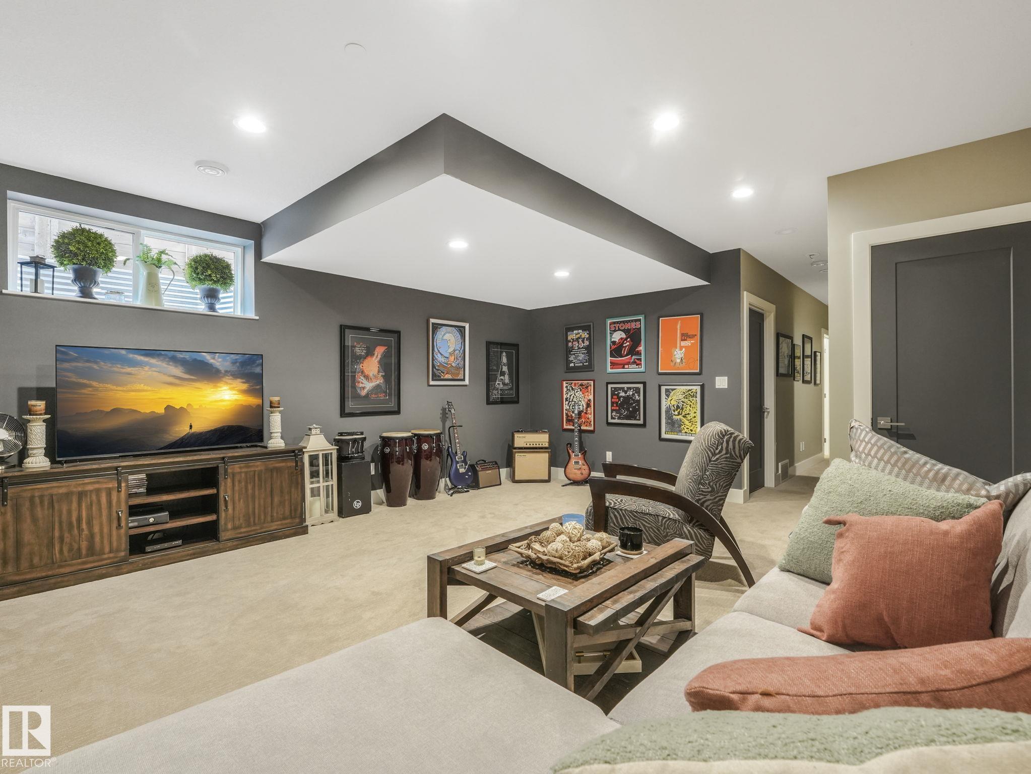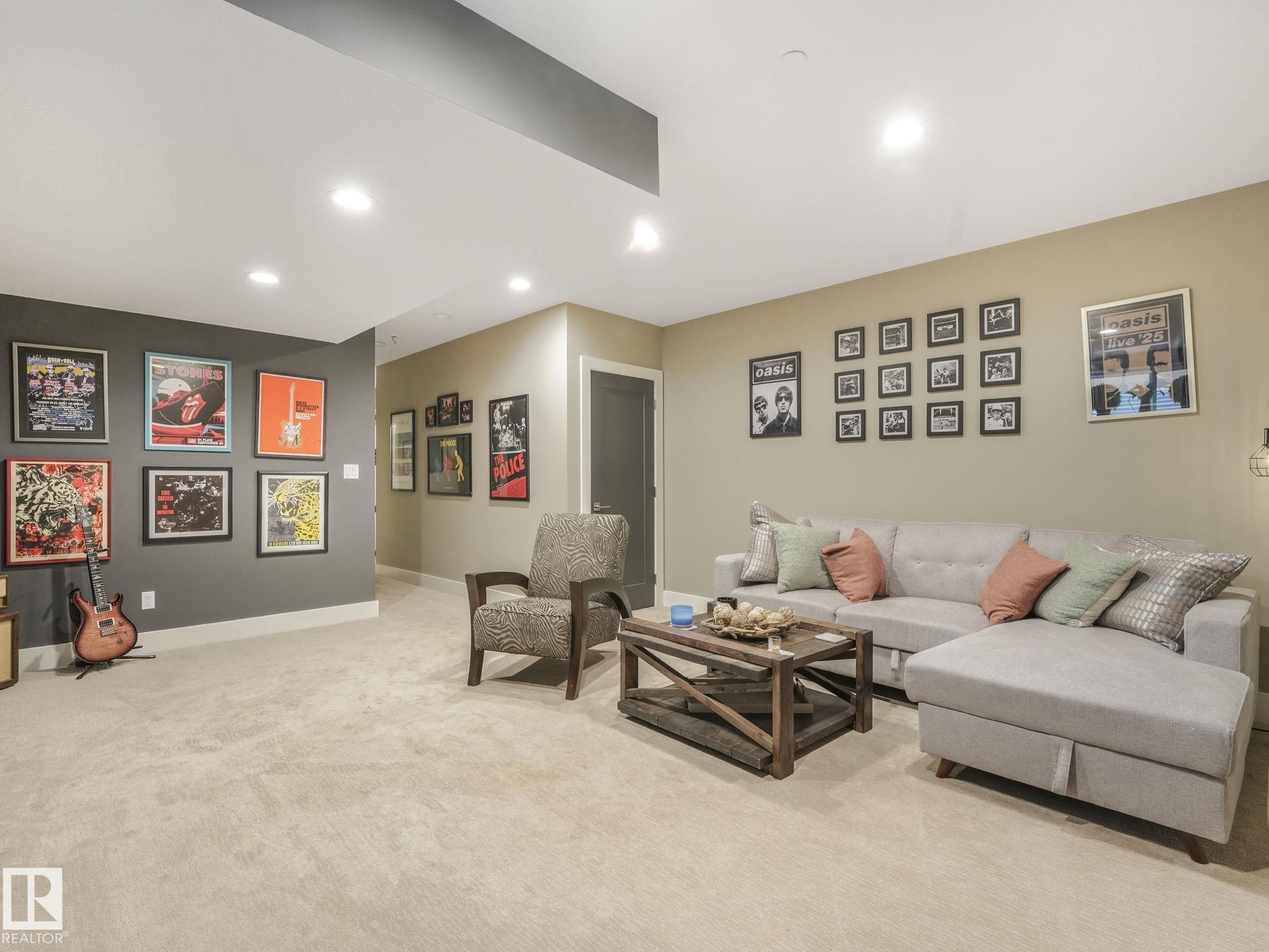 Modern living meets prime location in this architecturally striking Allendale home offering 2,822 sq ft just minutes from downtown, the theatre district, and the University of Alberta. Ten foot main floor ceilings and nine foot ceilings throughout the rest of the home create bright, open spaces. The main floor features a spacious living and dining area and a chef inspired kitchen with stainless steel appliances, gas range, and ample counters. Upstairs are three generous bedrooms, including a primary suite with walk through closets and a spa like ensuite, plus upper floor laundry. The fully finished basement adds a fourth bedroom, full bath, and family room. Outside, enjoy a 2023 low maintenance yard with two tier stone patios and artificial turf. Central A/C, fresh paint, and proximity to Strathcona High School, boutique shopping, the Italian Centre, Southgate, and bike trails make this home move in ready.