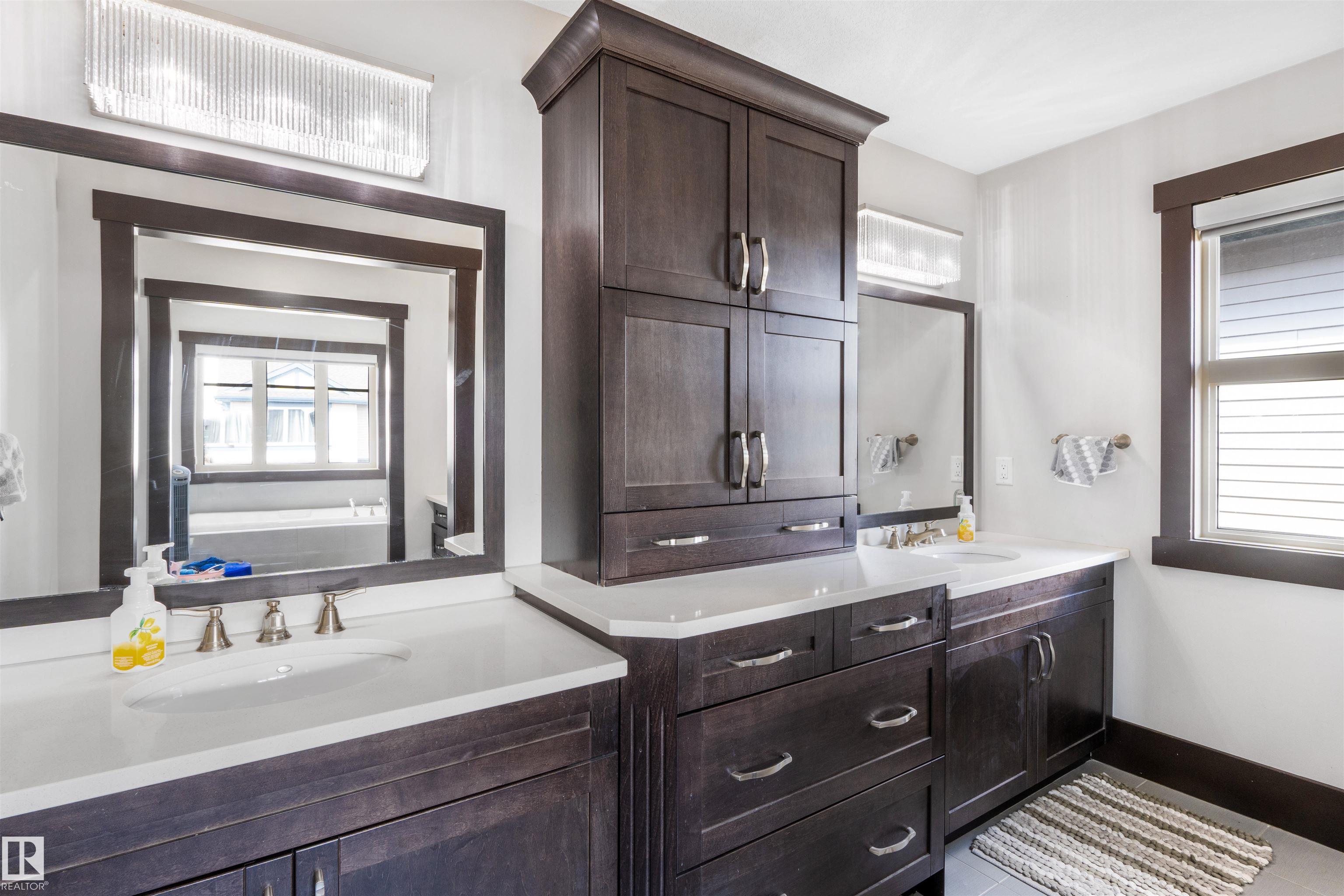 Welcome to the desirable community of Ambleside! This meticulously maintained 2 storey home boasts nearly 2850 sqft of living space with bright and open floor plan, 9 ft. main floor ceiling, hardwood floor on main, Kitchen with quartz countertop , glass backsplash tiles, walkthrough pantry, spacious Nook, Two living Areas, Fire place. Upstairs brings a massive bonus room,1 office room, 3 large bedrooms incl the primary bed w/ stunning 5 pc ensuite (custom glass shower & tub) & walk-in closet. 3 pce bath & linen storage. Outside is a treat! patio, fully fenced & landscaped; perfect summer bbq hangout! close to shopping centre and Anthony Henday Drive.