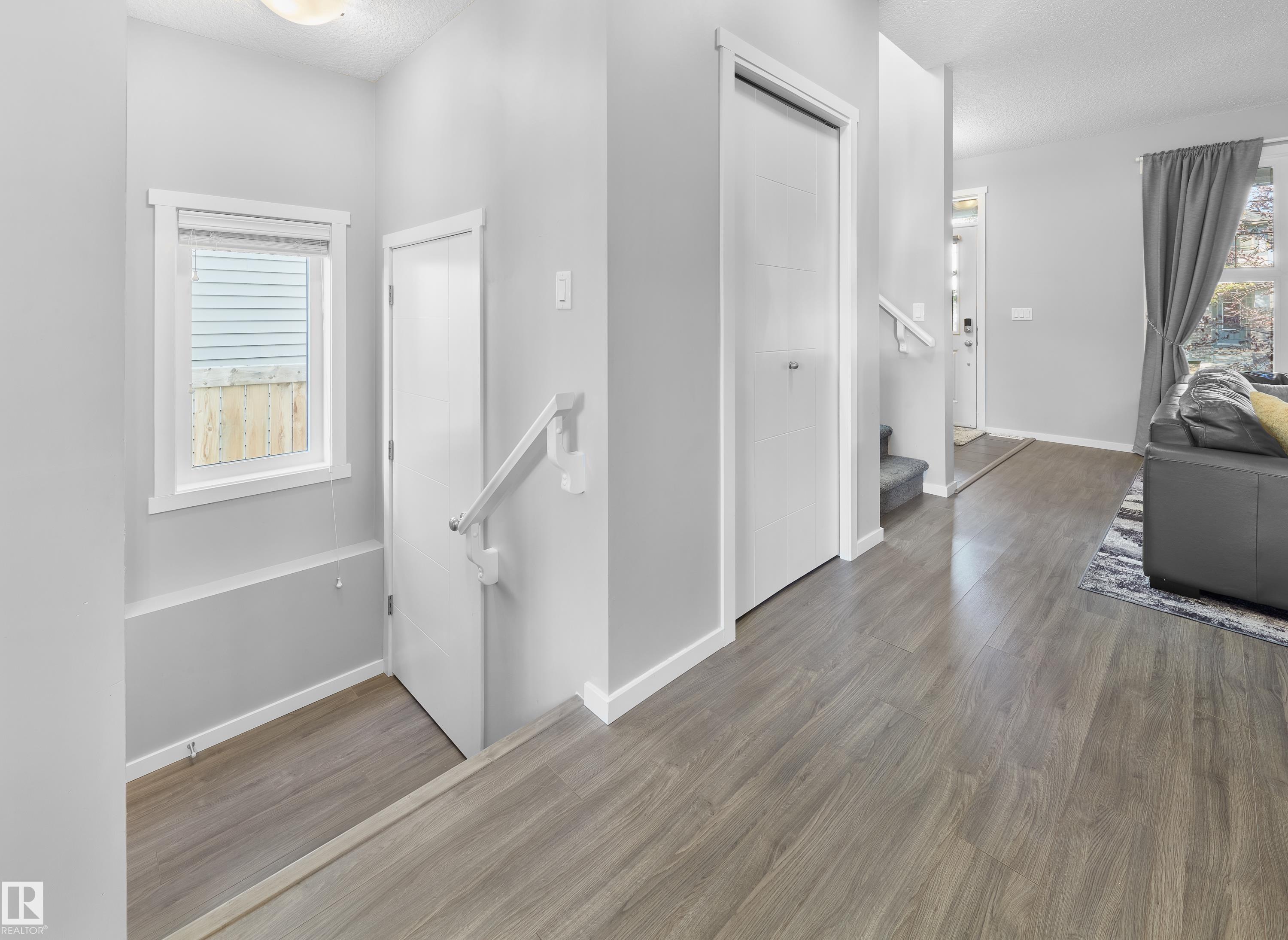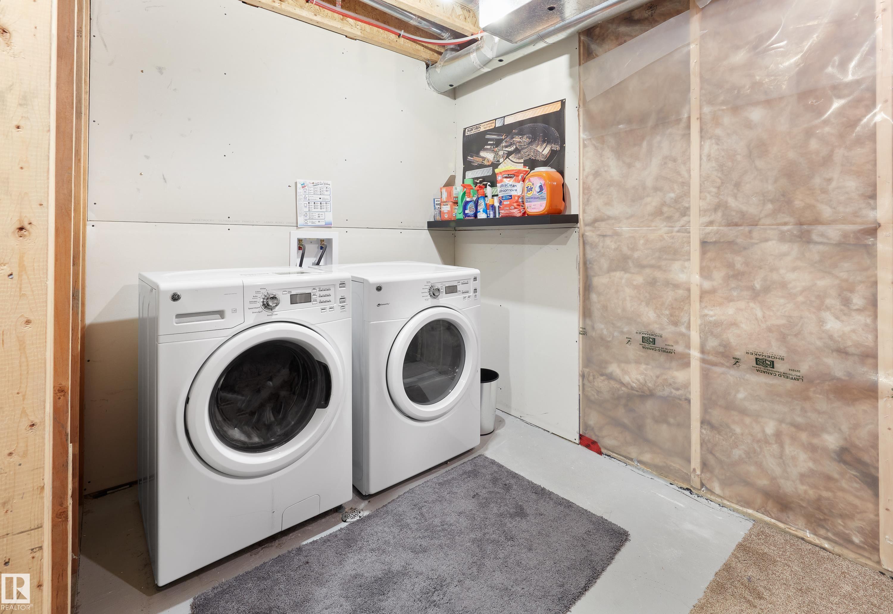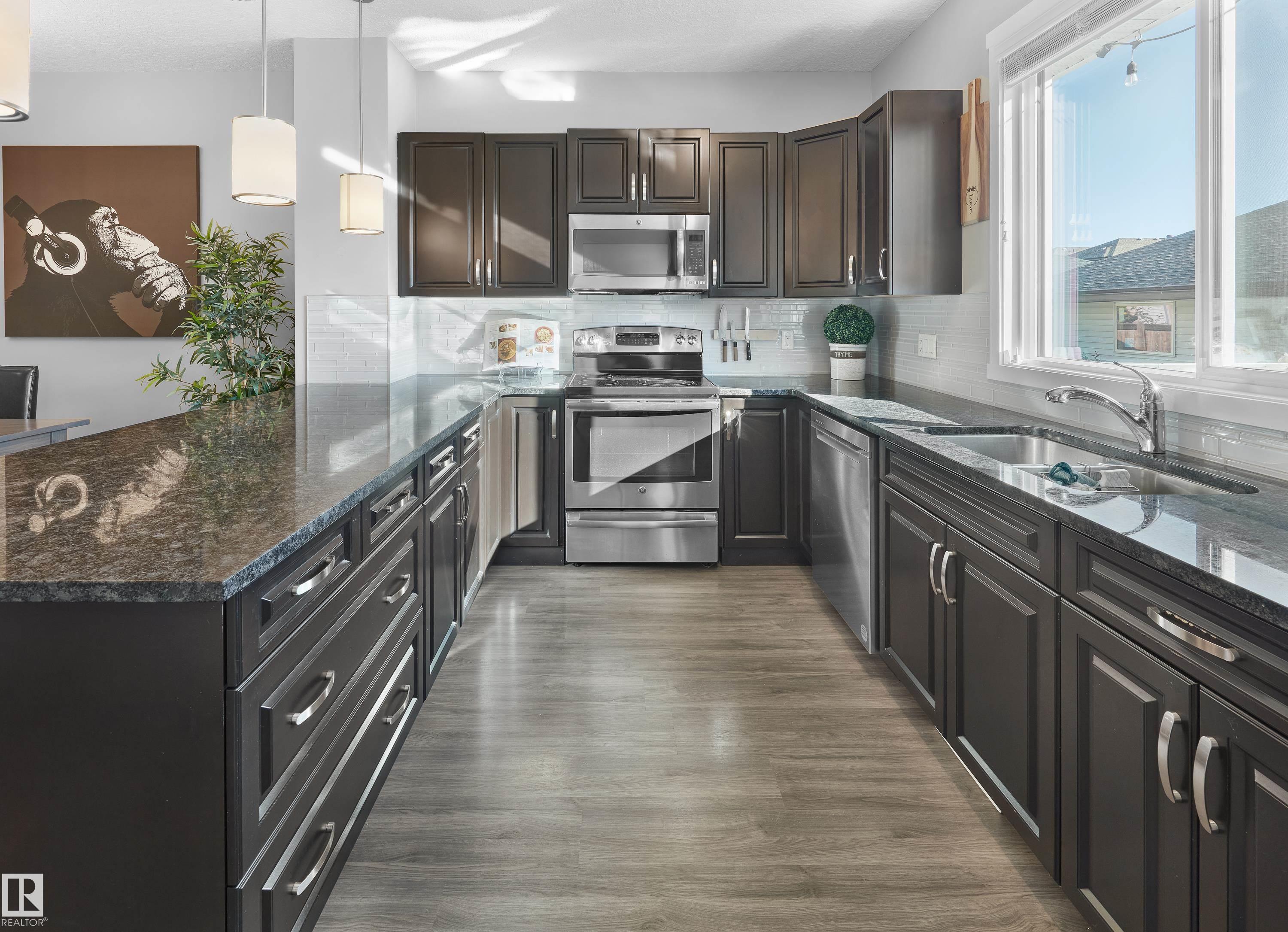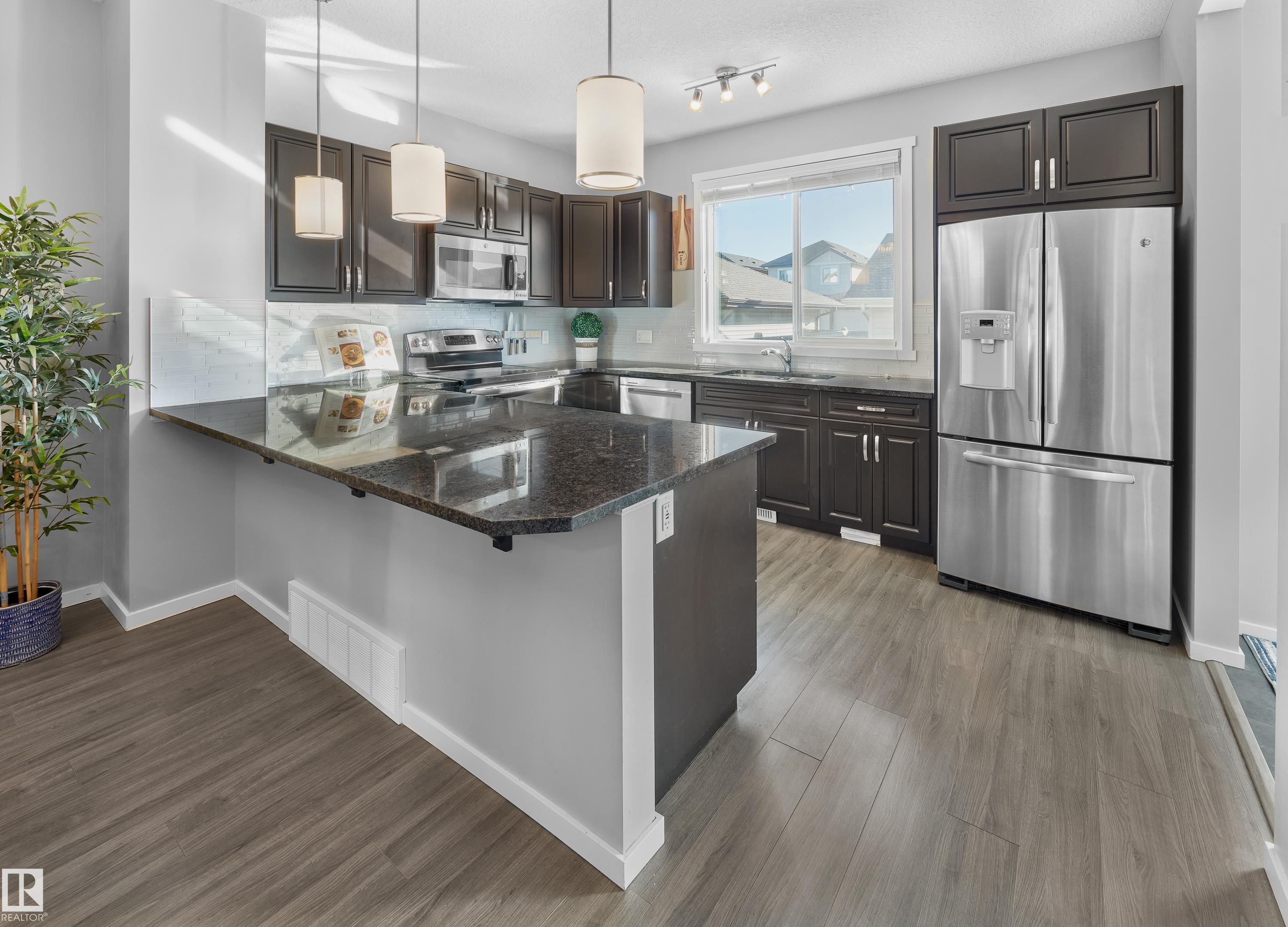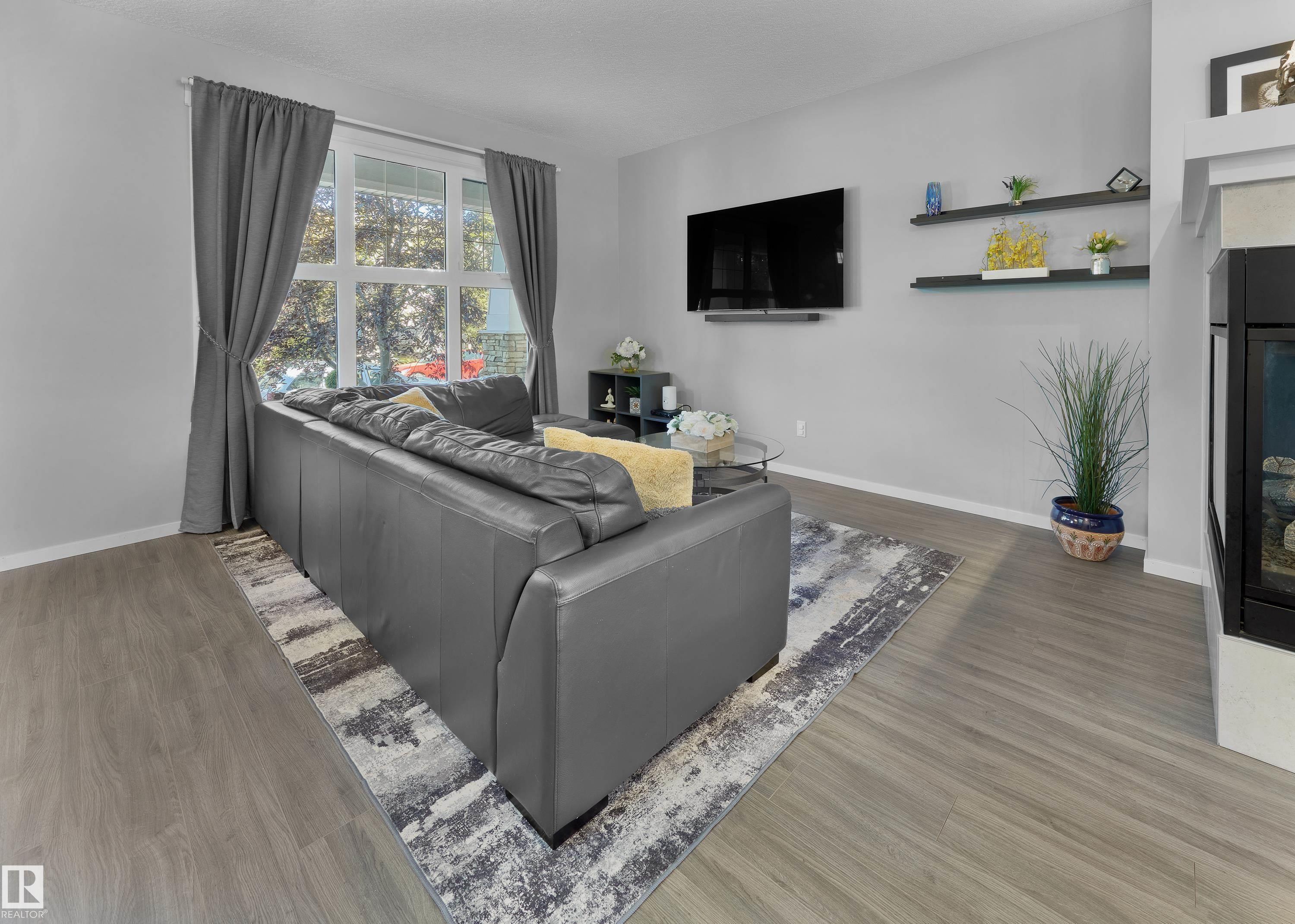 Move-in-ready in Ambleside! This bright 2-storey impresses with 9 ft. ceilings on the main floor, a beautiful two-sided fireplace, granite counters, stainless steel appliances & a spacious mud room. Stay cool in the summer with central air conditioning. Upstairs offers 3 bedrooms, along with 2 full bathrooms for added comfort & convenience. The unfinished basement provides endless possibilities--home gym, rec room, or guest suite. Outside, enjoy a fully fenced, professionally landscaped yard with a composite deck, perfect for entertaining. A drywalled & painted double garage adds extra function & polish. Built in 2014 on a 325.35 sq. m. lot, this home combines comfort & convenience in one of Edmonton's most walkable communities, steps from schools, parks, shopping, Anthony Henday & the River Valley.