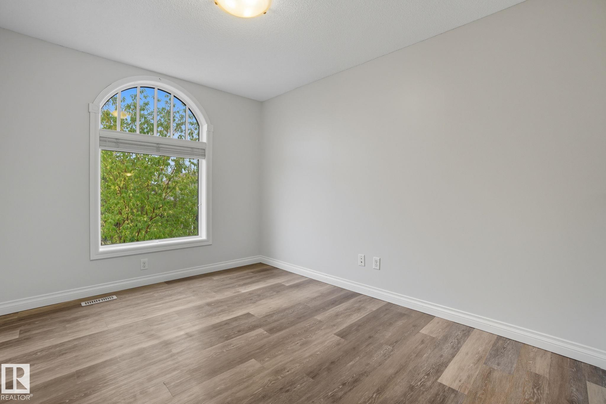 Welcome to this charming half duplex in Ambleside, perfectly located just steps from Dr. Margaret-Ann Armour School--ideal for young families! This 2-storey home features 3 bedrooms, 2.5 baths, and an attached single garage. Freshly painted with brand-new flooring, it's move-in ready and has no condo fees. The spacious backyard backs onto scenic walking trails, creating a private space for kids to play or family BBQs. Inside, enjoy cozy evenings by the fireplace in the bright, open living room. The unfinished basement offers endless possibilities to design the perfect playroom, gym, or family retreat. Situated in the heart of Windermere, you're within walking distance to top amenities including shopping, groceries, banks, medical services, restaurants, and even the movie theatre. This low-maintenance home combines comfort, convenience, and community living--all that's missing is you!