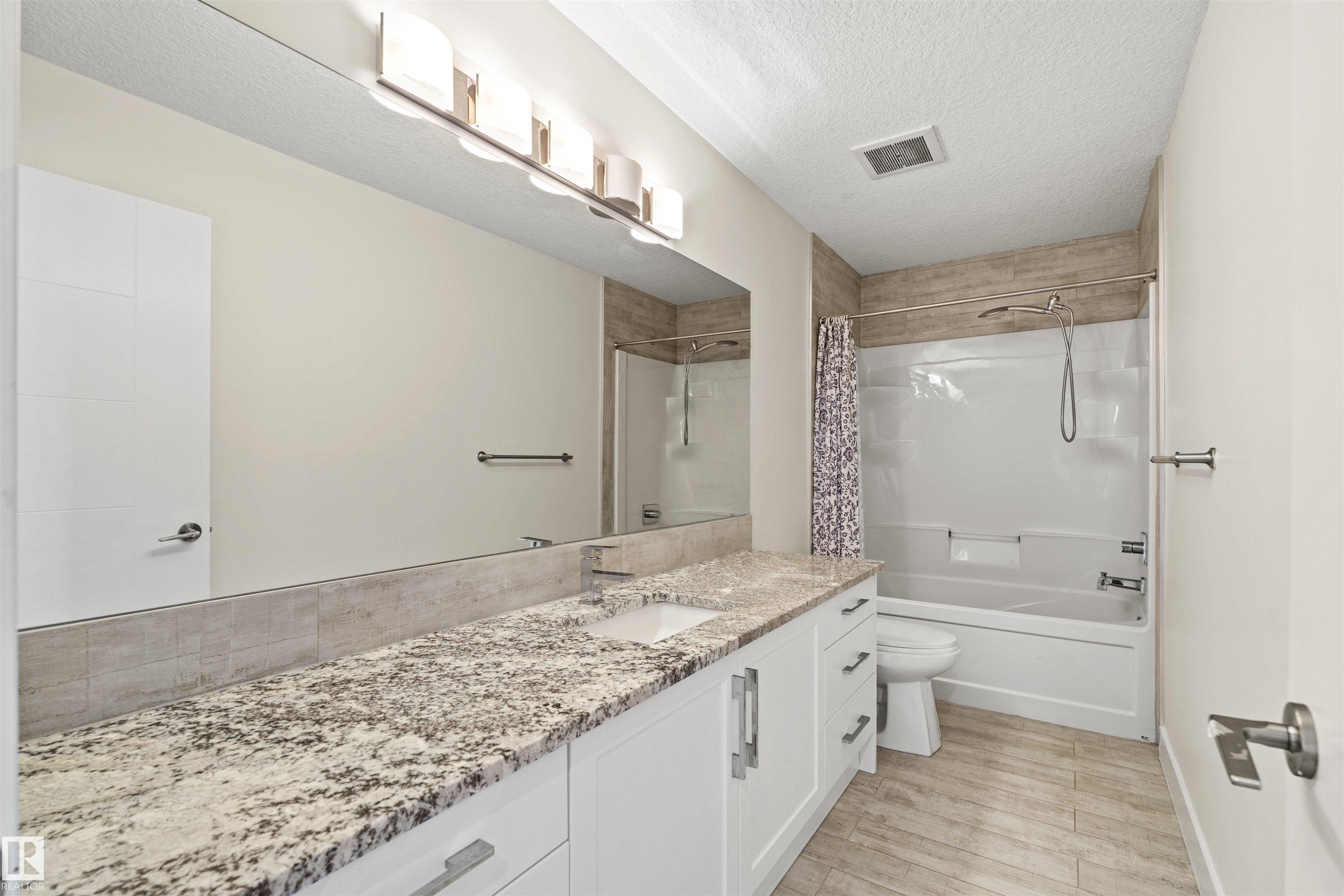 Welcome to this 2-storey, 2,657 sq ft modern home with over 3,700 sq ft of total space including an unfinished basement in Ambleside. This award-winning open-concept plan features 9-foot ceilings, 8-foot doors, and three spacious upstairs bedrooms, including a primary suite with a generous walk-in closet and spa-inspired ensuite with Jacuzzi tub.The main floor offers a private office/den, and laundry room with sink, connecting to a chef's kitchen with built-in double oven and microwave, high-end SS appliances, granite countertops throughout, custom white cabinetry, and a large granite island.This south-facing home is filled with natural light inside and out, while the spacious unfinished basement with large windows offers excellent future development potential. Located just steps from parks and walking trails and an 8-minute walk to the neighbourhood school through the community park. Conveniently located just 2-5 minutes from the future high school, recreation centre,and Anthony Henday Drive.
