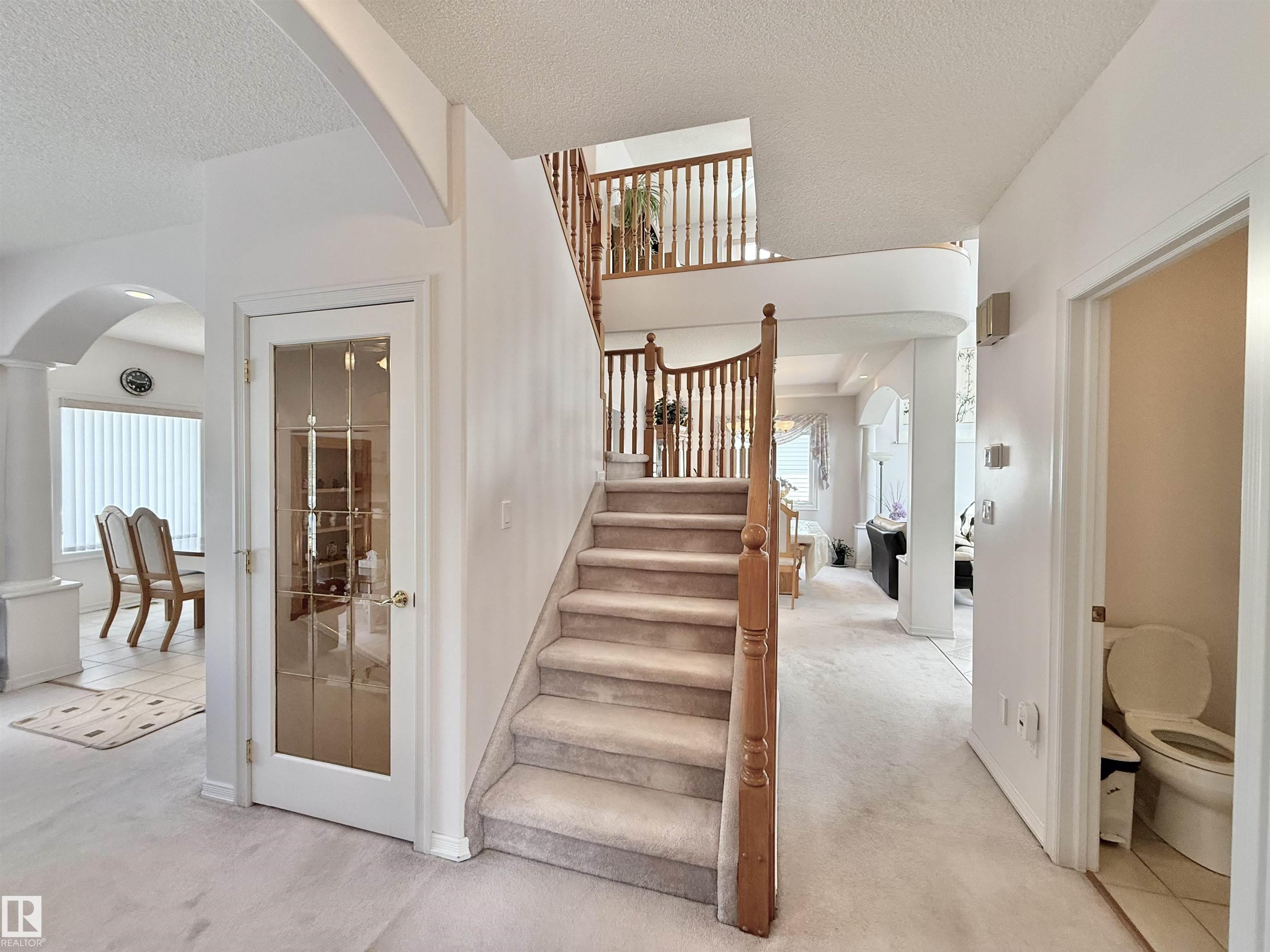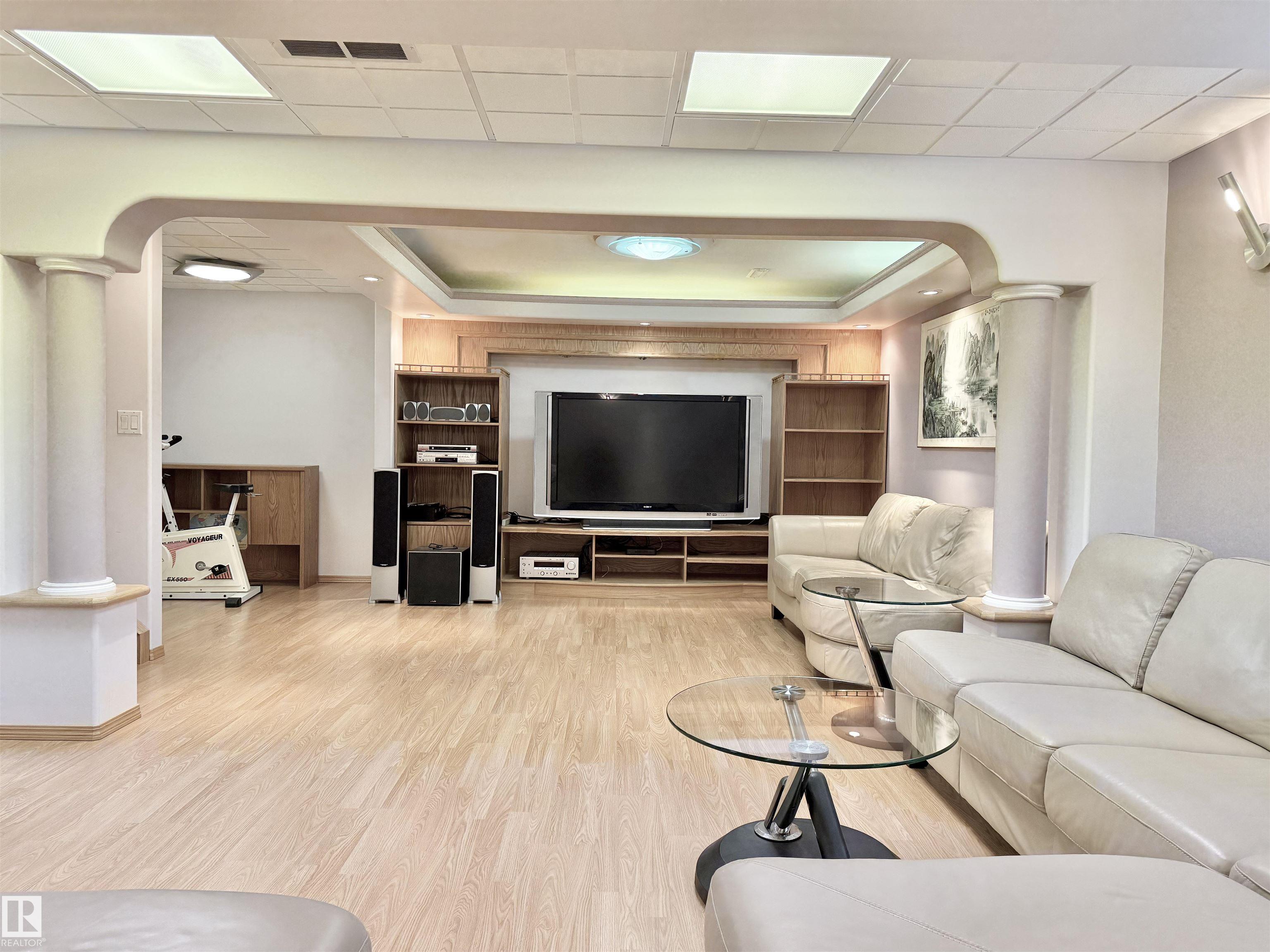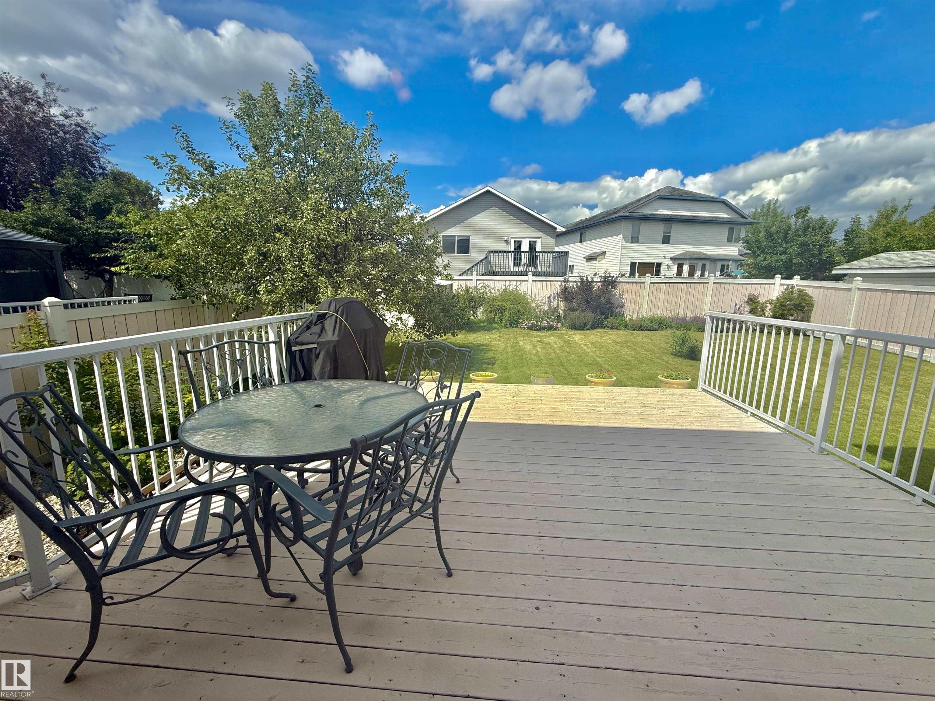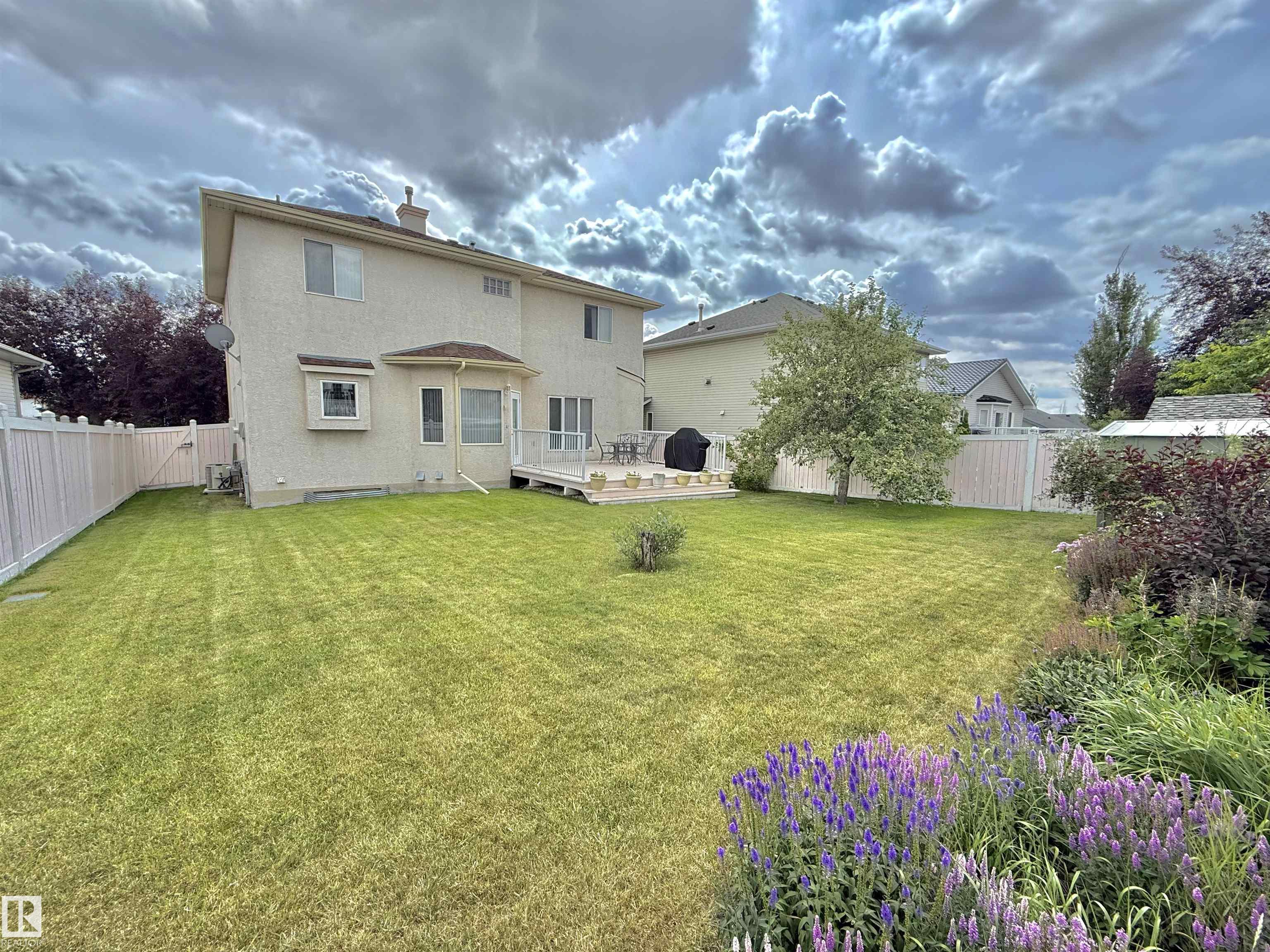 Discover this beautifully maintained 1999 custom-built 2-storey home in the desirable community of Belle Rive, offering over 3,600 sq.ft. of living space including a fully finished basement and an attached double garage. Situated on an oversized, landscaped lot with underground sprinklers and a spacious backyard deck, it's perfect for outdoor living. Inside, you're welcomed by soaring 17' ceilings and abundant natural light. The main floor features 9' ceilings, an open-concept kitchen, two dining areas, two living rooms, a bedroom, and a half bath. Upstairs offers three large bedrooms, including a primary suite with ensuite, a second full bath, and a bonus room overlooking the main floor. The basement adds a huge rec room, fifth bedroom, full bath, laundry, and ample storage. Conveniently located near parks, schools, shopping, and amenities, this is the ideal home for a growing or multi-generational family.