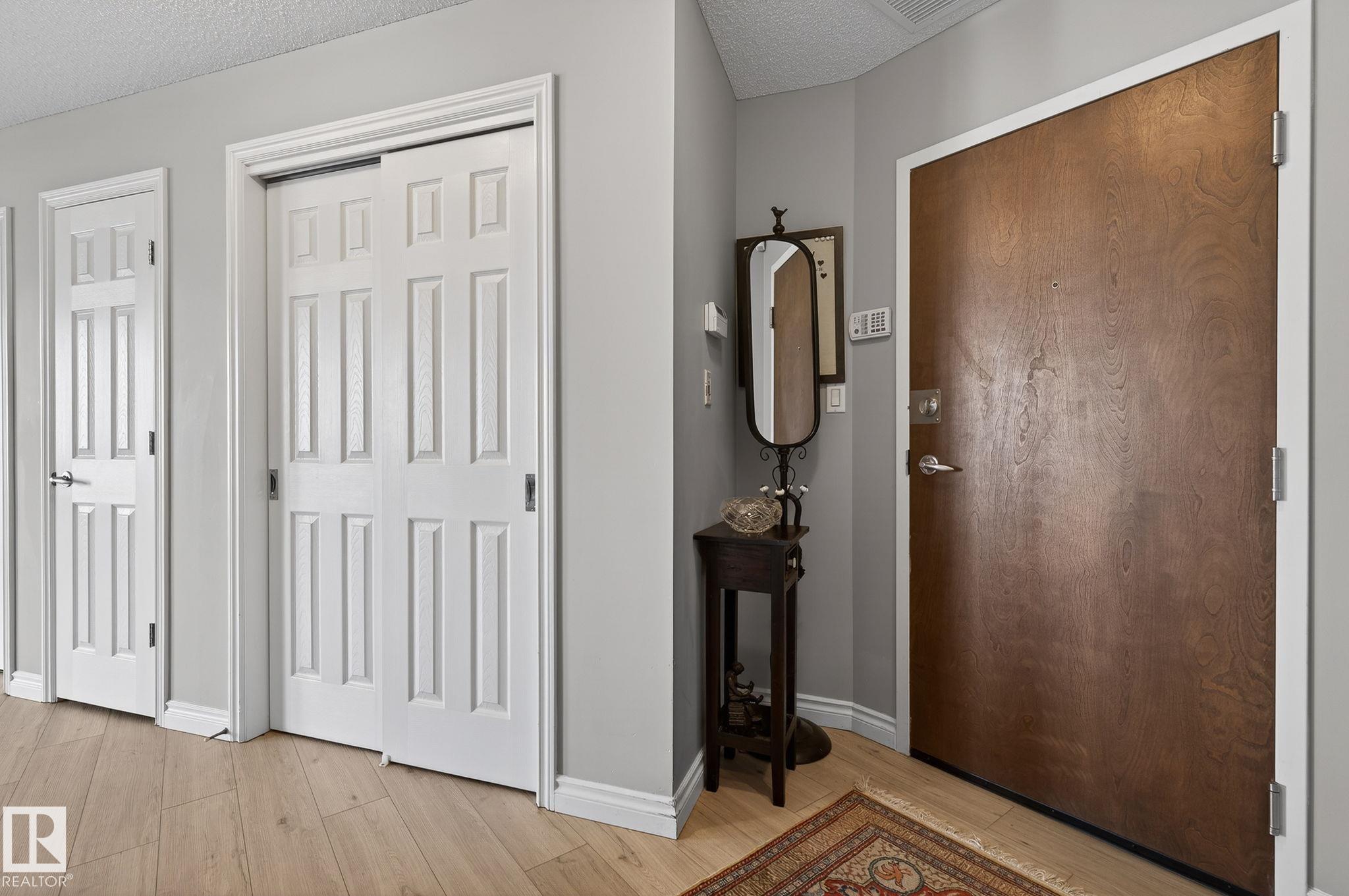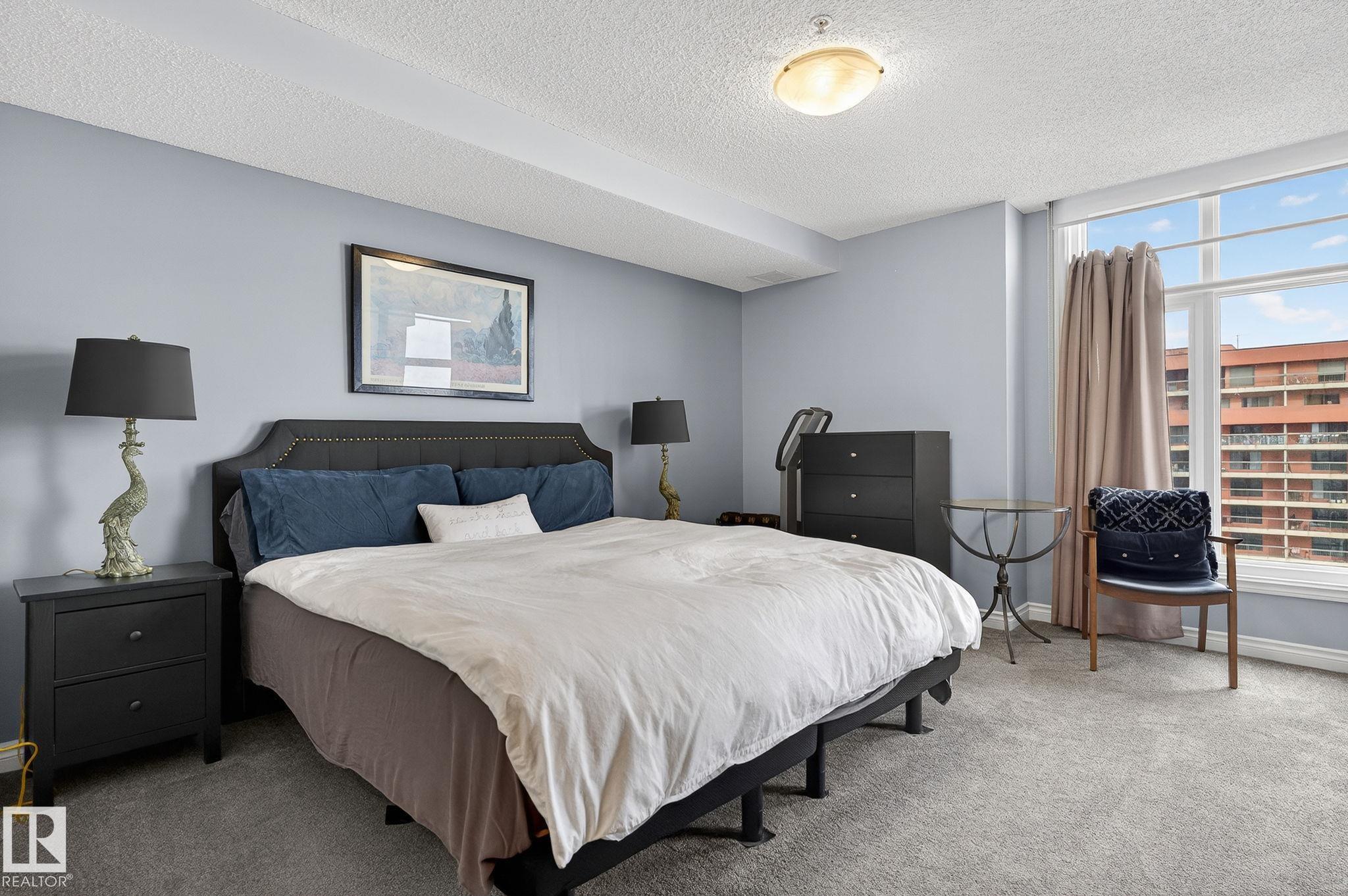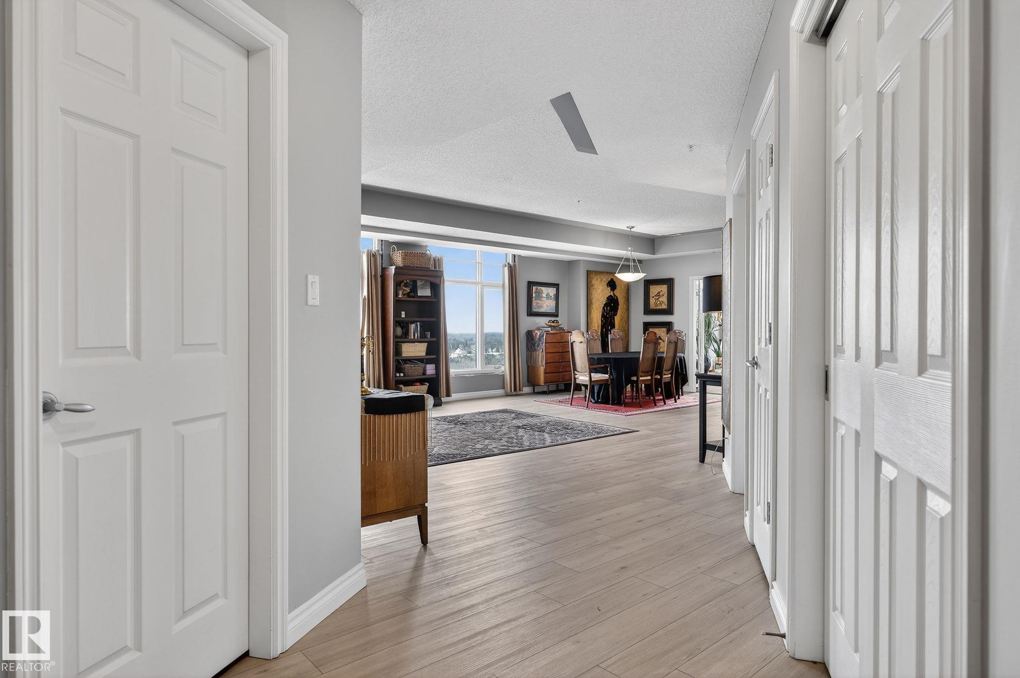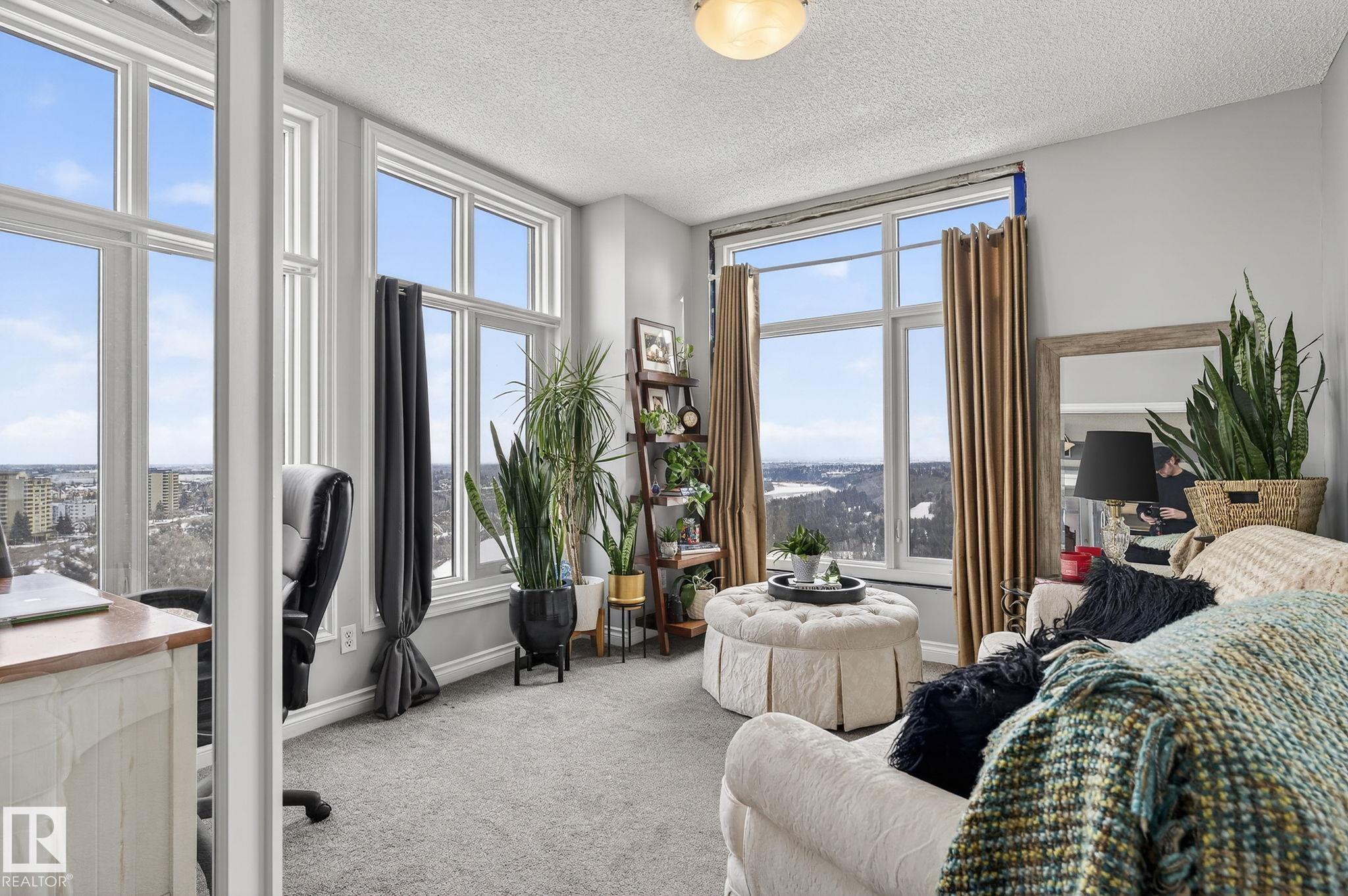 Feels like Home to me! Enjoy the Spectacular, Unobstructed river valley View of the Four seasons Everyday in this Splendid Executive 1530' 17th floor unit. One of the best layout corner unit in this timeless artistic looking gated building. Stunning entrance with gorgeous waterfall & well equipped exercise room. Across from the lush river valley trails and minutes to downtown, the Art District & all your favourite restaurants & shopping venues. Nice open plan with great ambience & captivating view everywhere! The place is sun-drenched with light pouring through the numerous floor to ceiling windows. Spacious living room has cozy gas fireplace & door to the private covered balcony. Beautiful kitchen has ample cabinets, large island & pantry. Bright & cheery dining area that opens to the fantastic office/third bedroom via a double french door. King sized master bedroom has a luxurious ensuite & a large walk-in closet. Second bedroom is across from main bath. Good size laundry/storage room. A real rarefind!