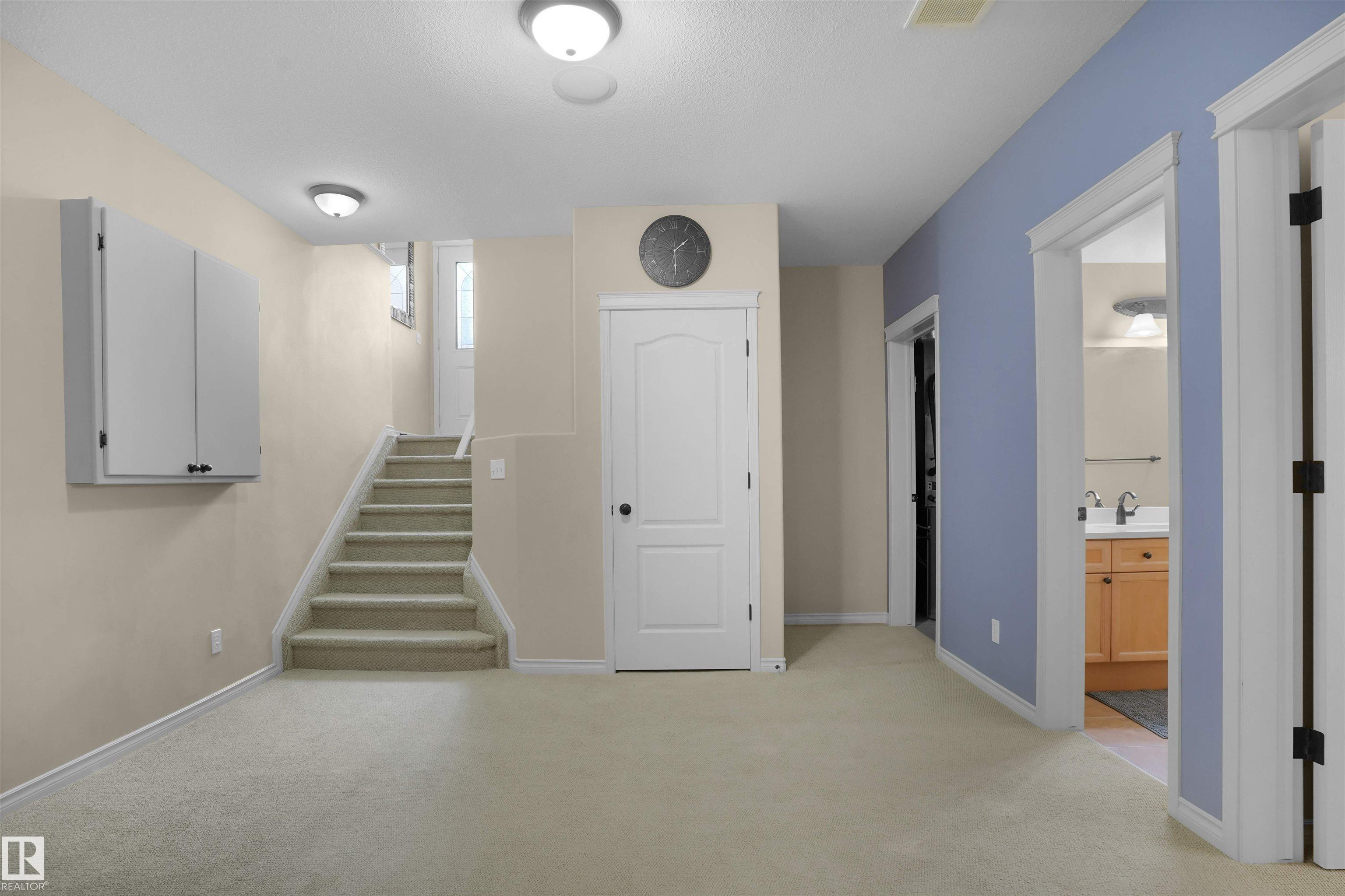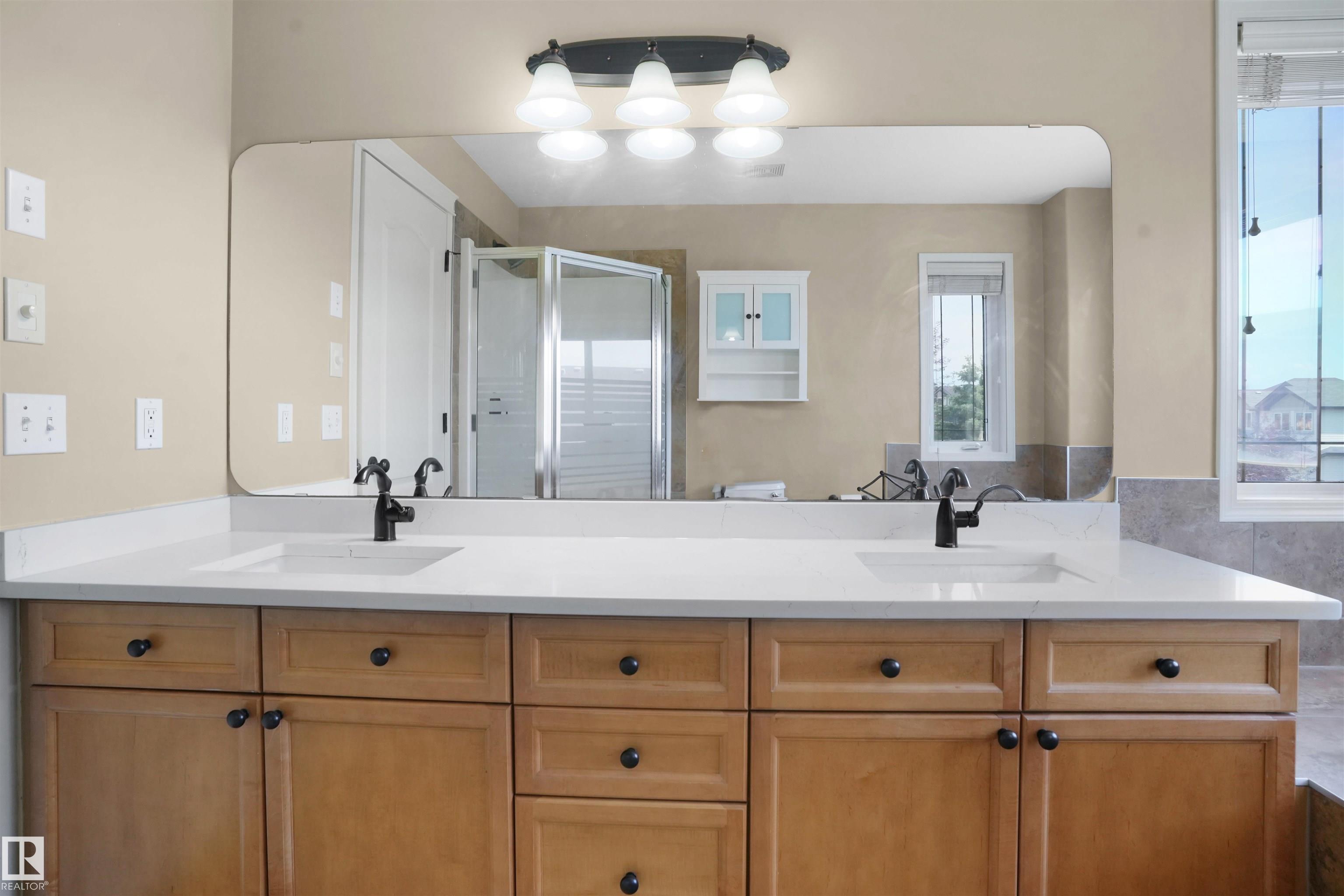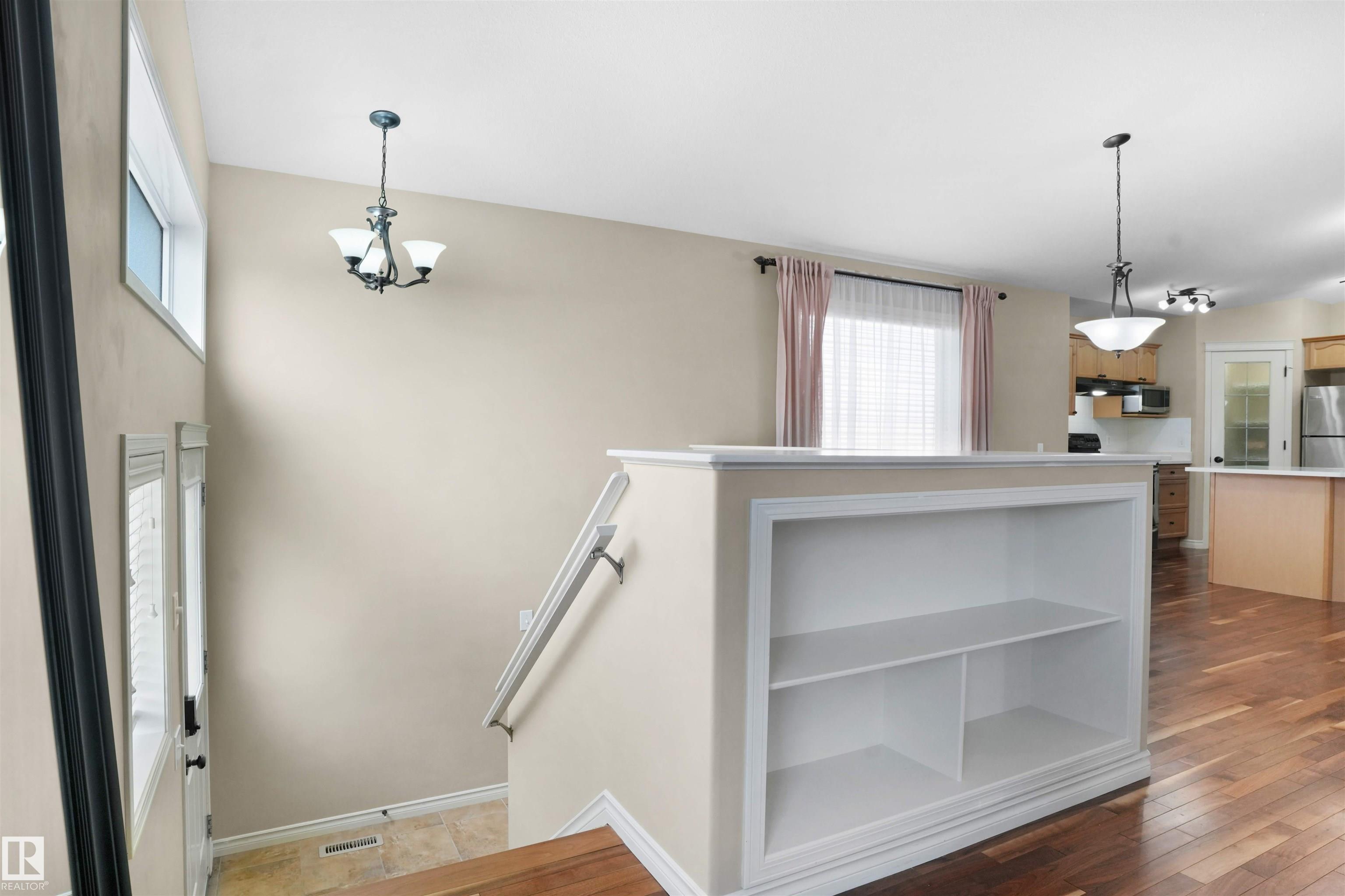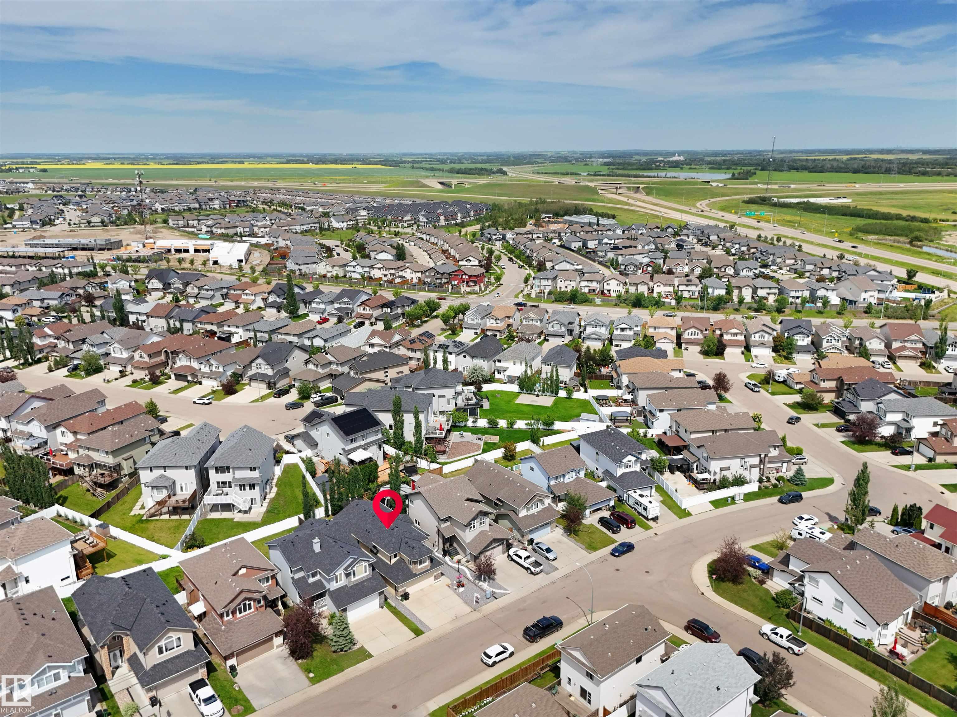 Stunning Former Showhome | Move-in Ready! Welcome to the Daytona Sentra IV, a stunning home with vaulted ceilings, walnut hardwood, and a chef-inspired kitchen featuring ginger maple cabinets, upgraded Quartz countertops, and a corner pantry. Enjoy flexible dining with a breakfast nook and formal dining room. The main floor offers a bedroom and full bath. Upstairs, unwind in your private primary retreat with a large walk-in closet and beautiful ensuite with Quartz counters, double sinks, and a jetted tub. The fully finished basement includes a family room with fireplace, two bedrooms, and a 3-piece bath. Exterior highlights include Eldorado stone accents, an 18x12 patio with pergola, full landscaping, and a finished 24x24 garage. Additional features: central A/C, built-in speakers, and security system. Ideally located near amenities, this home is the perfect blend of comfort and style!