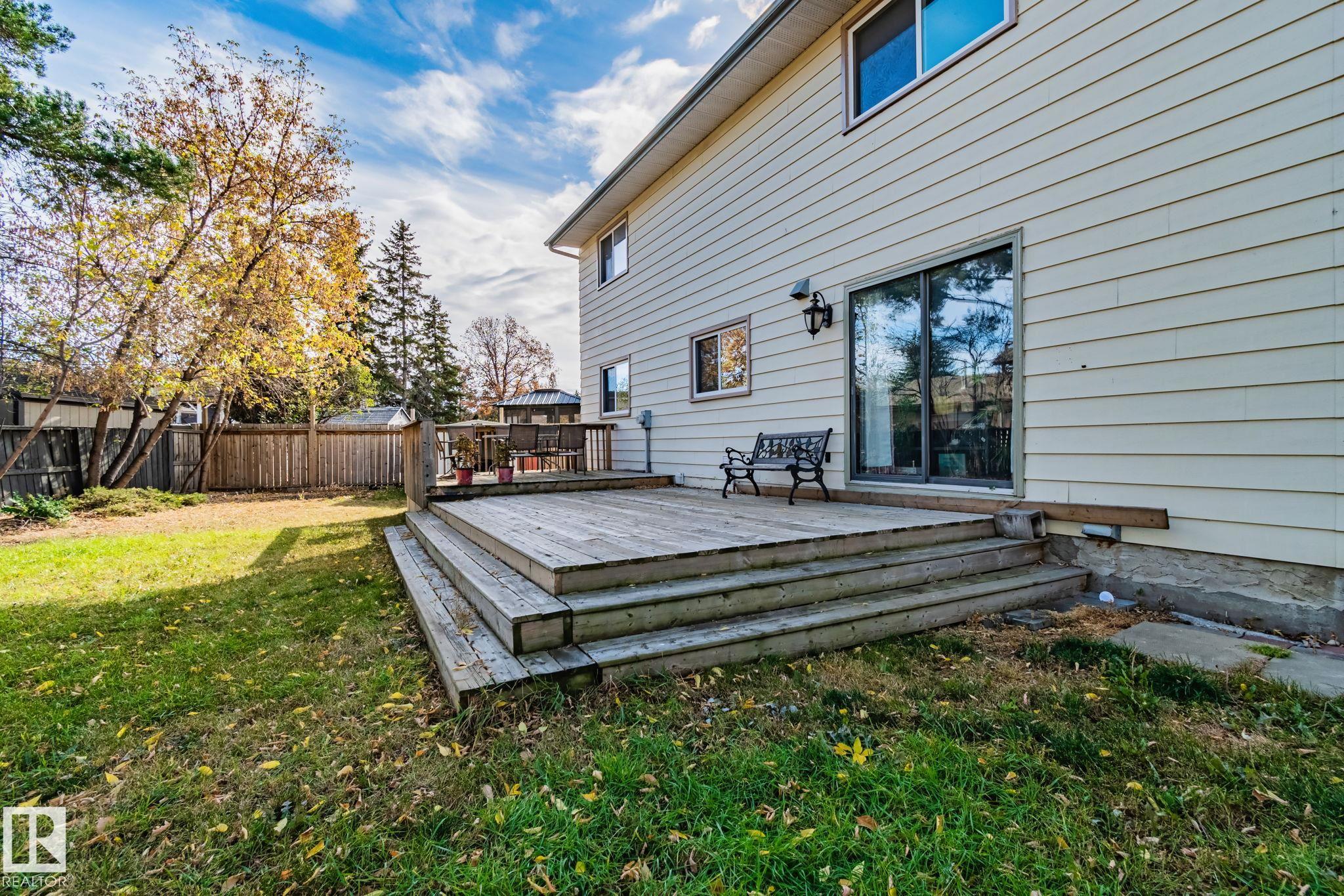 This stunning 2-storey home offers almost 2,400 sq. ft. above grade plus a fully finished basement! The grand foyer welcomes you with a soaring two-storey ceiling and elegant open staircase. The main floor features a formal living and dining area, gleaming hardwood floors, and a spacious kitchen with warm wood cabinetry, gas range, and views of the backyard. The cozy family room with a wood-burning fireplace opens onto the deck--perfect for entertaining. Upstairs, an open loft makes a great den, office, or reading nook, along with four generous bedrooms. The primary suite includes a walk-in closet and a private 5-piece ensuite. The finished basement adds a large rec room, bedroom, and full bath. Updates include two Carrier furnaces, a newer roof, insulation, paint, hot water tank (2020), and washer/dryer (2021). Located on a quiet cul-de-sac on a large pie-shaped, fully fenced lot, this home offers incredible space, comfort, and timeless charm!