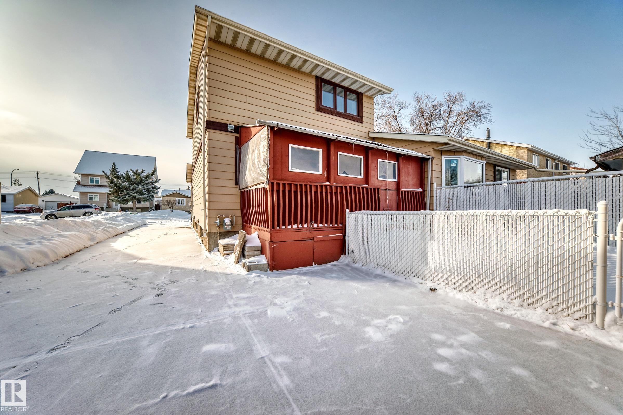 Very clean 3 bedroom, 2 bathroom, 2 storey style, 1979 built 1,205 sq ft half duplex located on a quiet street in the Carlisle neighborhood of Castledowns. The latest upgrades include 2007 windows, 2019 hot water tank, 2002 furnace, 2015 shingles , new bathtub liner, plumbing faucets upgraded, & more. This original owner home has hardwood floors in the large livingroom, woodburning fireplace, private dining area, sliding doors to the deck, 2 piece main floor bathroom, and a kitchen that has 3 appliances. The upper level has a 4 piece main bathroom, 3 large bedrooms with a large walk in closet in the primary bedroom. The basement is unfinished and ready for development. The garage is double detached with opener and 1 controller.