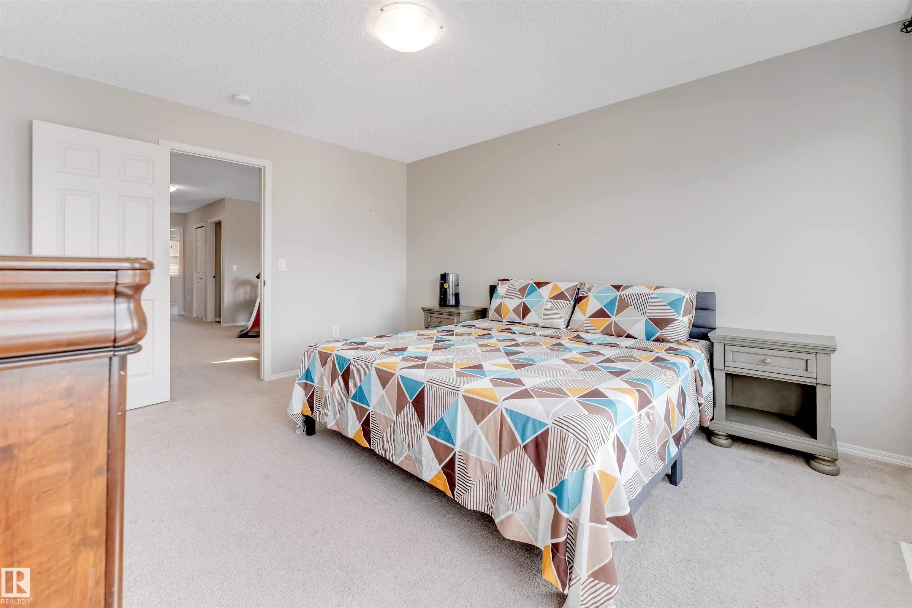 Welcome to this beautiful 2-storey detached home in the desirable community of Cavanagh, SW Edmonton! Built in 2020, this well-maintained property offers a bright and functional layout perfect for families. The main floor features 9 ft ceilings, a spacious living area, modern kitchen, dining space, a main floor bedroom, and a convenient 2-piece bath. Upstairs you'll find a large primary bedroom, two additional bedrooms, a loft/bonus area, and two full bathrooms, providing plenty of room for the whole family. The fully finished basement includes an additional bedroom, recreation room, second kitchen, full bathroom, and storage space, ideal for extended family or guests. Enjoy the double attached garage, west-facing backyard, and outdoor deck/patio perfect for relaxing or entertaining. This home also features a solar panel system for improved energy efficiency, along with HRV and a smart thermostat. Conveniently located close to playgrounds, shopping, and public transportation. Move-in ready!