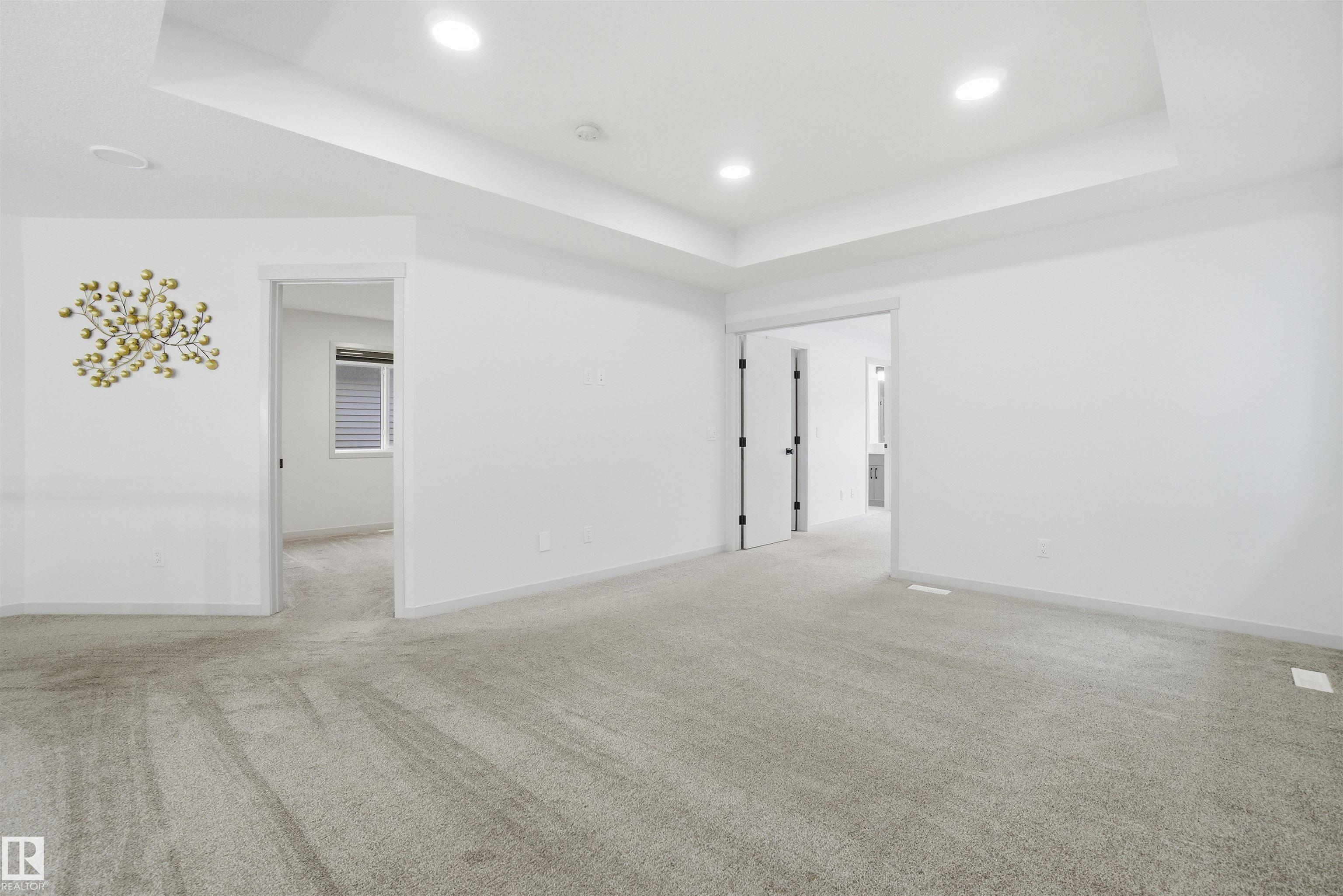 Executive Park-Side Living | 2,700 SQFT of Custom Luxury! Backing directly onto the park & trails, this "better-than-new" Cavanagh gem is a very feature-rich home on the street. Be greeted by a grand foyer with 17ft ceilings, leading to a main floor with 9ft ceilings and a rare main-floor bedroom + full 4pc bathroom. The chef's kitchen features quartz, high-end appliances, and southwest views of the landscaped yard & deck. Car enthusiasts will love the widened, HEATED garage. Upstairs, the luxury continues: BOTH bathrooms are 5-piece ensuites (including the primary retreat with park views and a walk-through closet to laundry). A massive bonus room and 2 large bedrooms complete the level. The basement offers incredible potential with 9ft foundation walls and legal suite rough-ins. Fully fenced, landscaped, and professionally cleaned--this is a custom-spec home without the wait. Enjoy sunsets and trail access from your backyard. Truly a rare find with every upgrade imaginable!