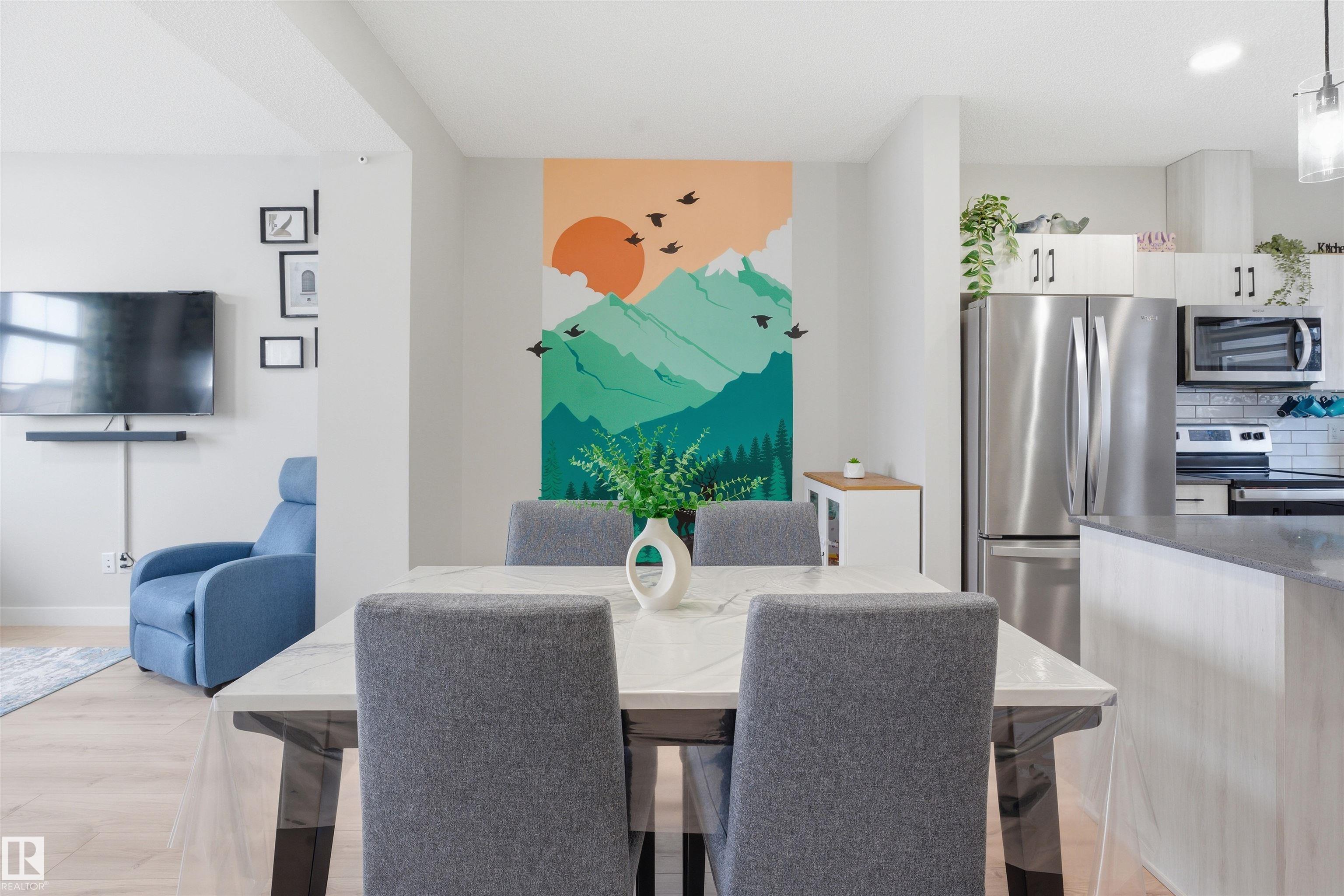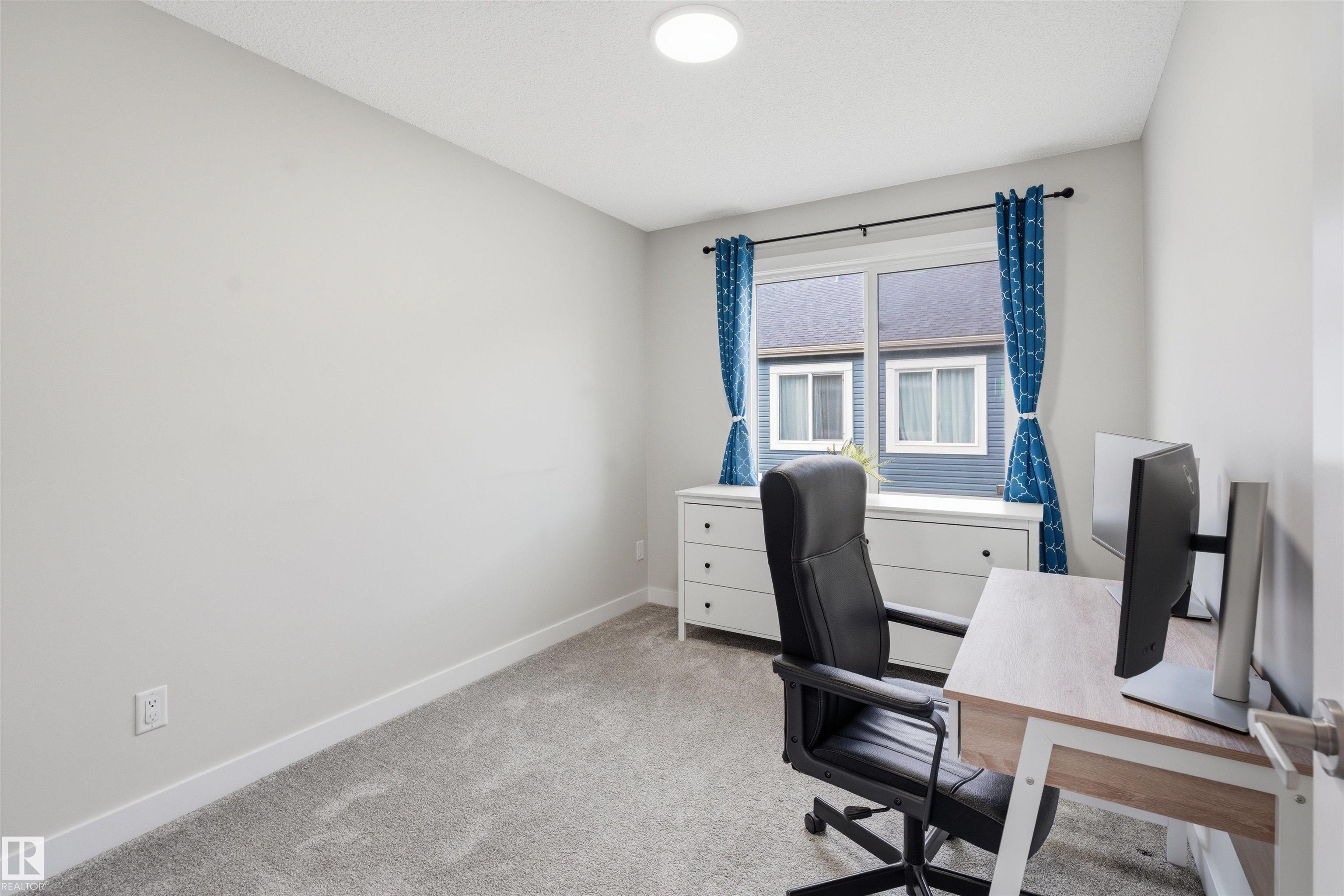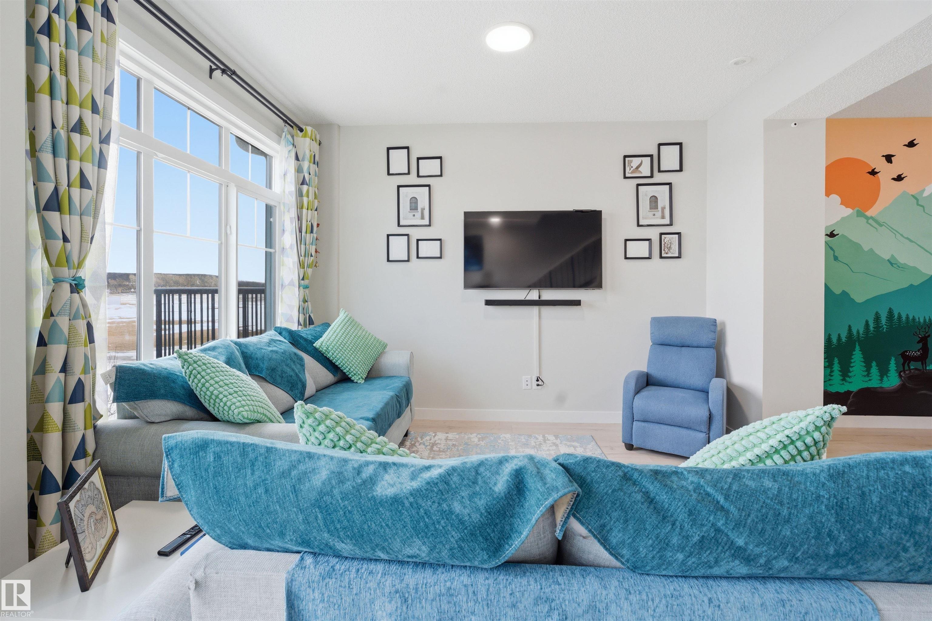 Impeccably maintained, high-quality townhome in the heart of Chappelle, SW Edmonton! Offering exceptional value with low condo fees, this home offers luxury finishes with everyday convenience. The main level features a dedicated OFFICE/DEN, ideal for working from home. The bright, open-concept second floor showcases premium craftsmanship, modern flooring, private balcony and a chef-inspired kitchen with stainless steel appliances, ample cabinetry, and a spacious island perfect for hosting. Upstairs, you'll find generously sized 3 bedrooms, a serene primary suite, and well-designed bathrooms built for comfort. Enjoy peace of mind and long-term efficiency with a tankless water system, HRV, and a high-velocity furnace--all contributing to superior performance and energy savings. A double car garage and gas BBQ hookup in balcony completes this exceptional property. Located in a vibrant community close to future Walmart, parks, trails, schools, shopping, and all amenities. Truly a must-see townhome. SHOWS 10/10