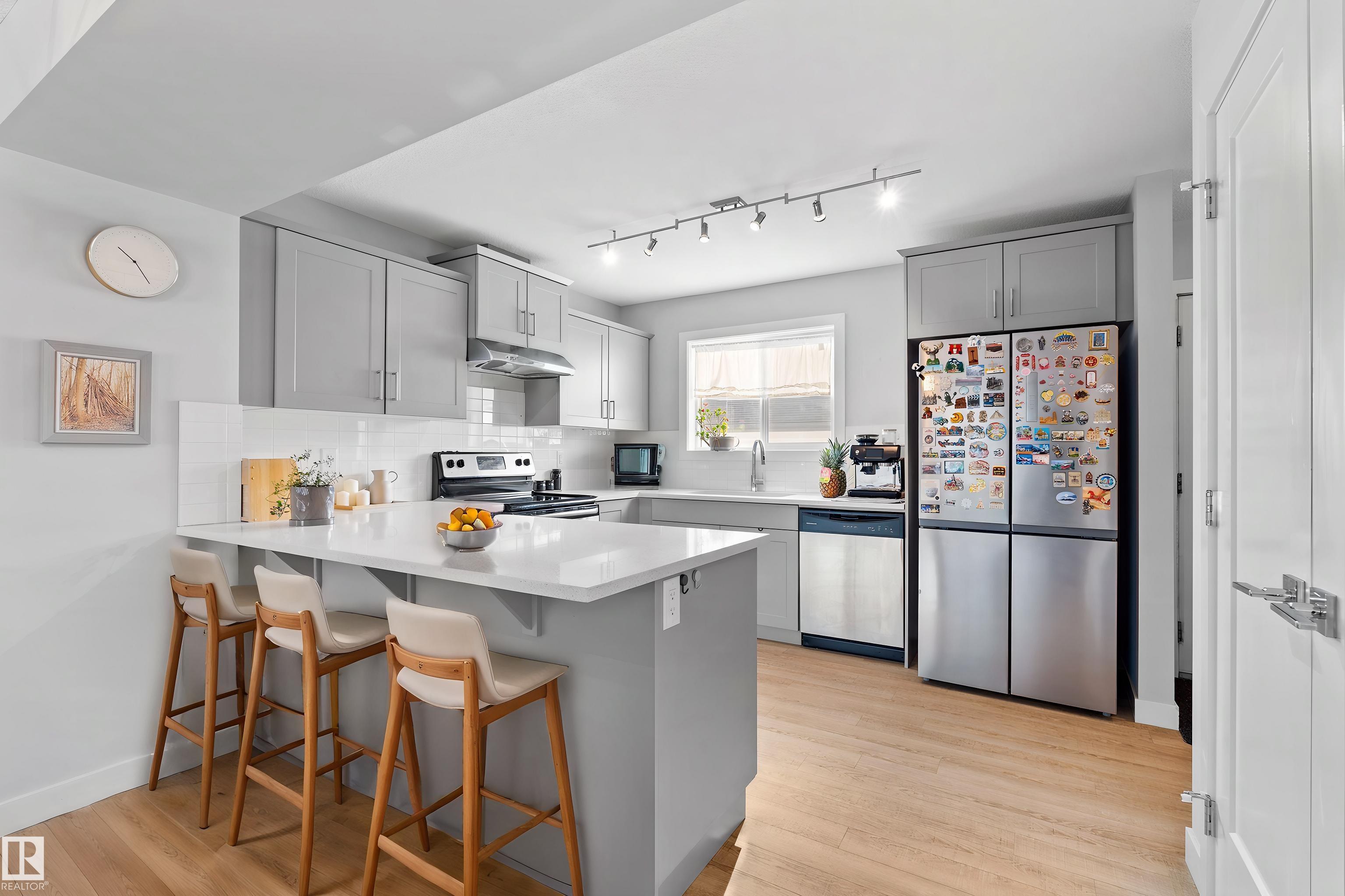 This meticulously maintained, NO condo fee home offers a rare blend of convenience and tranquility in Chappelle. Built by Averton, this 1,215 sqft property features a double master layout, 2.5 bathrooms, and an open-concept design ideal for homeowners or investors. Pride of ownership is felt the moment you walk in, with an organic modern feel, cozy carpets, upgraded cabinetry, quartz countertops, stainless steel appliances, and a clean, neutral palette. Step outside to a large fenced yard and double garage--perfect for everyday living and entertaining. Located minutes to the Henday for easy commuting, yet surrounded by trees, ponds, parks, and walking trails. Chappelle offers a strong sense of community with events and amenities, while maintaining a calm, balanced lifestyle. Don't miss out!
