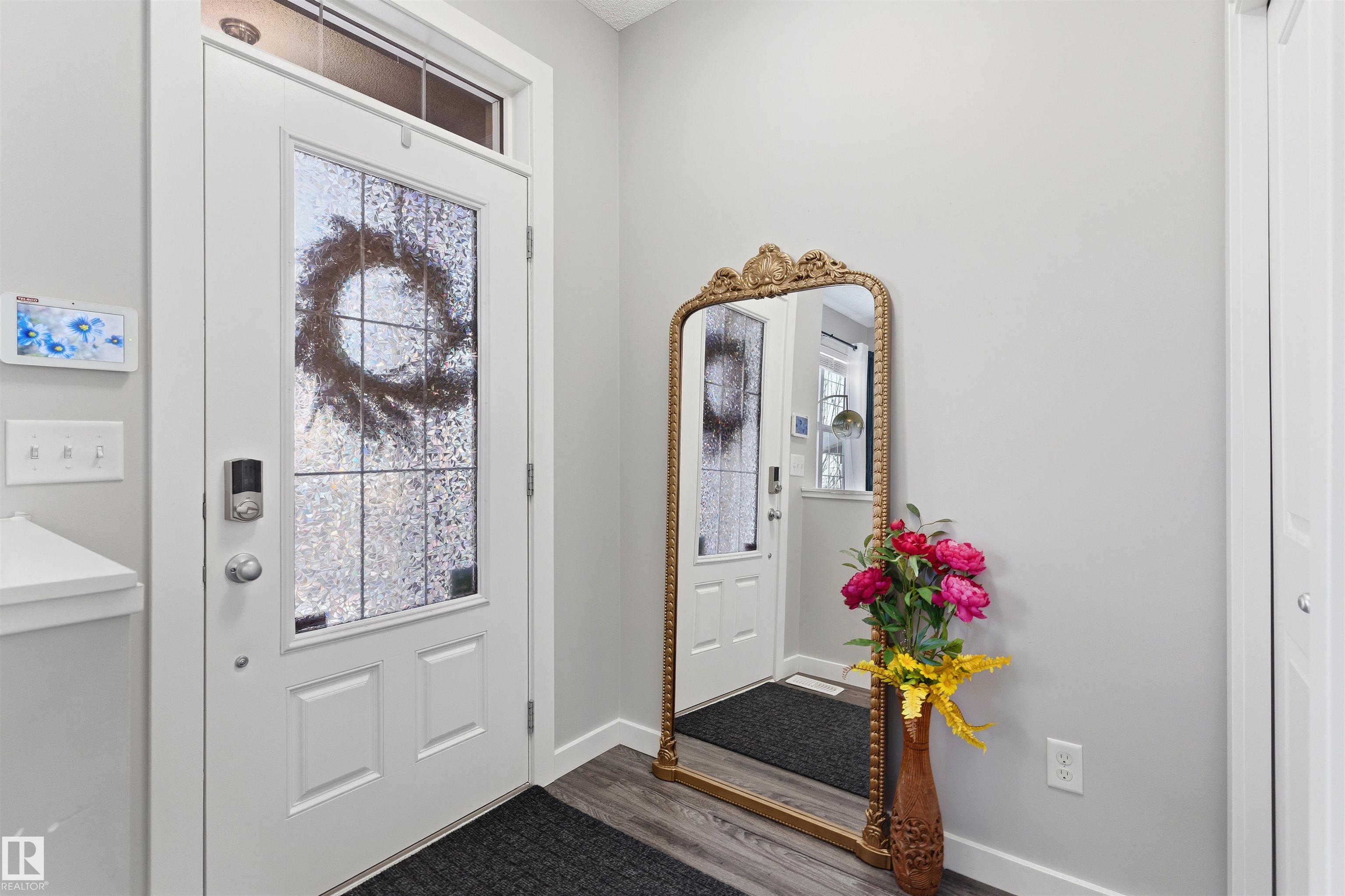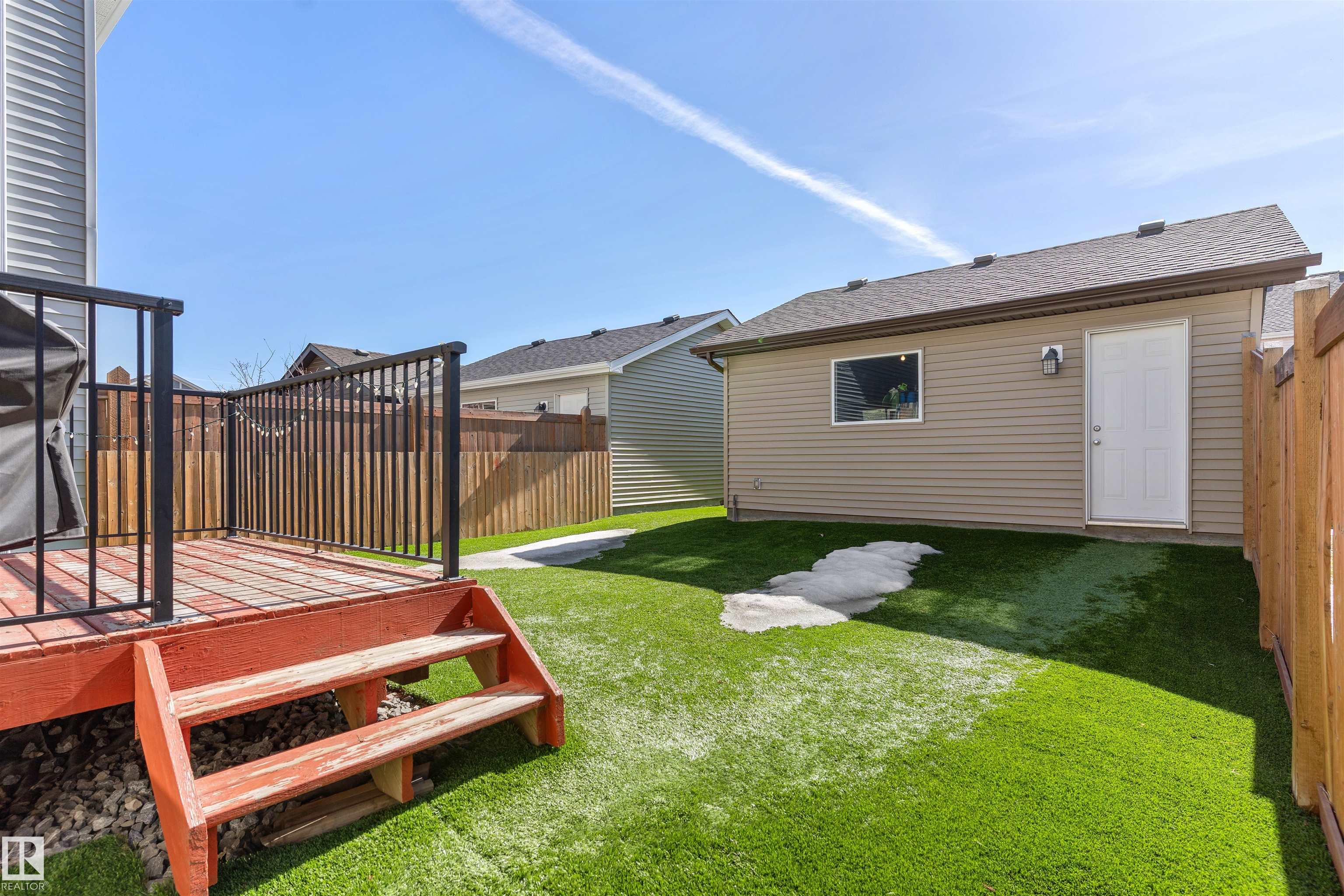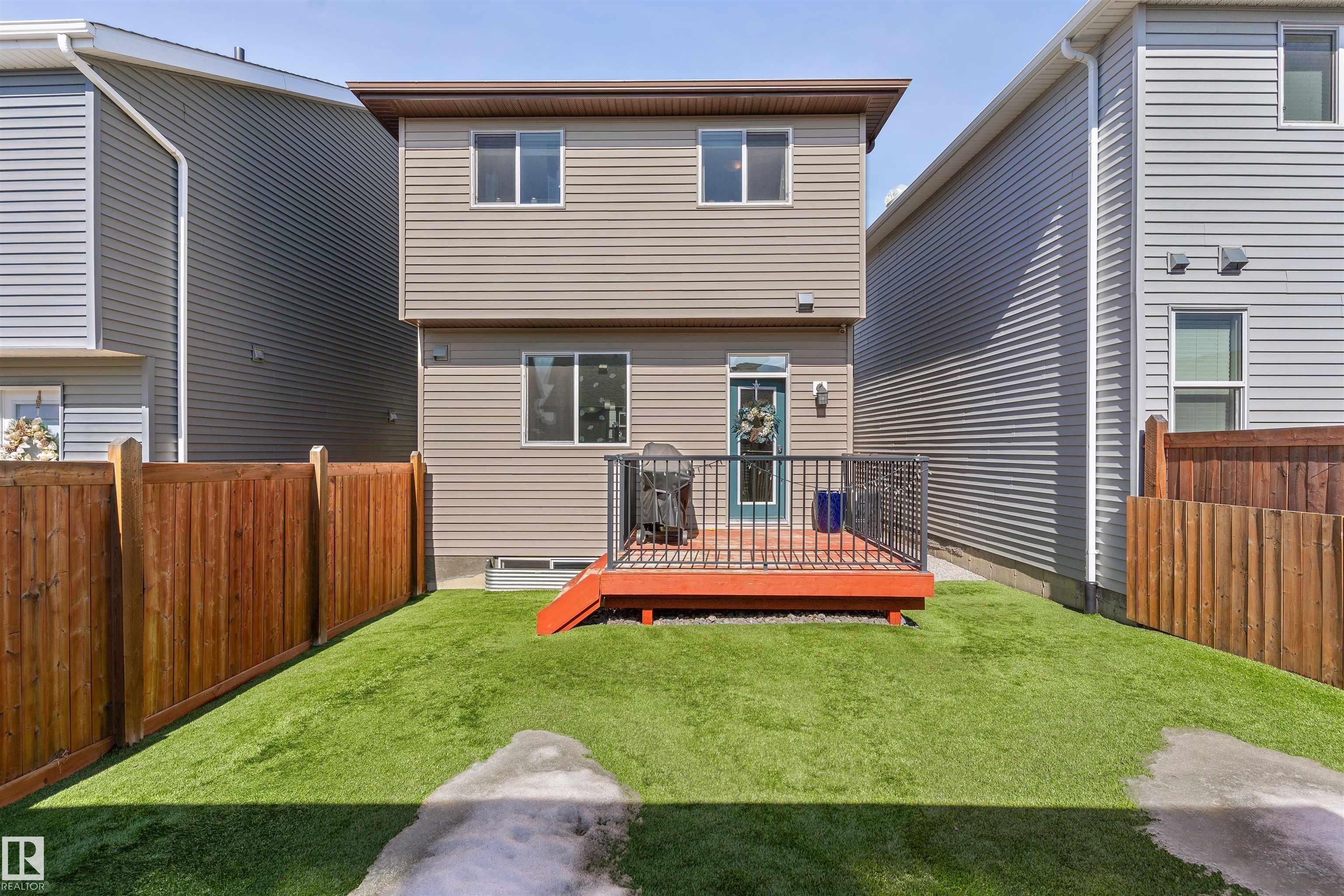 WELCOME TO CHAPPELLE! This fully upgraded home with central A/C, 3 bedrooms, 2.5 baths with double detached garage is the one! The open floor plan with 9 ft ceilings, spacious layout. The kitchen has quartz countertops, stainless steel appliances and large island for entertaining. Upstairs you'll find the primary bedroom with ensuite and walk in closet, 2 bedrooms with dedicated full bath and laundry room. Additional features include a built in speaker system and built in lights. Low maintenance landscaping means you spend less time mowing grass and more time using the BBQ with your gas line on the deck. Located close to walking trails, Creekwood Park, a playground, shopping and schools.