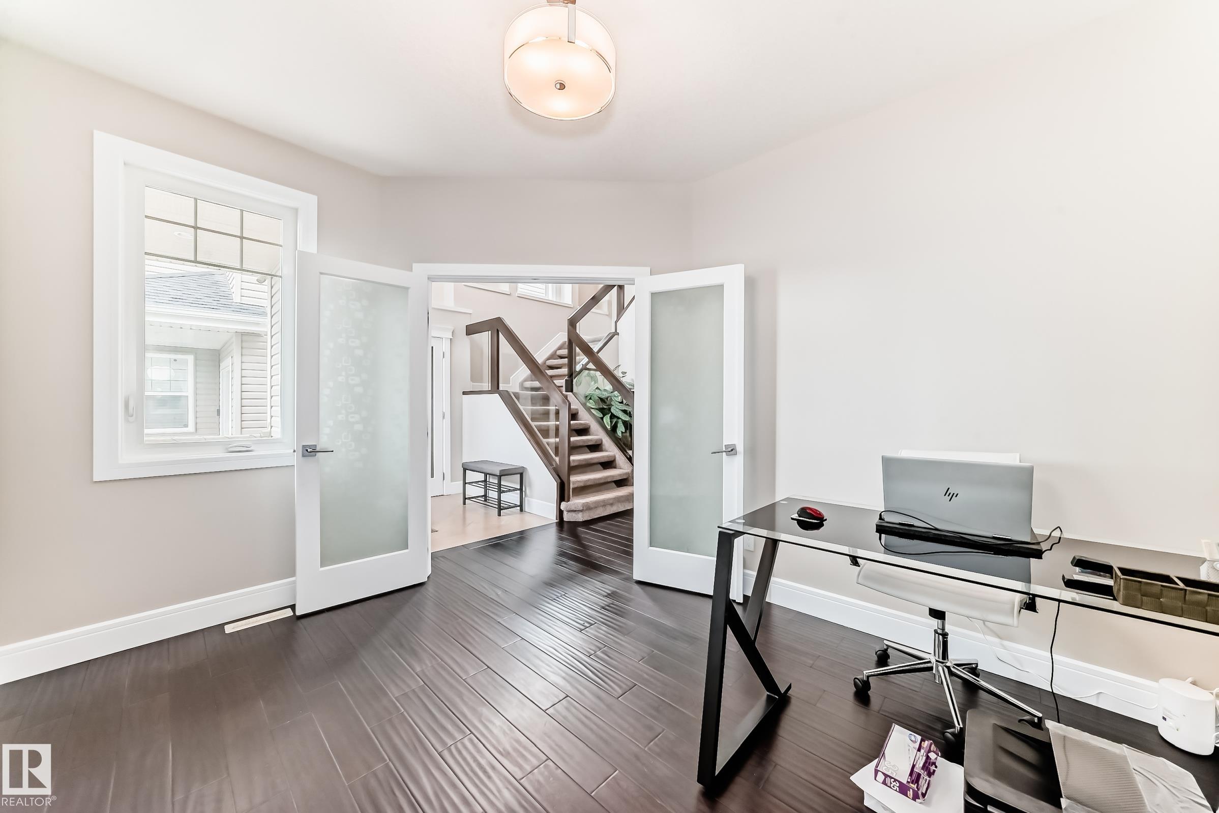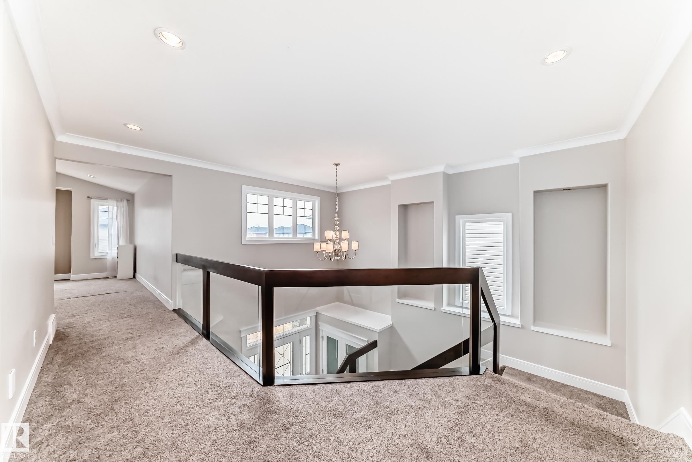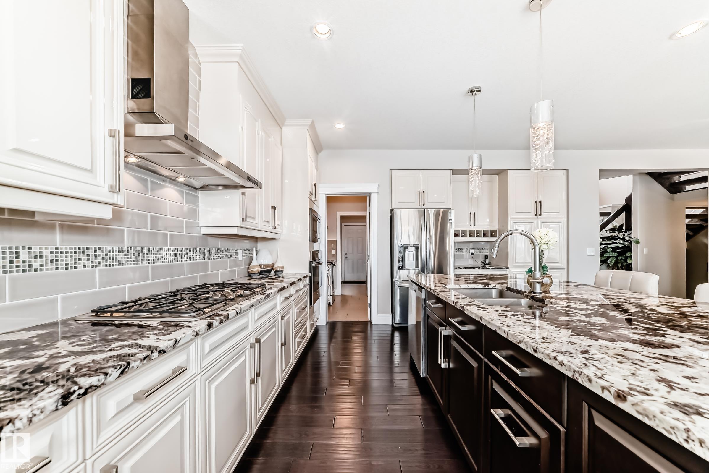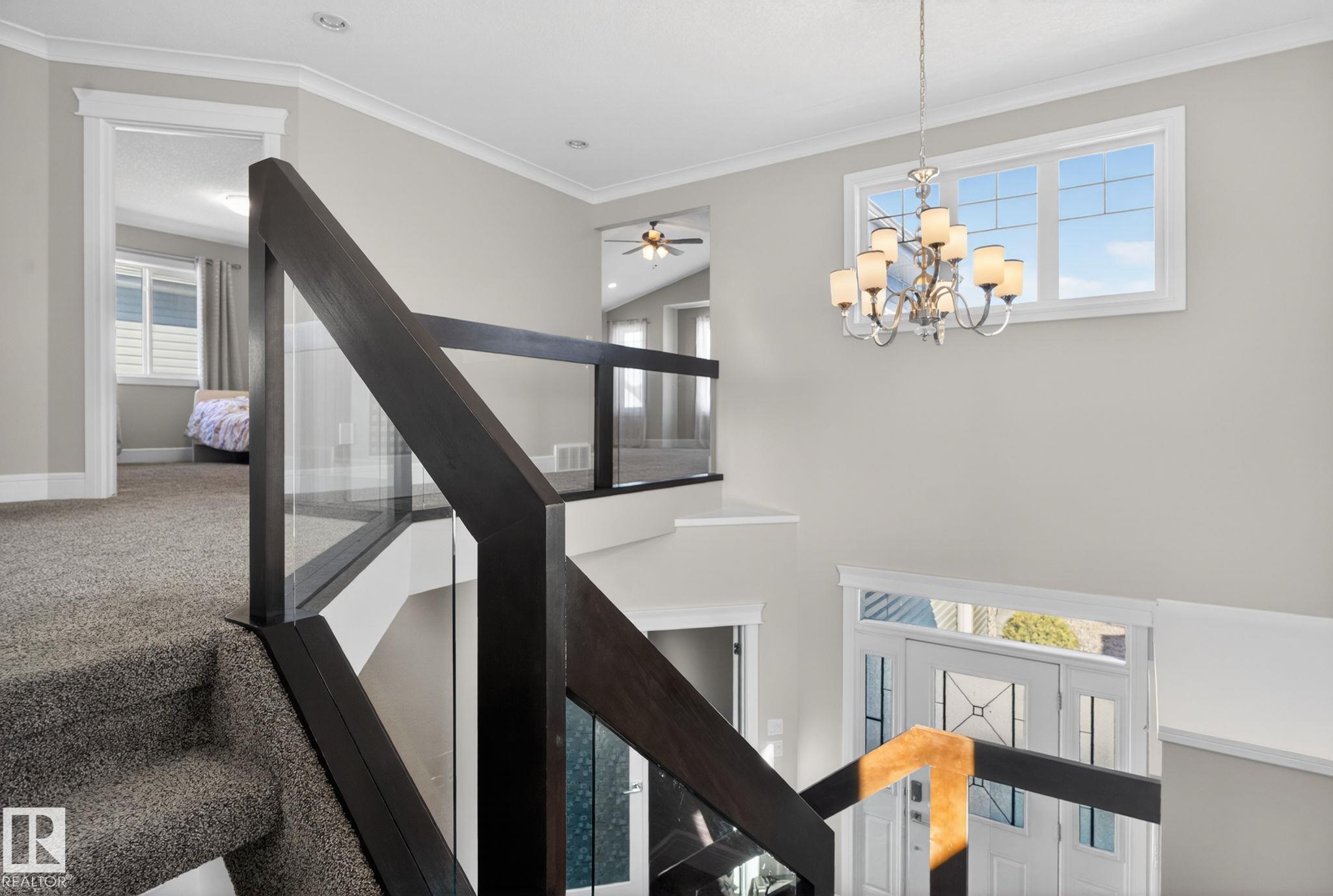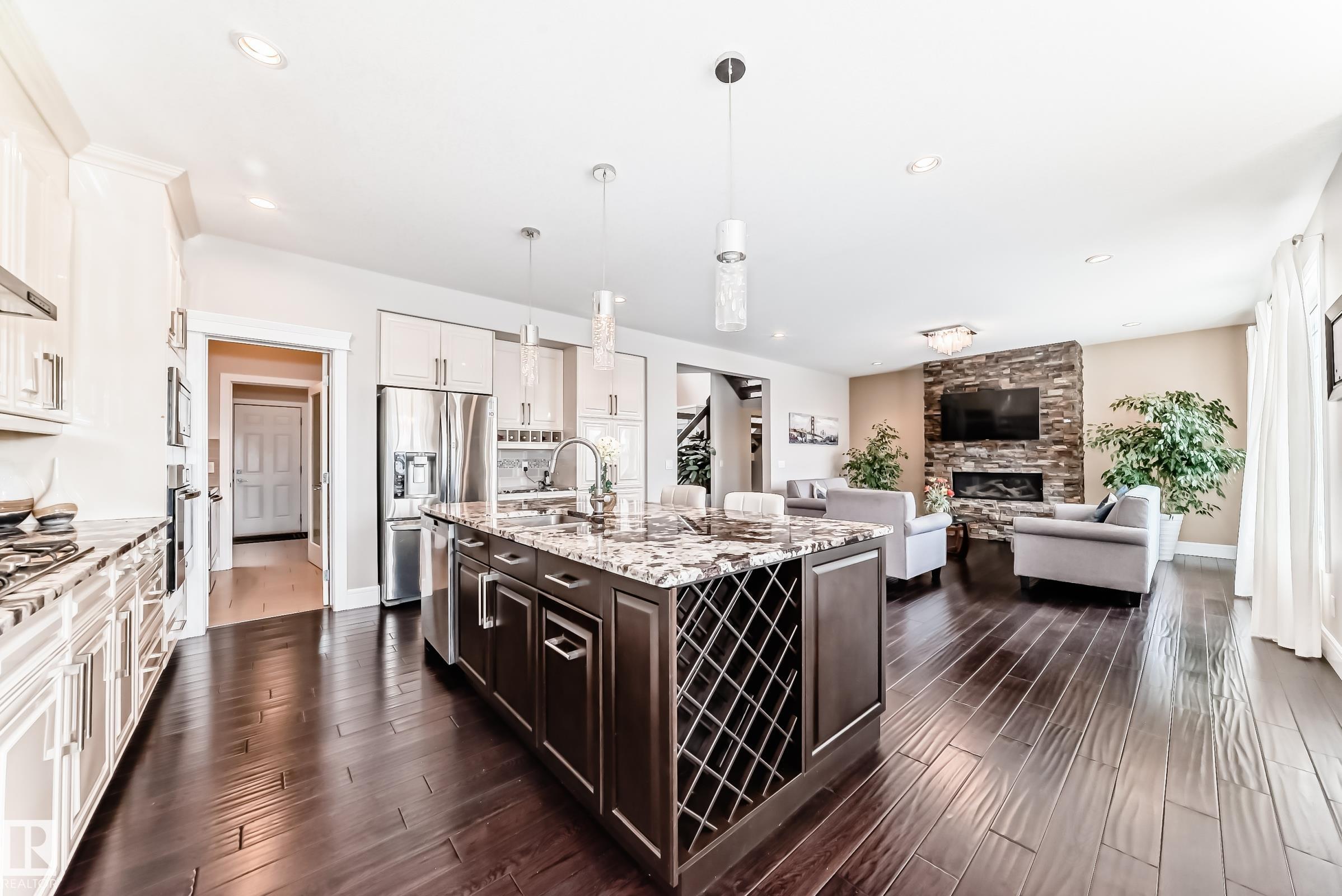 Custom-Built 2-Storey Walkout Backing Onto the Lake in Chappelle! Welcome to this stunning custom-built 2-storey home offering 2,809 sq ft of luxurious living space, unfinished basement & breathtaking pond views. Located in the desirable community of Chappelle, residents enjoy access to a splash park, skating rink, & picnic areas. The main floor features a grand foyer with soaring ceilings, a versatile den, a full 3-piece bath, and a convenient laundry/mudroom. The dining area offers direct access to the deck--perfect for entertaining. The kitchen boasts high-gloss cream cabinetry, a massive island, granite countertops, and a walk-through pantry with prep kitchen. Upstairs, the elegant open-tread staircase with modern glass railings leads to a spacious bonus room with vaulted ceilings, three generously sized bedrooms, and two full bathrooms. Highlights include an oversized double attached garage, a prime location just steps from parks and playgrounds, with easy access to the airport & Anthony Henday.