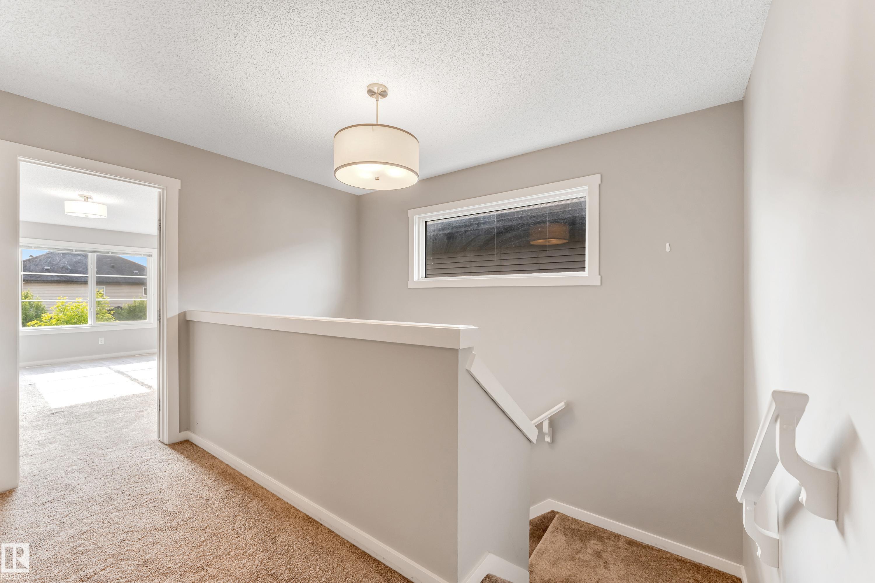 Welcome to this stylish 1,697 SQFT home in the sought-after community of Hills at Charlesworth! This well-designed property features 3 bedrooms, 2.5 baths, including a spacious primary suite with a walk-in closet and 3-piece ensuite. Enjoy the convenience of upstairs laundry and the comfort of an open-concept main floor with a bright living area. The modern kitchen offers two-tone cabinets, stainless steel appliances, ceiling-height cabinetry, and a walk-in pantry. Step outside to a finished deck and fully fenced backyard--perfect for summer gatherings. The single attached garage adds convenience, and with the basement stairs positioned along the exterior wall, there's excellent potential for a future separate entrance.