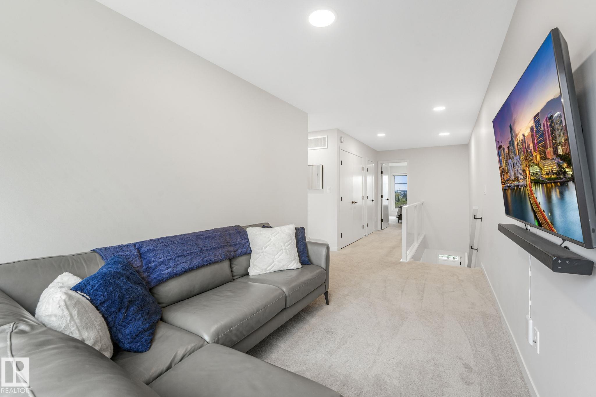 Welcome to the sought out community of Charlesworth! Built by Cantiro Homes, this 3 bed 2.5 bath home offers the perfect blend of comfort and convenience. This highly desired CORNER lot features 9ft ceilings throughout the lower and main levels, complimented by additional park-facing side windows that flood the home with natural light. Designed to entertain; this kitchen is a showstopper! Featuring a gas range, upgraded backsplash, granite sink, and premium fridge. Upstairs you'll find a spacious primary with ensuite, along with a second bedroom, laundry, bathroom, and bonus room. The GAS HEATED double garage features epoxy flooring, an EV charger, and a hose bib. The tandem style allows for a second vehicle, or additional space for a workshop, gym, or extra storage. Relax in comfort with CENTRAL A/C and appreciate the low maintenance lifestyle this home offers. Perfectly located next to green space and close to schools, parks, this home delivers modern upgrades, thoughtful design, and easy living. Enjoy!