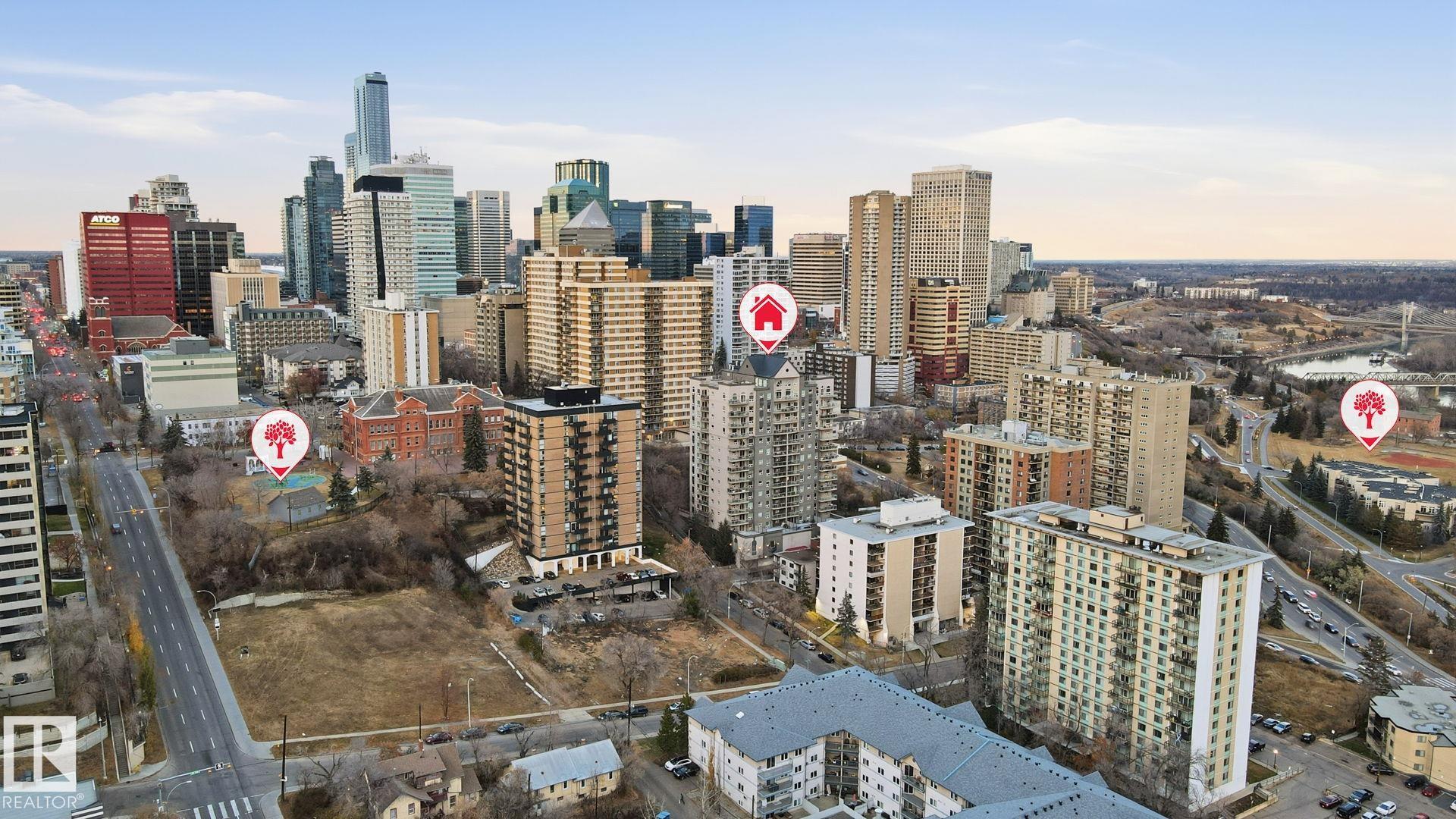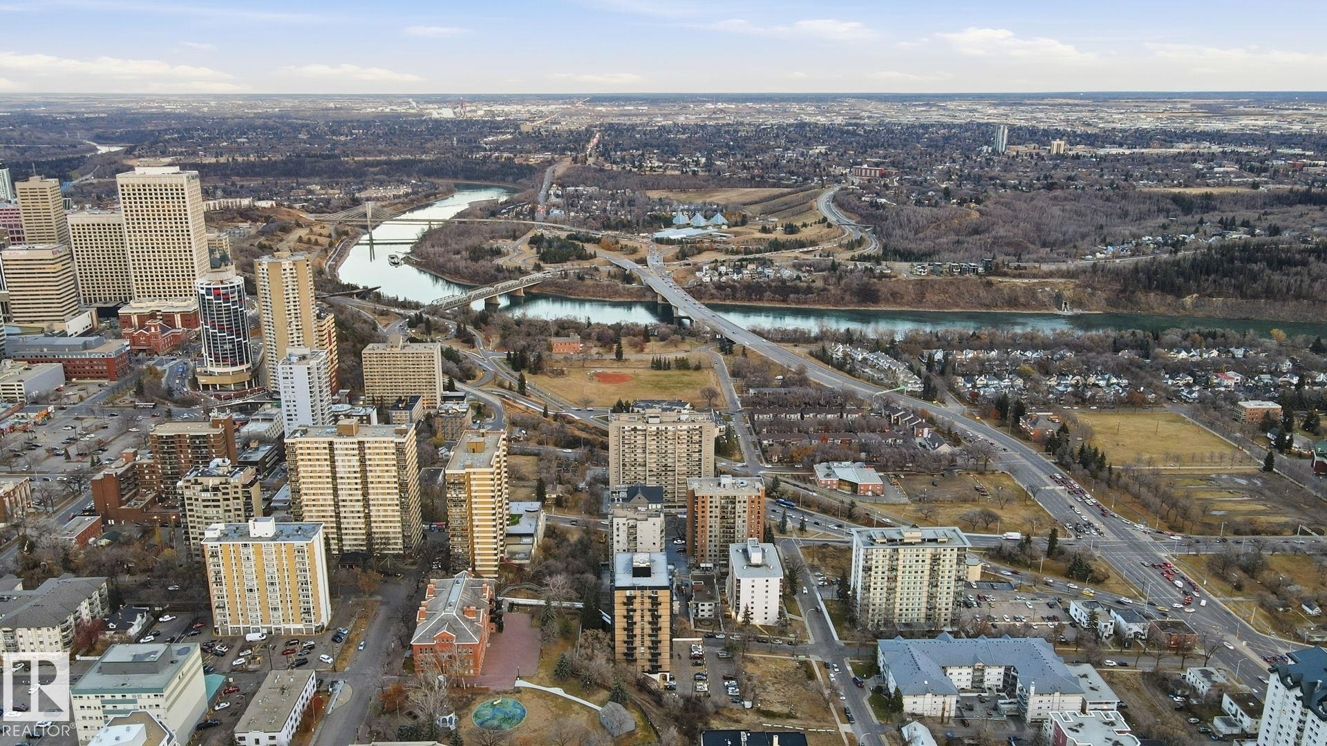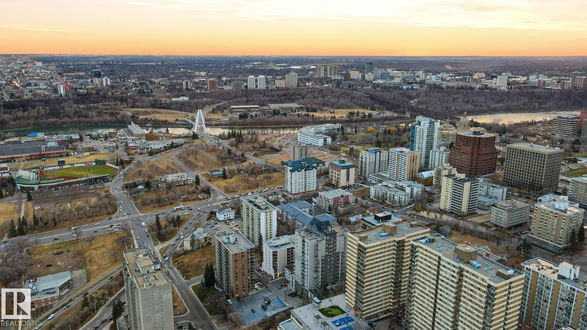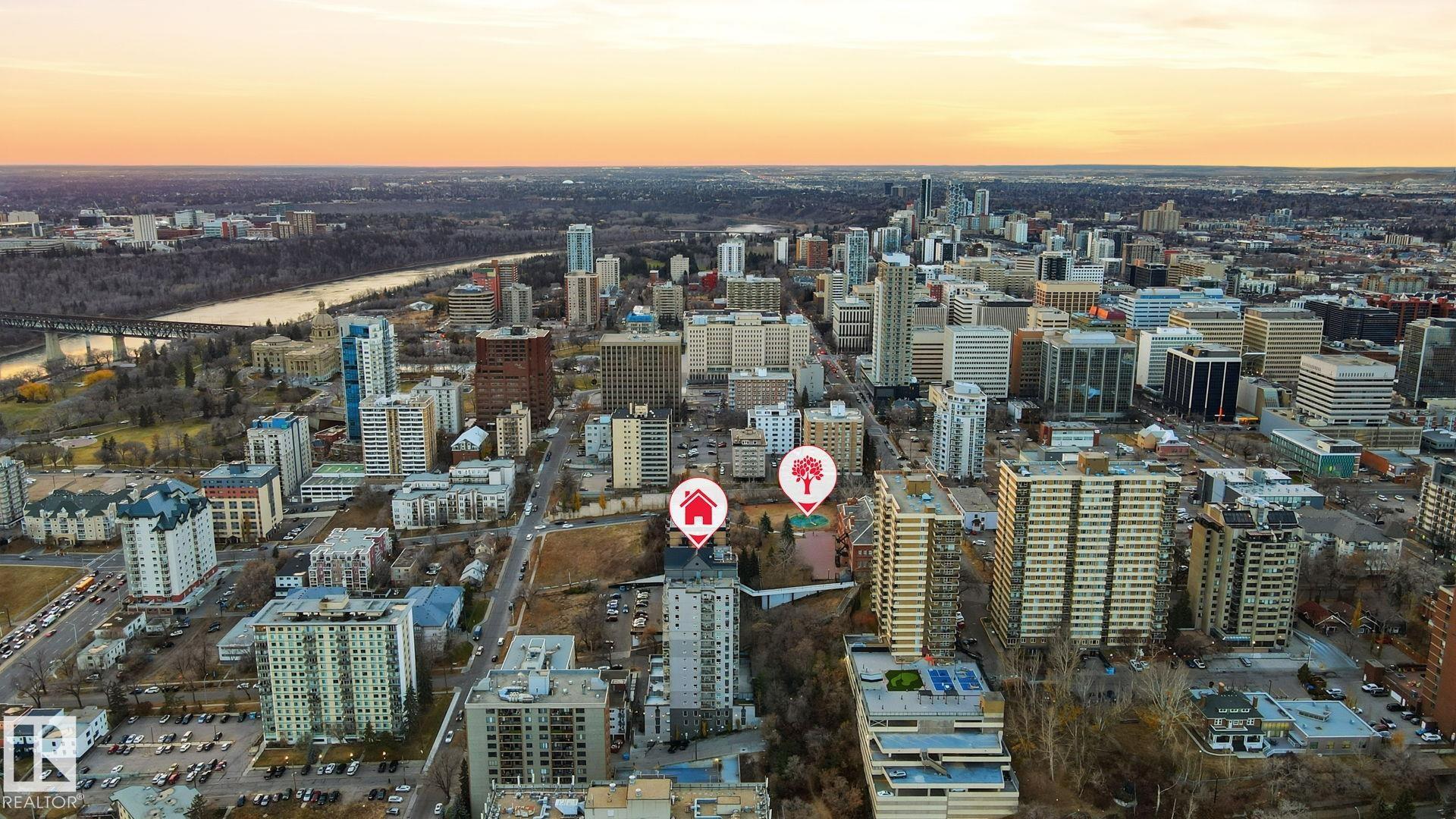 Enjoy downtown views from this move in ready condo in Vivacity, perfectly located near downtown, public transit, the river valley trails, shopping, restaurants, and the U of A. This modern open-concept suite features 9 ft ceilings, granite countertops, white cabinetry, stainless steel appliances, a kitchen island, and maple engineered hardwood flooring. The bright living area offers north and east exposures plus a gas BBQ hookup on the balcony. Recent upgrades include new carpet in the bedroom and a new furnace for added comfort. Included are the fridge, ceramic top stove, built-in microwave, dishwasher, in-suite washer & dryer, window coverings, and A/C. Comes with titled underground parking stall #96 on P1. Condo fees include heat, water, power, and access to building amenities: a rooftop patio with panoramic views, fitness room, and event room. A must-see condo offering modern living and unbeatable downtown convenience!