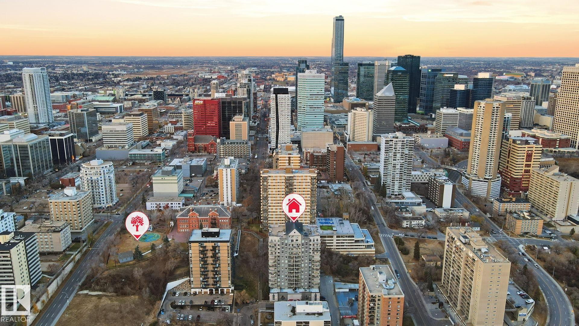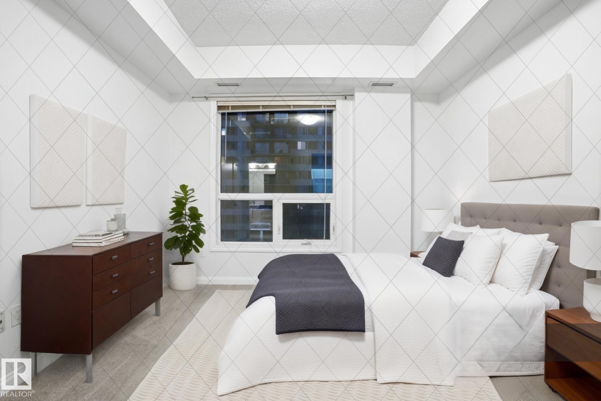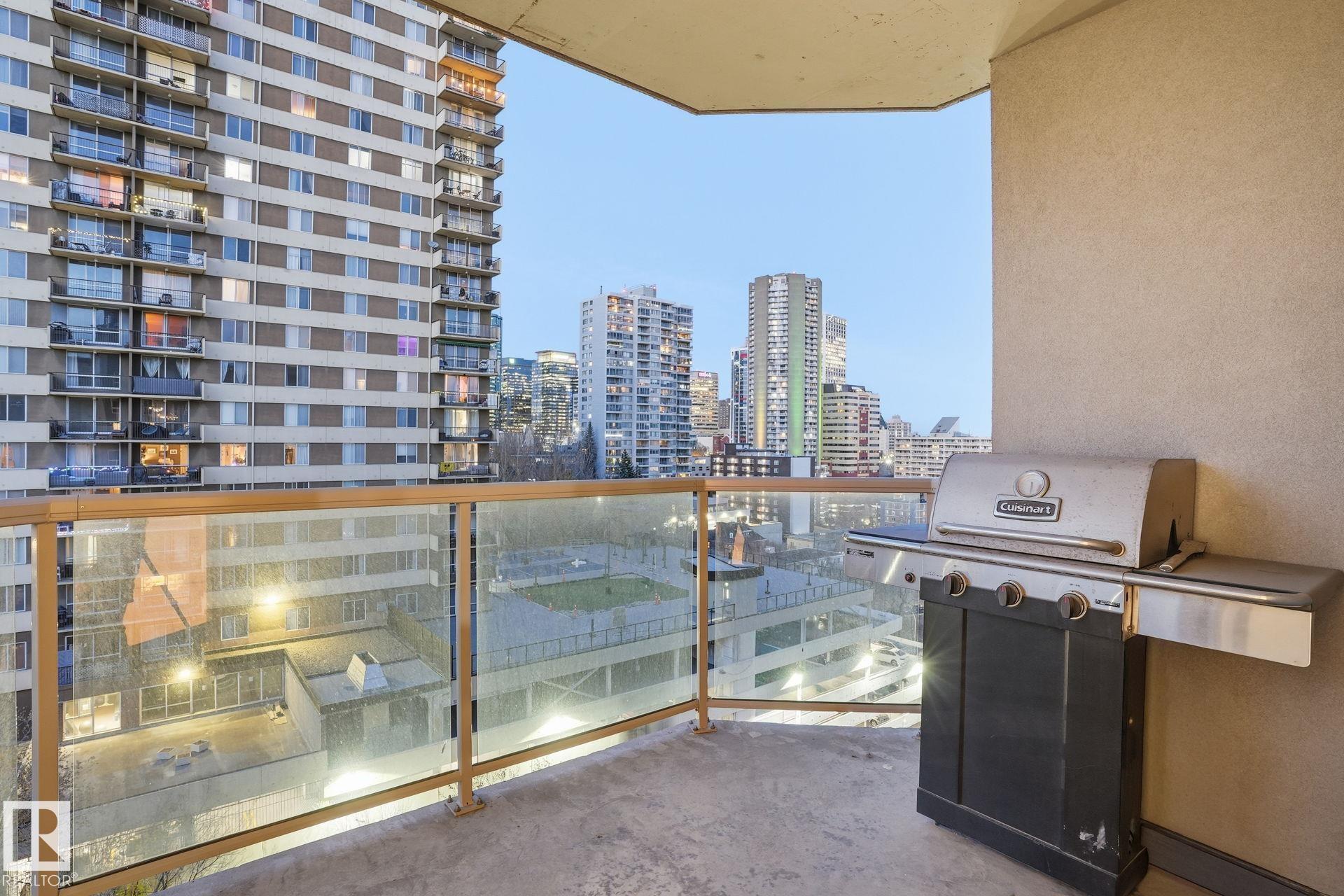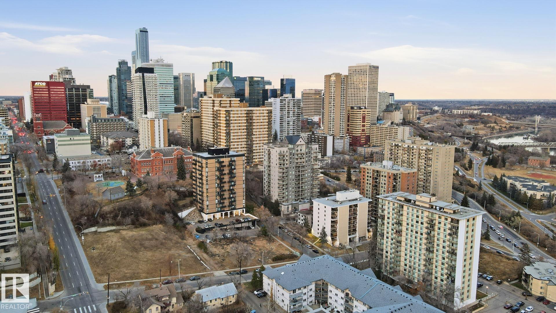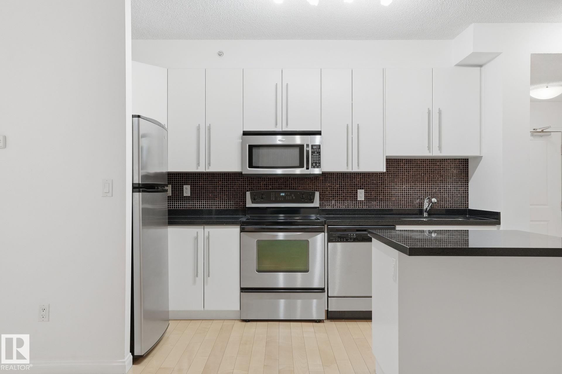 Enjoy downtown views from this move in ready condo in Vivacity, perfectly located near downtown, public transit, the river valley trails, shopping, restaurants, and the U of A. This modern open-concept suite features 9 ft ceilings, granite countertops, white cabinetry, stainless steel appliances, a kitchen island, and maple engineered hardwood flooring. The bright living area offers north and east exposures plus a gas BBQ hookup on the balcony. Recent upgrades include new carpet in the bedroom and a new furnace for added comfort. Included are the fridge, ceramic top stove, built-in microwave, dishwasher, in-suite washer & dryer, window coverings, and A/C. Comes with titled underground parking stall #96 on P1. Condo fees include heat, water, power, and access to building amenities: a rooftop patio with panoramic views, fitness room, and event room. A must-see condo offering modern living and unbeatable downtown convenience!
