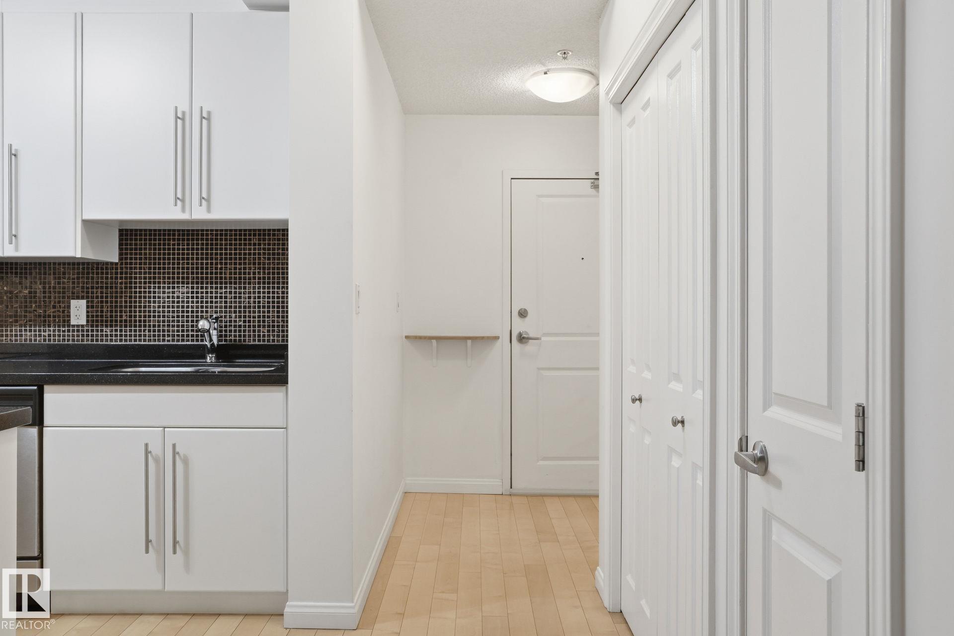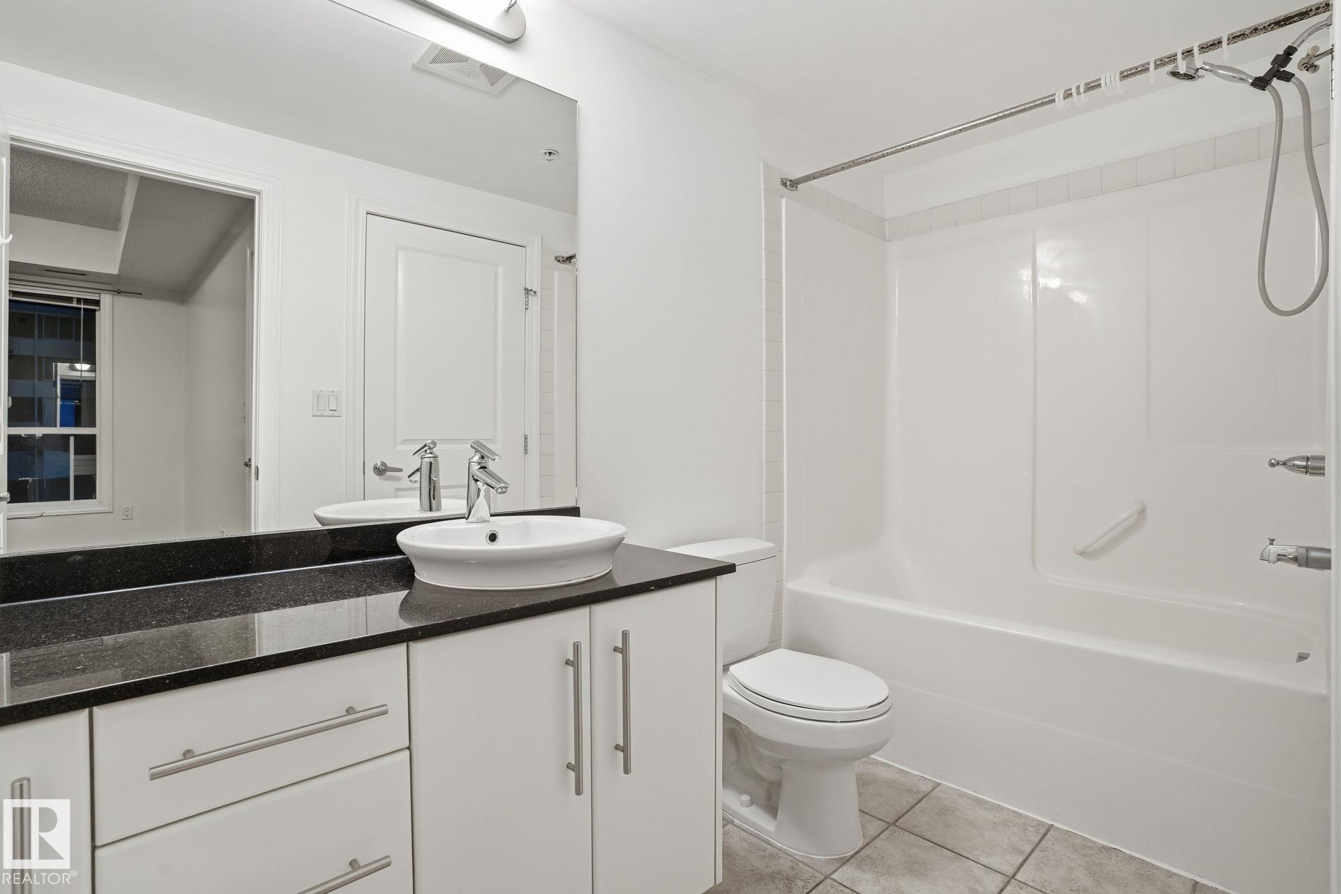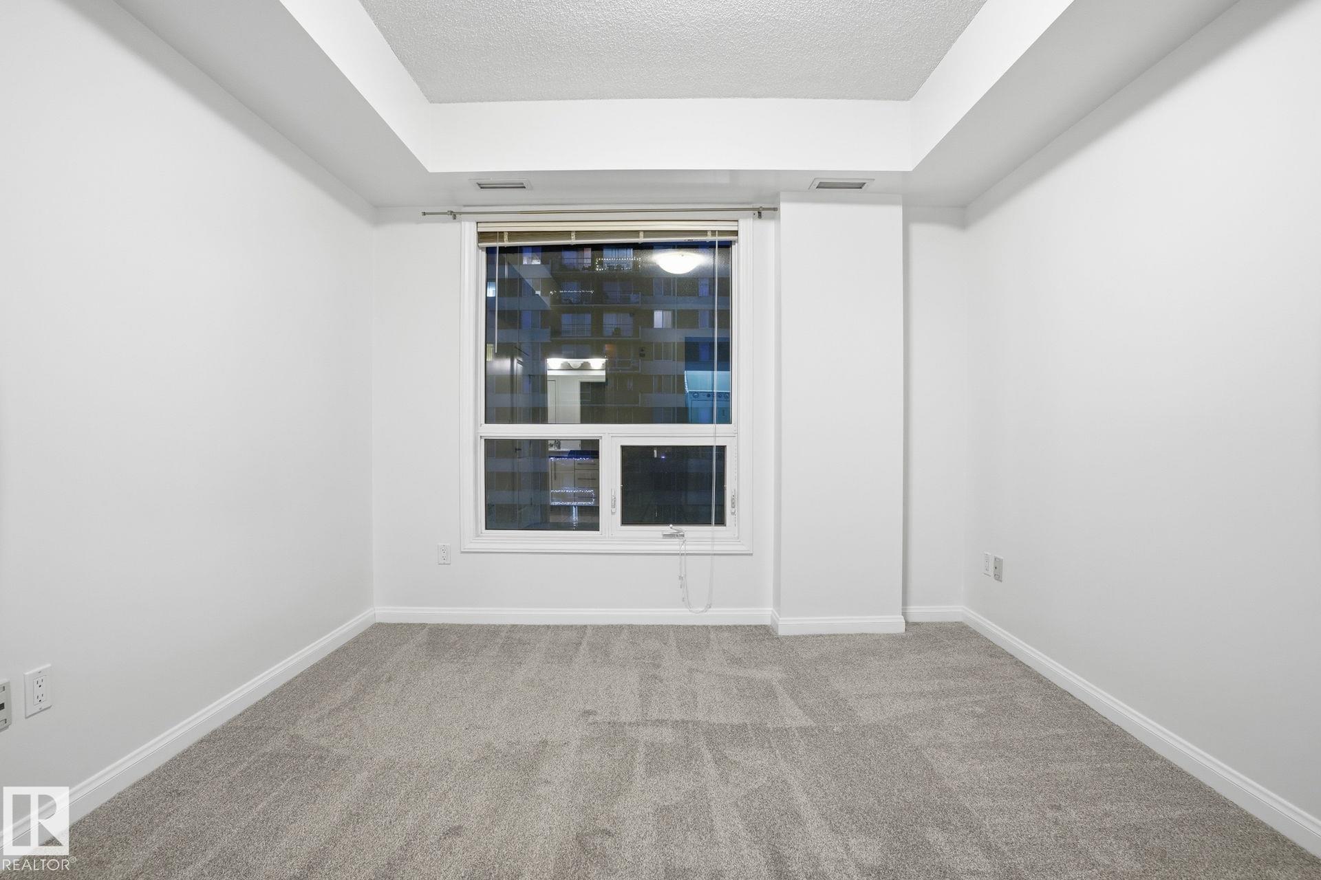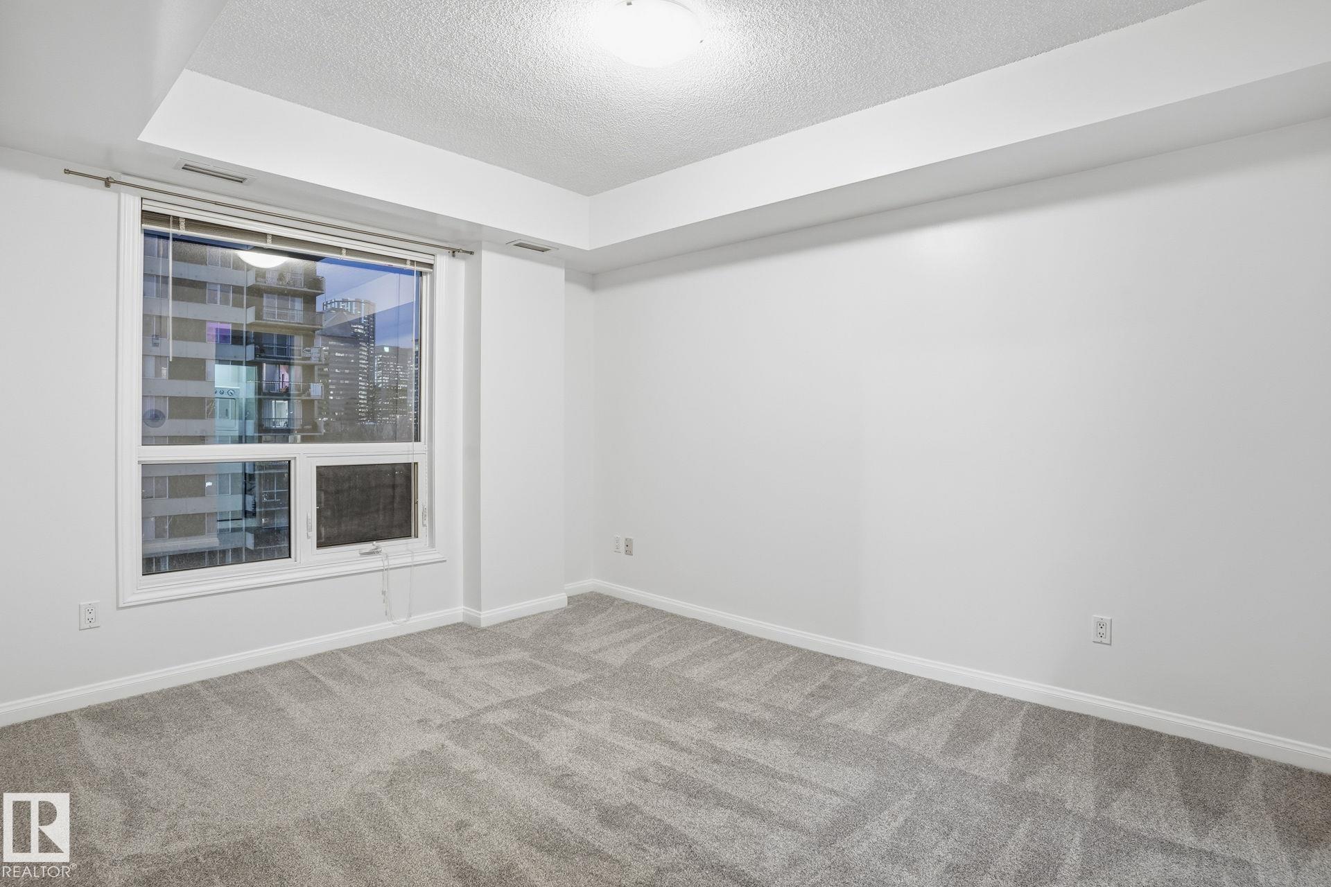 Enjoy downtown views from this move in ready condo in Vivacity, perfectly located near downtown, public transit, the river valley trails, shopping, restaurants, and the U of A. This modern open-concept suite features 9 ft ceilings, granite countertops, white cabinetry, stainless steel appliances, a kitchen island, and maple engineered hardwood flooring. The bright living area offers north and east exposures plus a gas BBQ hookup on the balcony. Recent upgrades include new carpet in the bedroom and a new furnace for added comfort. Included are the fridge, ceramic top stove, built-in microwave, dishwasher, in-suite washer & dryer, window coverings, and A/C. Comes with titled underground parking stall #96 on P1. Condo fees include heat, water, power, and access to building amenities: a rooftop patio with panoramic views, fitness room, and event room. A must-see condo offering modern living and unbeatable downtown convenience!