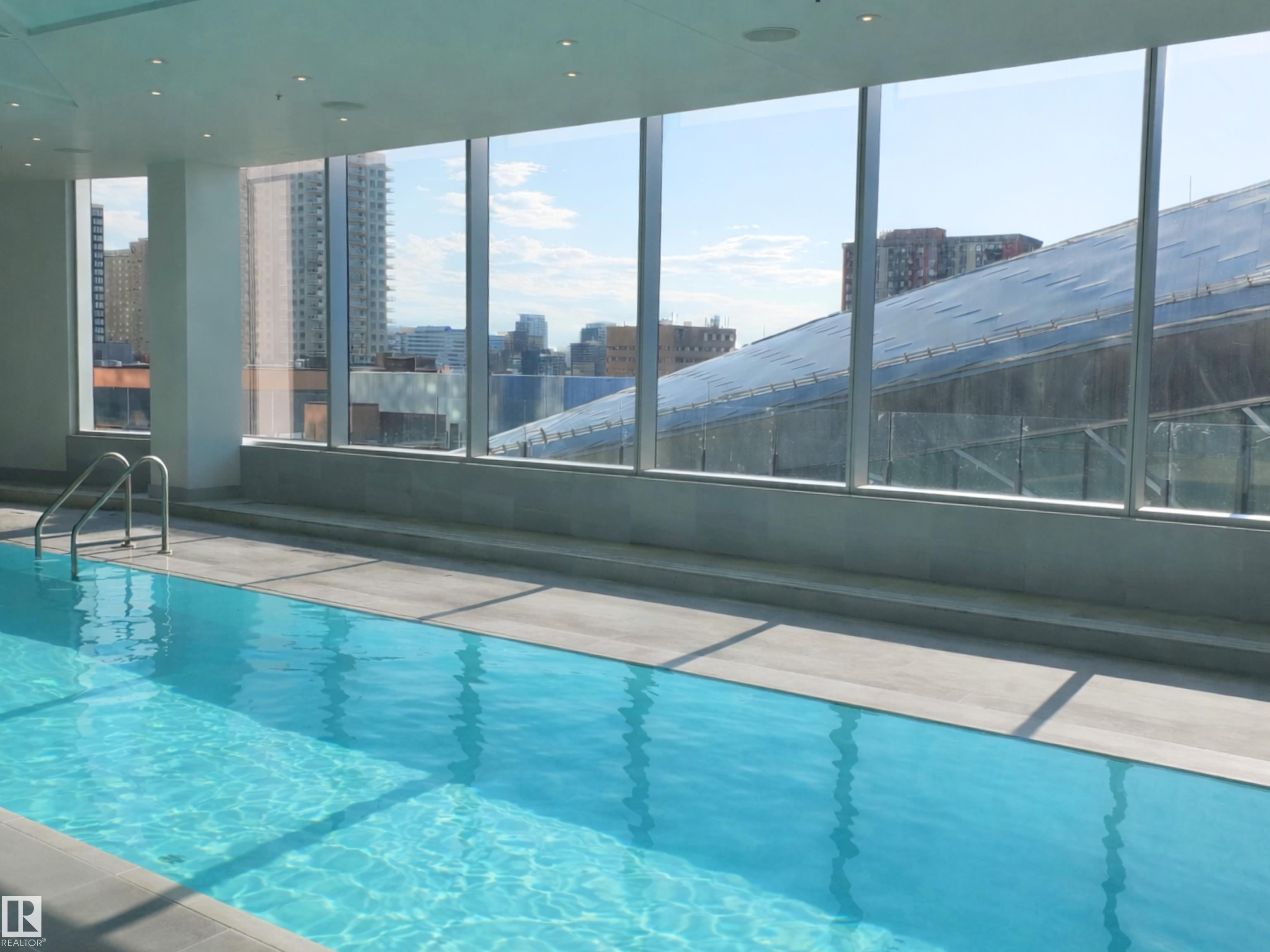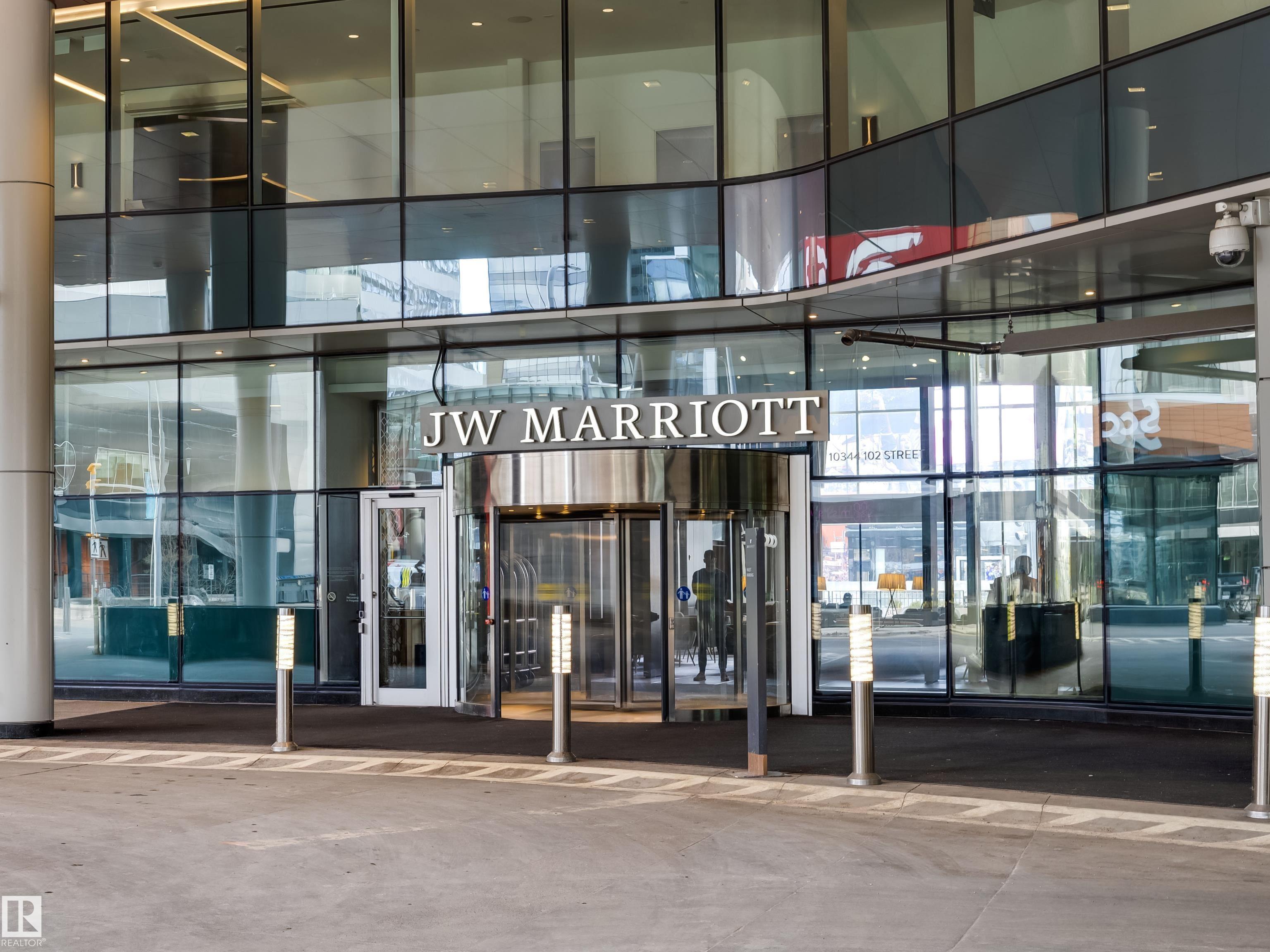 Welcome to The Legends Private Residences, located above the prestigious JW Marriott in the heart of the Ice District. This stylish, move-in-ready, one-bedroom, one-bathroom residence offers in-suite laundry, engineered hardwood flooring, floor-to-ceiling windows, and balcony with beautiful sunset views. The modern kitchen features quartz countertops and high-quality built-in Bosch and Miele appliances, combining sleek design with everyday functionality. The unit includes a titled parking stall, storage unit, along with access to the JW Marriott's premium amenities. Enjoy membership to the Archetype Fitness Centre, indoor pool, hot tub, steam room, and spa, plus exclusive use of The Residence Club amenities including a rooftop patio, billiards lounge, conference room, outdoor BBQ patio, dog run, and 24/7 concierge and security. Direct pedway access connects you to Rogers Place, restaurants, grocery, and more. Experience elevated living at The Legends Private Residences.