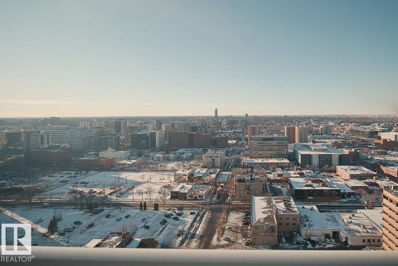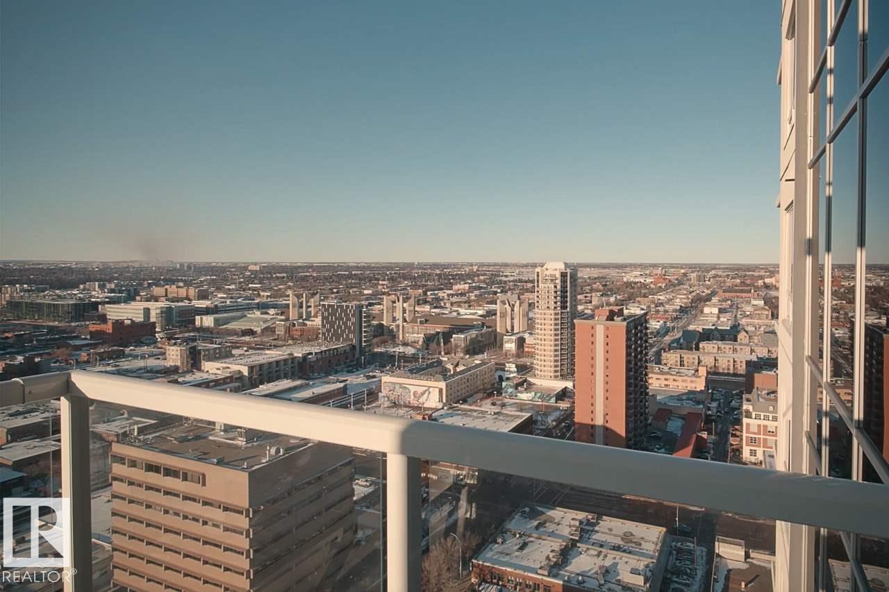Introducing this captivating 2 bedroom, 2 bath executive condo perched on the 23rd Floor in the luxurious Fox Two tower. With stunning views from every room, this pristine condo features a wide open floor plan, modern kitchen fitted with high gloss cabinetry, stainless steel appliances and beautiful quartz counters. The spacious dining area is open to the bright great room leading to the west facing balcony with endless views of the city and amazing sunsets. The master retreat is complete with a full ensuite bath, walk-through closet and direct access to the balcony. The 2nd bedroom is spacious and filled with natural light with views of the city, 2nd full bath is next to the in-suite laundry with storage plus air conditioning and underground titled parking stall. Located in the heart of downtown on Edmonton's most desired streets showcasing award winning restaurants, pubs and shopping & within steps to the Ice District & LRT system, this truly is high rise living at it's finest!