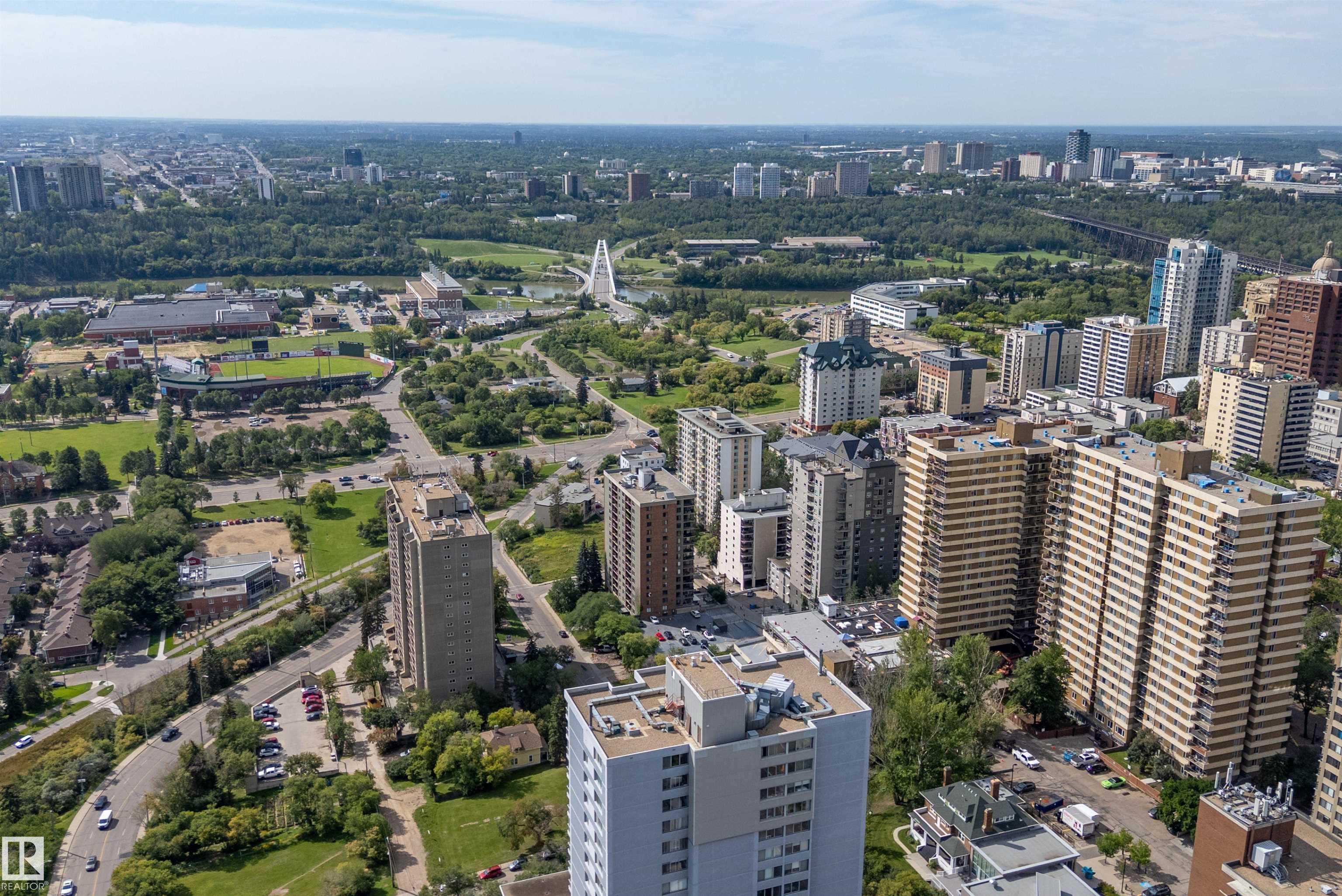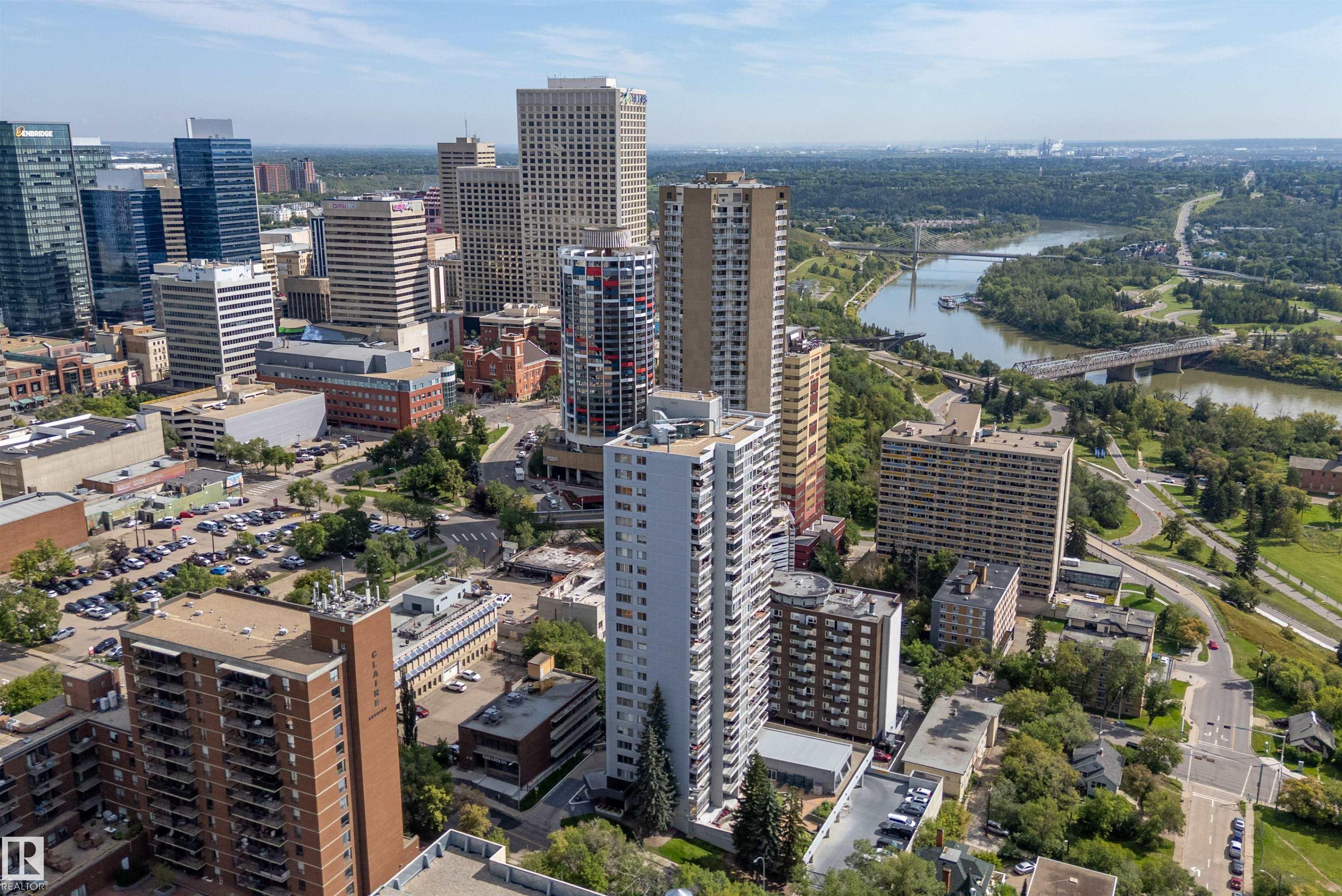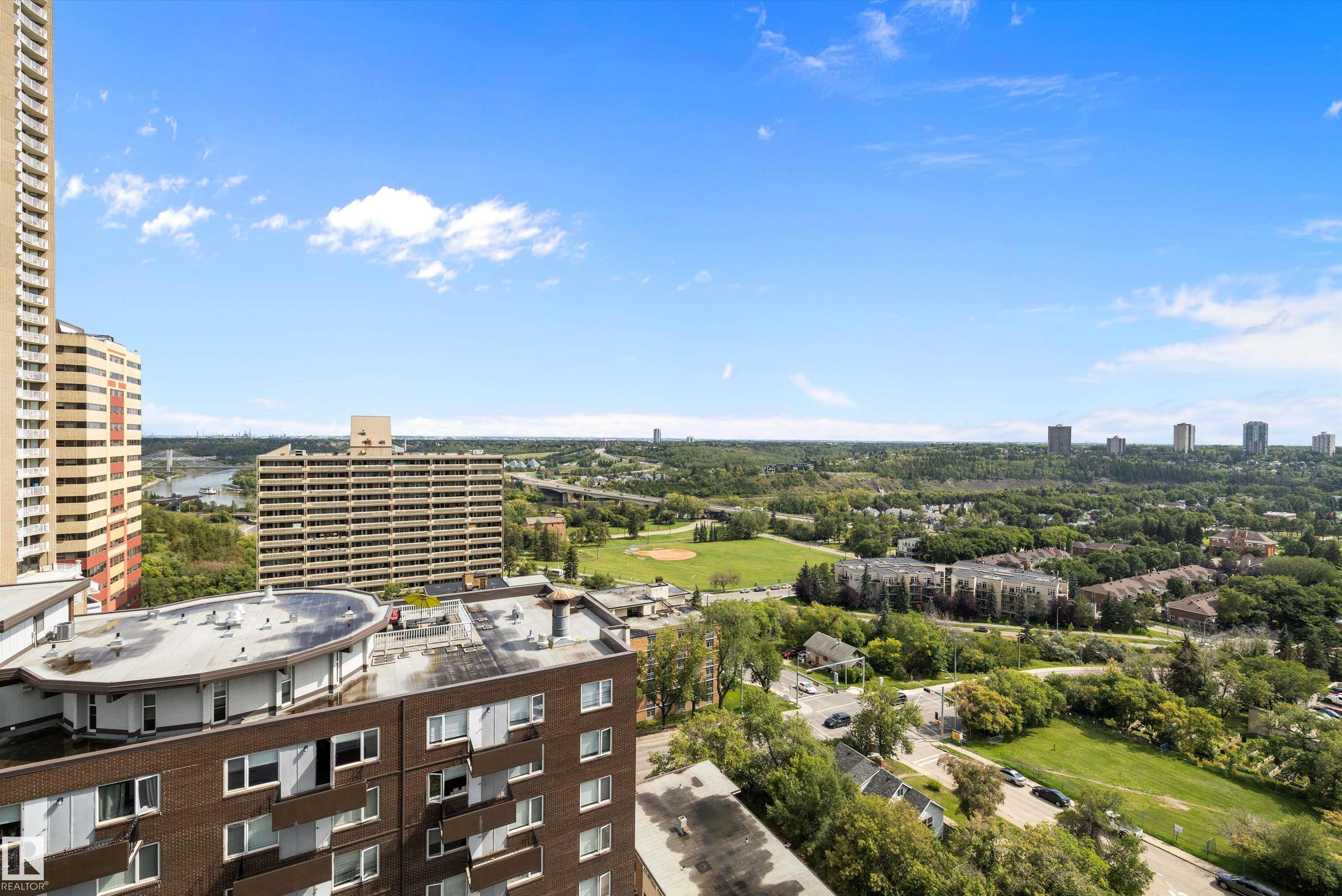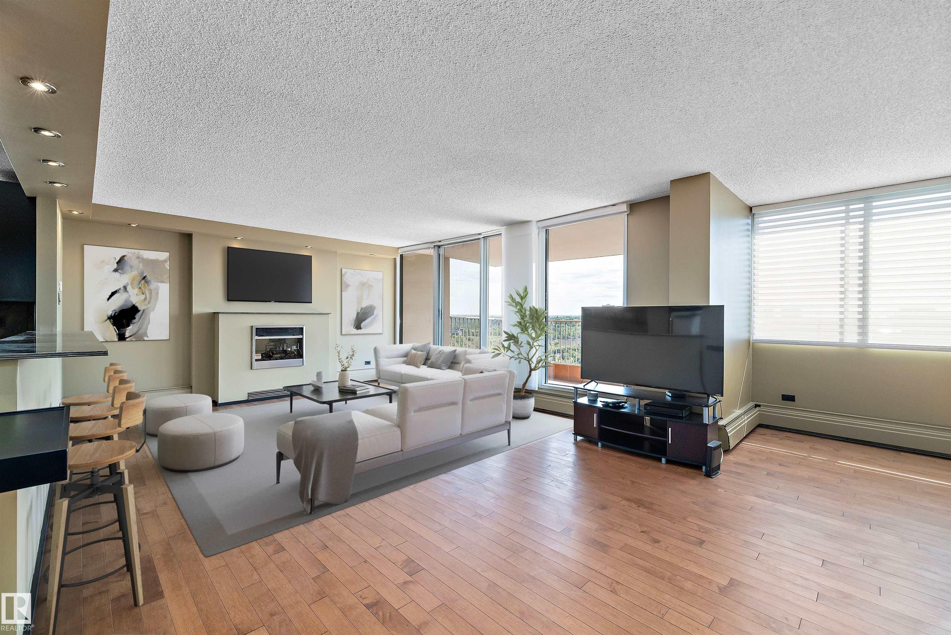 Experience breathtaking river valley views from this beautiful downtown suite located on the 11th floor of Valley Towers! Featuring 2 bedrooms & 2 bathrooms this large 1393 Sq Ft unit is perfectly positioned just steps away from Edmonton's beautiful River Valley, Downtown, and the UofA! The galley style Kitchen is a true show-stopper offering 2-tone cabinetry, sleek black appliances including a bar fridge, modern lighting, and open concept views. The spacious Living Room not only offers a cozy fireplace but also opens directly onto a sunny, south-facing patio and has a connected designated dining area. This floor plan also offers excellent separation of space for the Primary and Secondary Bedrooms as well as a dedicated in-suite Laundry/Storage room! This building comes with an impressive list of amenities including but not limited to: underground parking, a fully equipped gym, hot tub, swimming pool and a private terrace/patio for lounging. Come experience the best of downtown living!