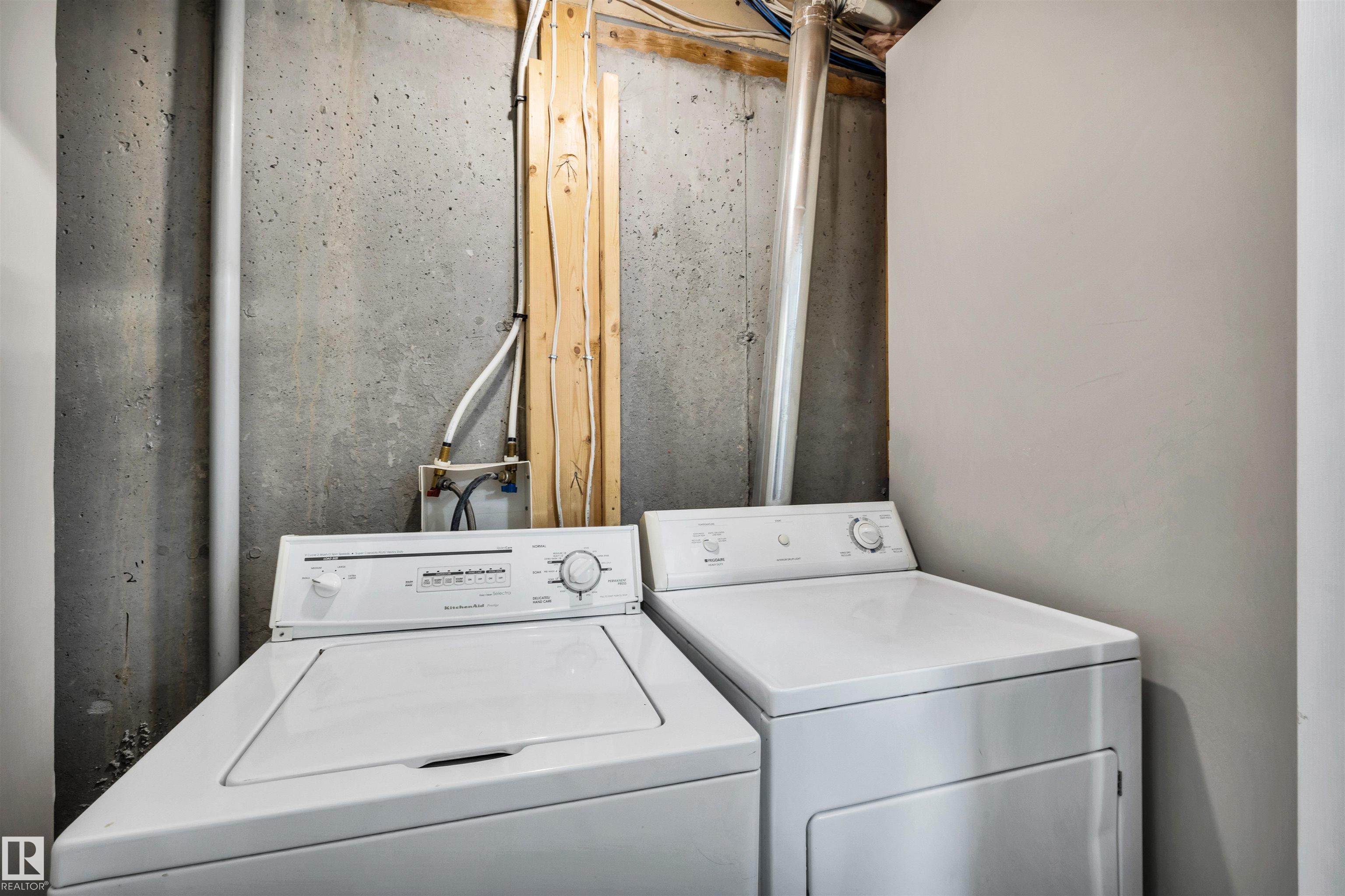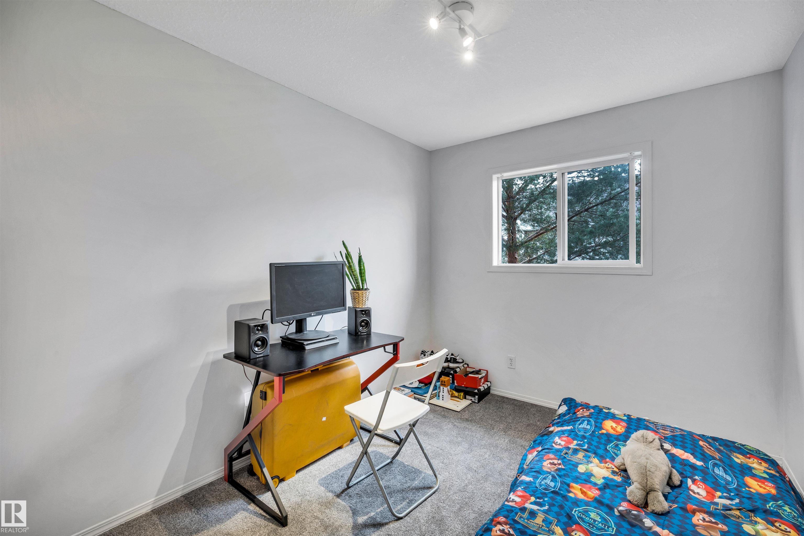 This is a perfect started home for a young family. Tucked into a quiet complex, this half duplex has an attached single garage plus extra large driveway that can hold two more vehicles. The unit has just been painted and had brand new carpeting put in on the top floor. The refrigerator, electric stove and microwave hood fan are all new as well. The main floor has the kitchen, dining and living rooms with closet, pantry and half bathroom. Upstairs (brand new carpeting remember) are a large primary bedroom with walk in closet, two more bedrooms and a full bathroom. In the basement are storage spaces, laundry closet and two professional rooms, one set up as a beauty salon, the other a soundproofed studio, which could be used as a cozy theatre room. The two rooms could be easily combined by anyone capable of removing the dividing wall. The location is just off Ellerslie Road, with fast access to shopping, schools and the Anthony Henday. A short walk takes you to the large Ellerslie Crossing Playground.