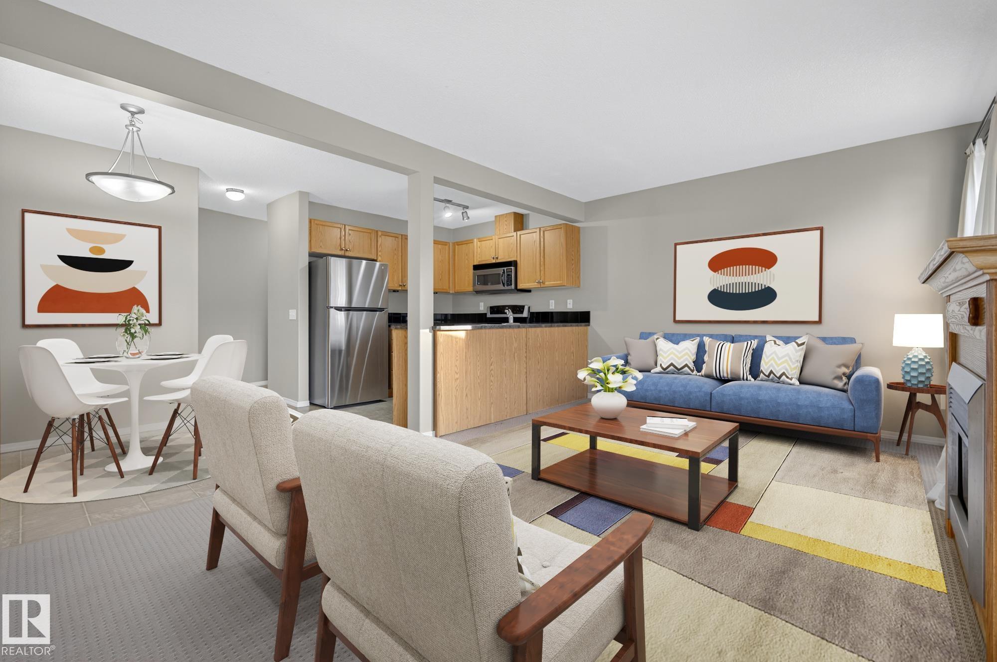 Welcome to this inviting townhome in the family-friendly community of Ellerslie! Step inside and you're greeted by a bright foyer that opens into a spacious living room anchored by a cozy fireplace, the perfect spot to unwind after a long day. The open-concept layout flows seamlessly into the dining area and kitchen, creating an ideal setup for both everyday living and entertaining guests. A convenient two-piece bath and access to the attached garage complete the main floor. Upstairs, you'll find three comfortable bedrooms, including a generous primary suite with plenty of closet space. The upper level also features a full four-piece bath and a thoughtful hall layout that keeps everything connected yet private. Outside, enjoy a low-maintenance yard, great for morning coffee or summer BBQs with extra space for kids or pets to play. Located close to schools, parks, shopping, and quick access to major routes, this home blends comfort, convenience, and value perfectly.