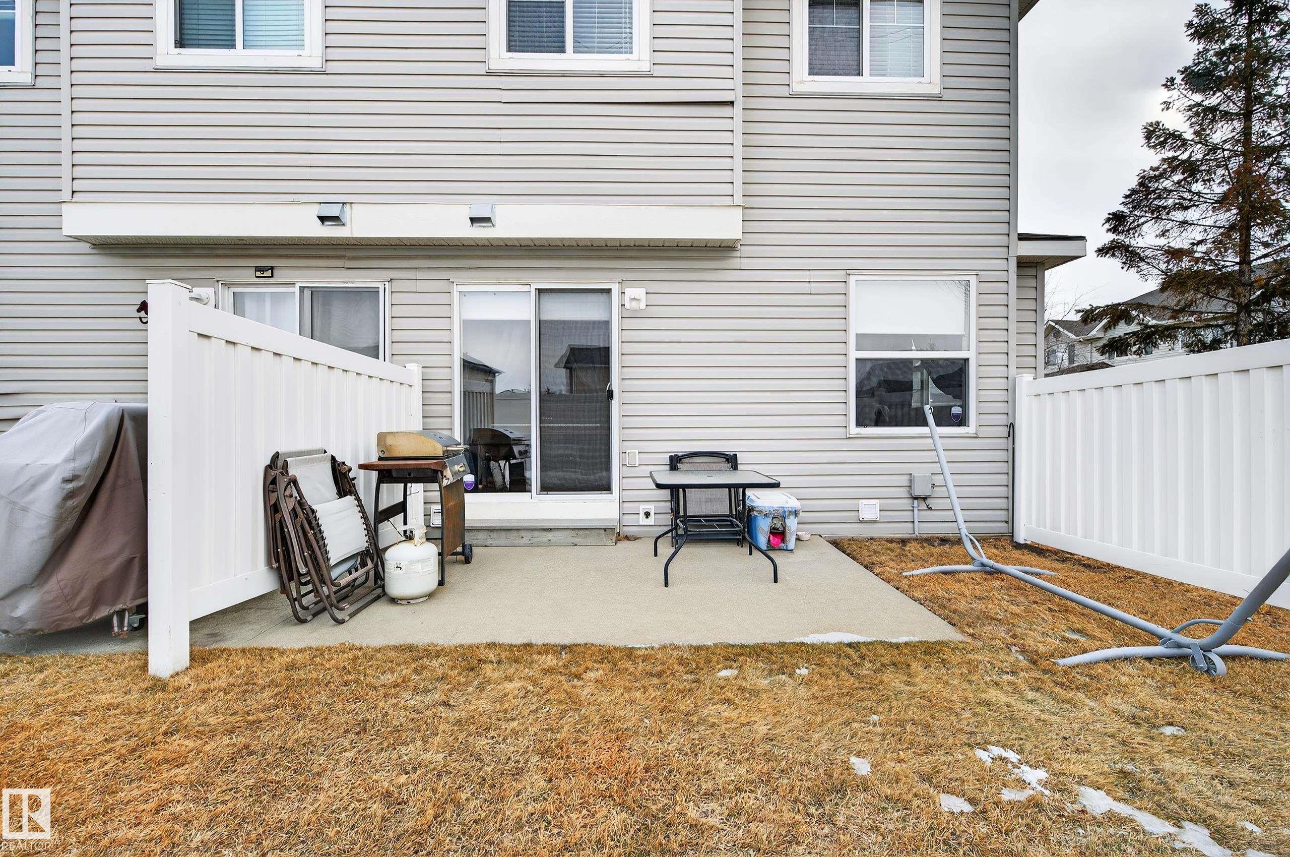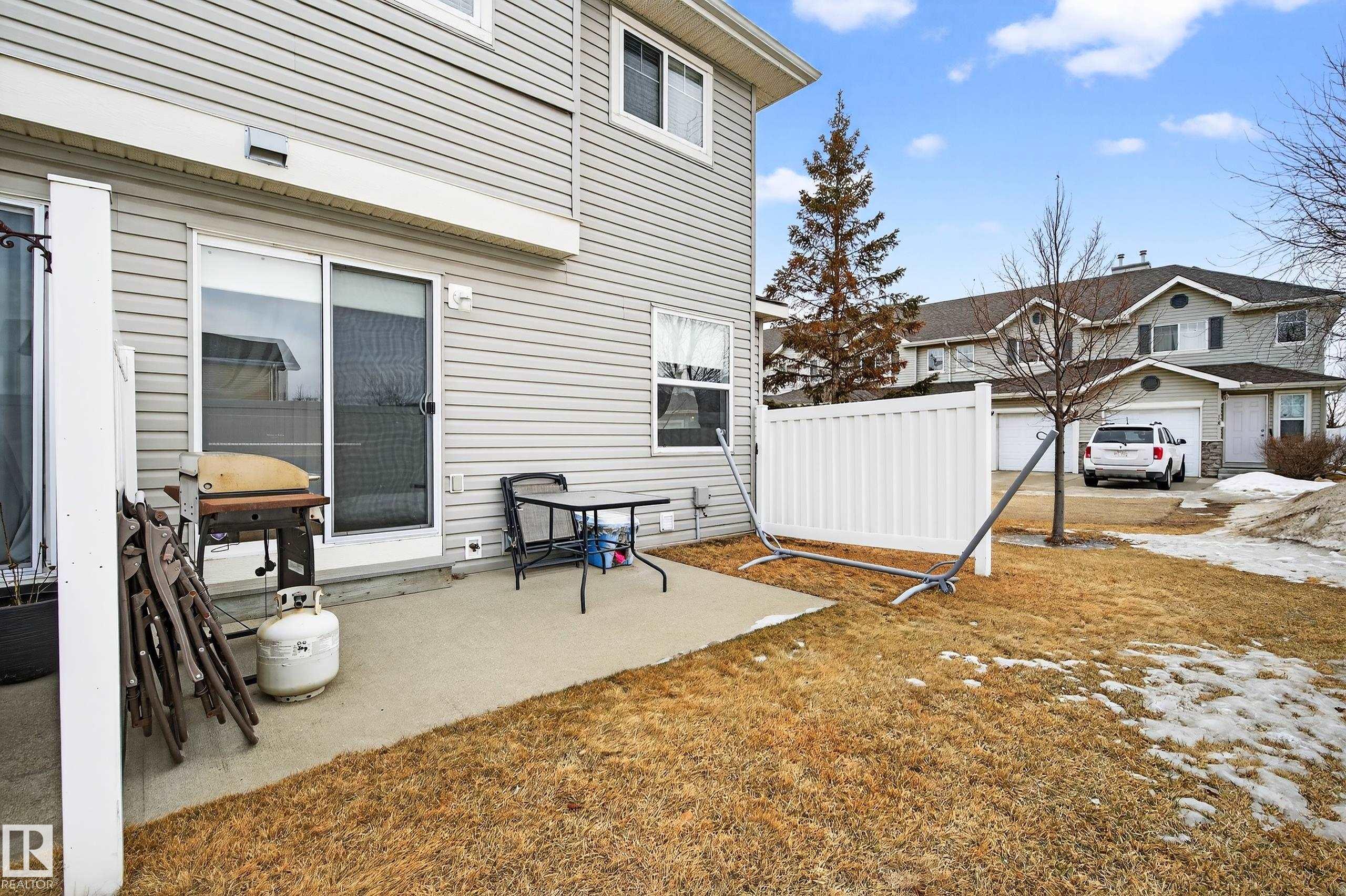 Welcome to Stonebridge! This 3 bdrm, 1.5 bath with single attached garage end unit townhouse condo, is ready for you to move in. This spacious 1200 sq ft townhouse has ample cabinets and black appliances, including a gas stove in kitchen and an eating bar, as well as a dining room. From the living room you can access the back patio through sliding glass doors. The flooring is ceramic tile and laminate flooring throughout, no carpets. There is also a 2 pce bath on main floor. The upper level has 3 bedrooms, all a good size with a walk-in closet in the primary bdrm and also has a 4 pce bathroom to complete the upper level. All levels are wired for speakers. Some areas have also been painted, including the baseboards. The basement is unspoiled and has a bathroom rough-in connection for future development potential. The garage pad is extended so that you can park 2 vehicles in the front of the garage. Close to everything - Anthony Henday, South Edmonton Common, Ellersllie and more. Great Complex!