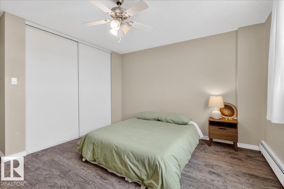 Welcome to Varscona Tower in beautiful historic Garneau! This 1 bed/1 bath 13th top floor condo has stunning panoramic views and is close to the University, public transportation, shopping, restaurants, schools, downtown, recreation/ golf, walking trails- perfect for professionals, students and those wanting an urban lifestyle and fantastic walkable location. Full of natural light, the condo features a spacious living room/ dining room, very functional galley kitchen w/ dishwasher and lots of cabinet space, large bedroom with plenty of closet storage and a nice sized 4 pc bath. Other features include a big south facing balcony, in-suite storage, laundry room on each building floor, and 1 assigned underground parking stall. Well maintained concrete building with low condo fees.