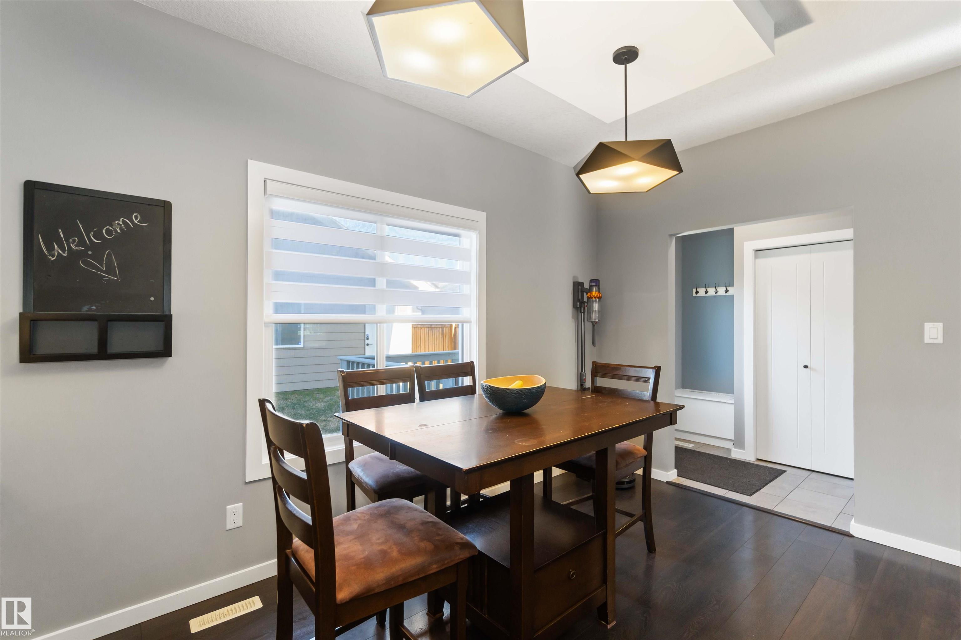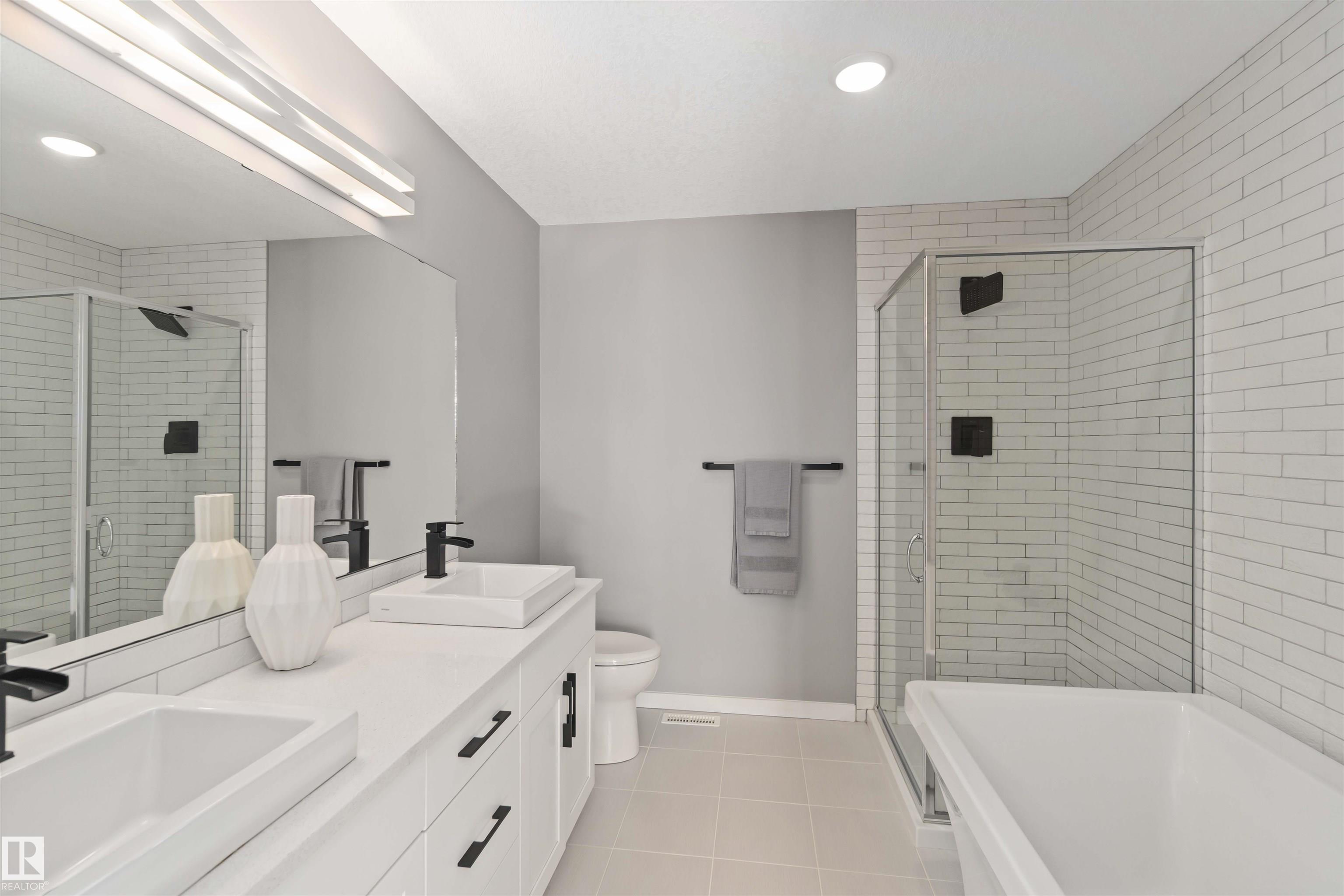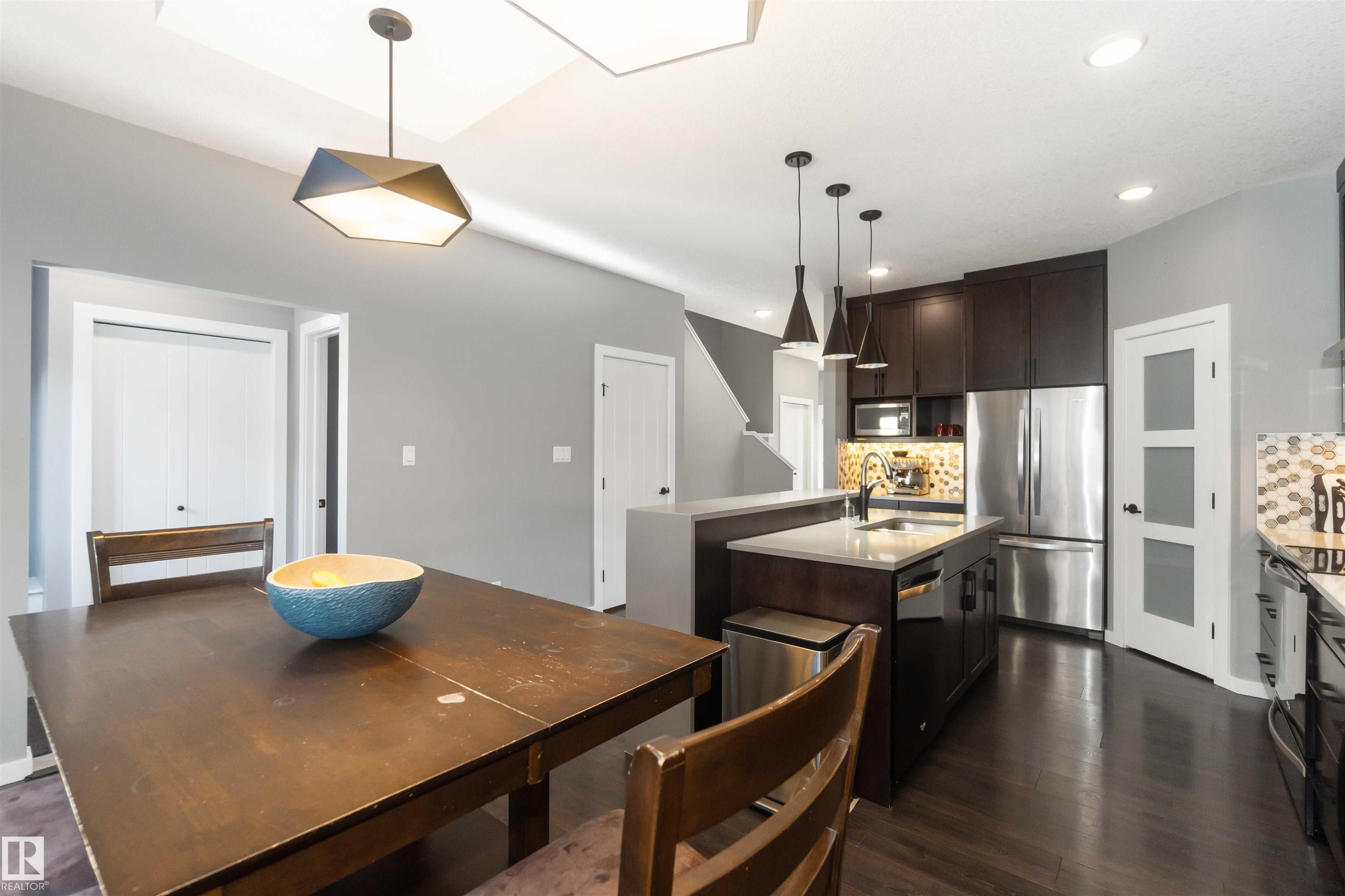 Former show home in excellent condition and will be professionally cleaned for possession. This energy efficient home includes Hardie board siding, spray foam insulation and triple pane windows. The kitchen boasts designer cabinetry with under cabinet lighting, quartz counters that extend into a desk space, wine fridge, ultra-quiet garburator, water filtration system for drinking, and soft-close cupboards and drawers. Other upgrades include tankless water heater, central AC, a beautiful stone wall feature in the living room with electric fire place, and many more. Upstairs features a large primary bedroom with 5 pc ensuite; a deep soaker tub, double vanity & tiled standing shower. 2 good-sized additional bedrooms & 4pc bath w/ matching quartz counters to finish this floor. To finish it all off, a fenced in dog-run and an oversized 22'x24' garage big enough to park an HD truck and SUV.