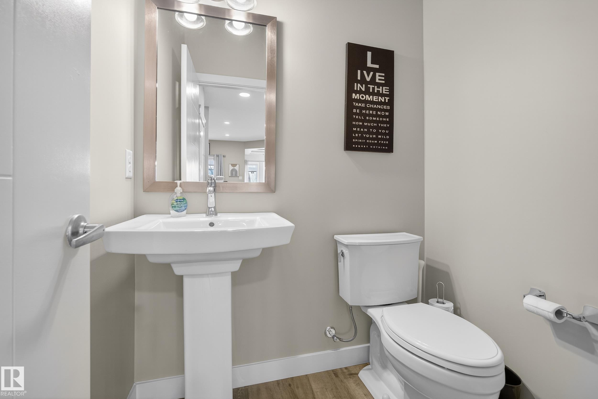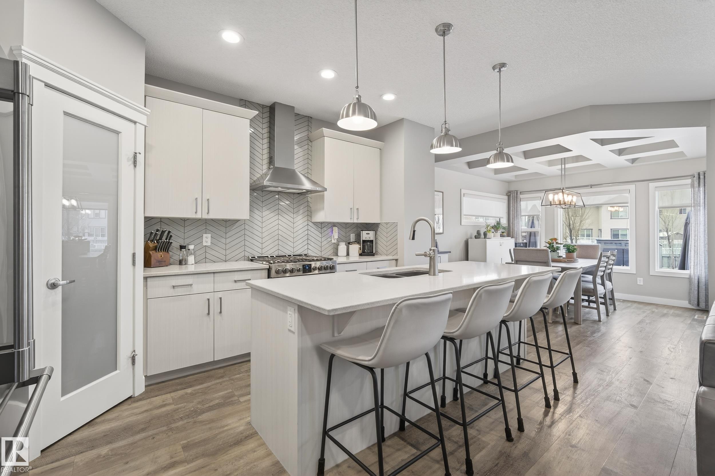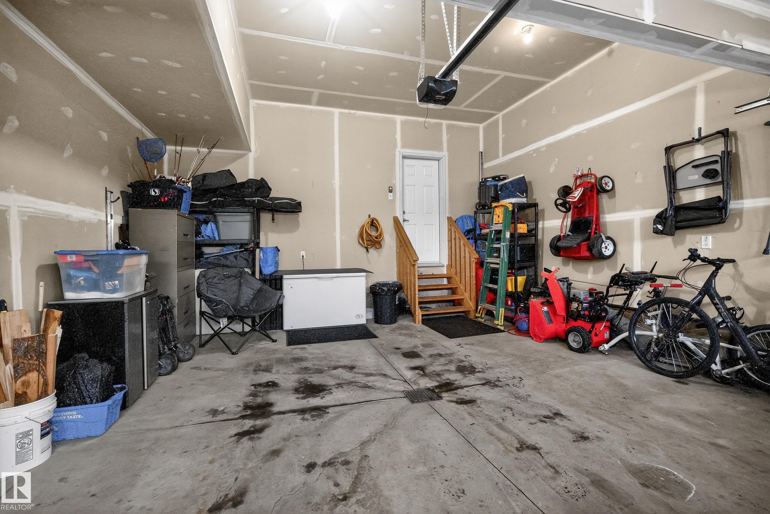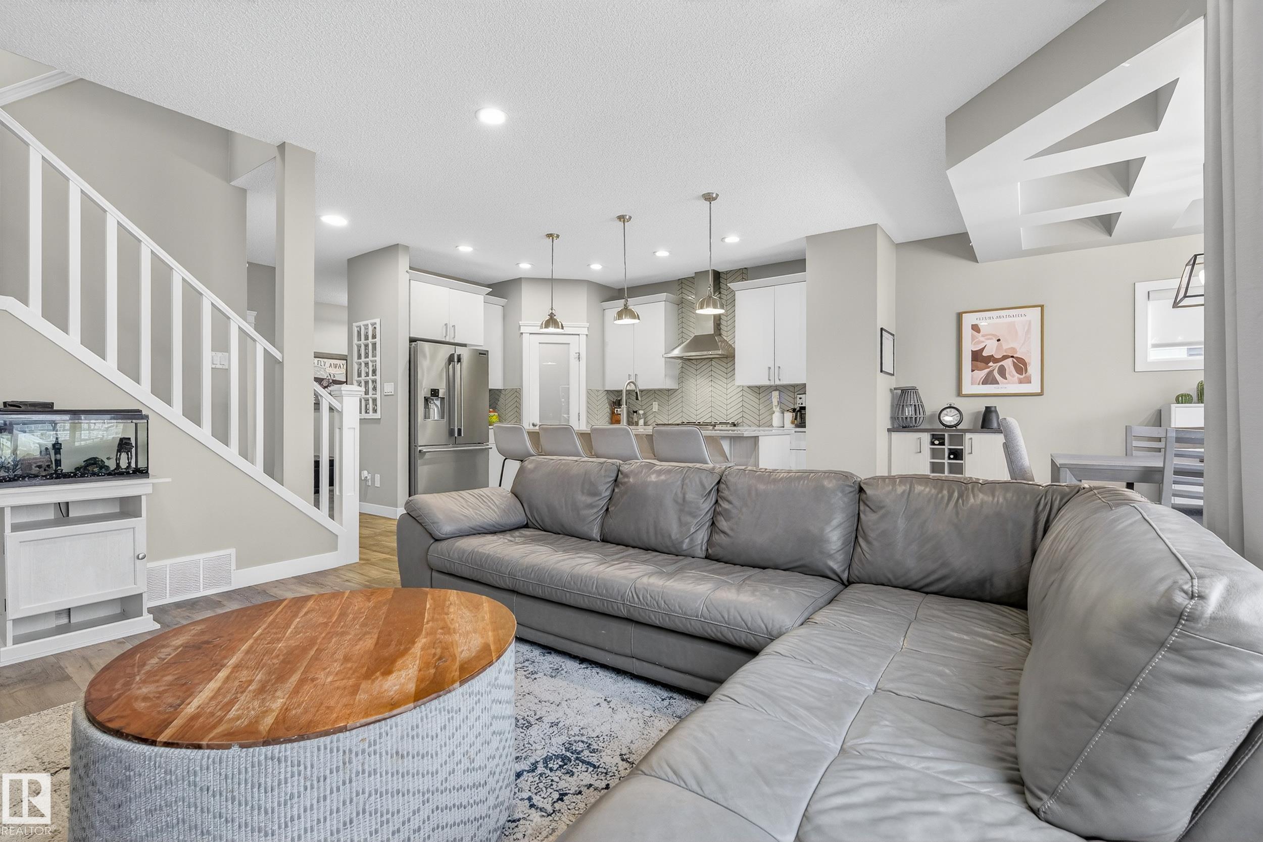 Welcome home to this property with 9-ft ceilings and upgraded flooring throughout the main level. The layout is ideal for daily living, featuring a cozy gas fireplace with mantle. The kitchen shines with quartz countertops, extended island, tile backsplash, upgraded lighting, Frigidaire gas range with stylish Faber hood fan, dishwasher, fridge, and extra dining room cabinetry. Upstairs offers 3 bedrooms plus a bonus room that can easily function as a 4th bedroom or office. The primary retreat includes a walk-in closet and a well-designed ensuite with walkthrough layout, hidden toilet, soaker tub, tiled shower, and upgraded countertop. Convenient upper-level laundry completes the floor. Enjoy the fully fenced backyard with stained deck, privacy walls, garden bed, new shed, and kids' playset. Energy-efficient features include high-efficiency furnace, HRV, Ecobee thermostat, central A/C, and excellent insulation. The garage includes hot/cold taps, floor drain and fridge water line. Truly move in ready!