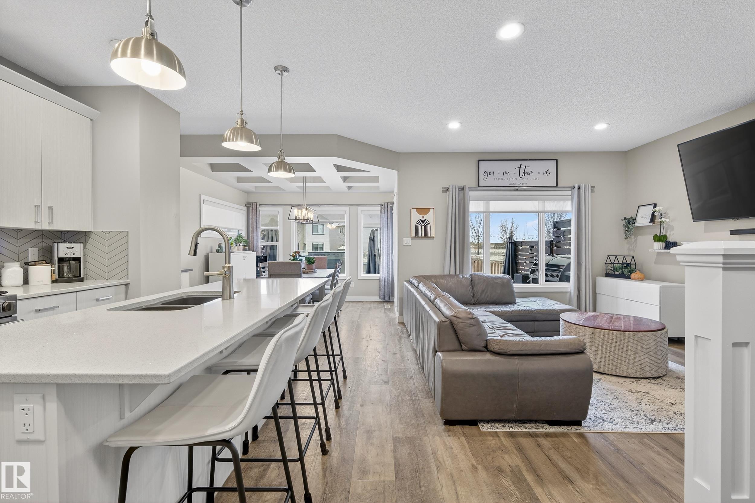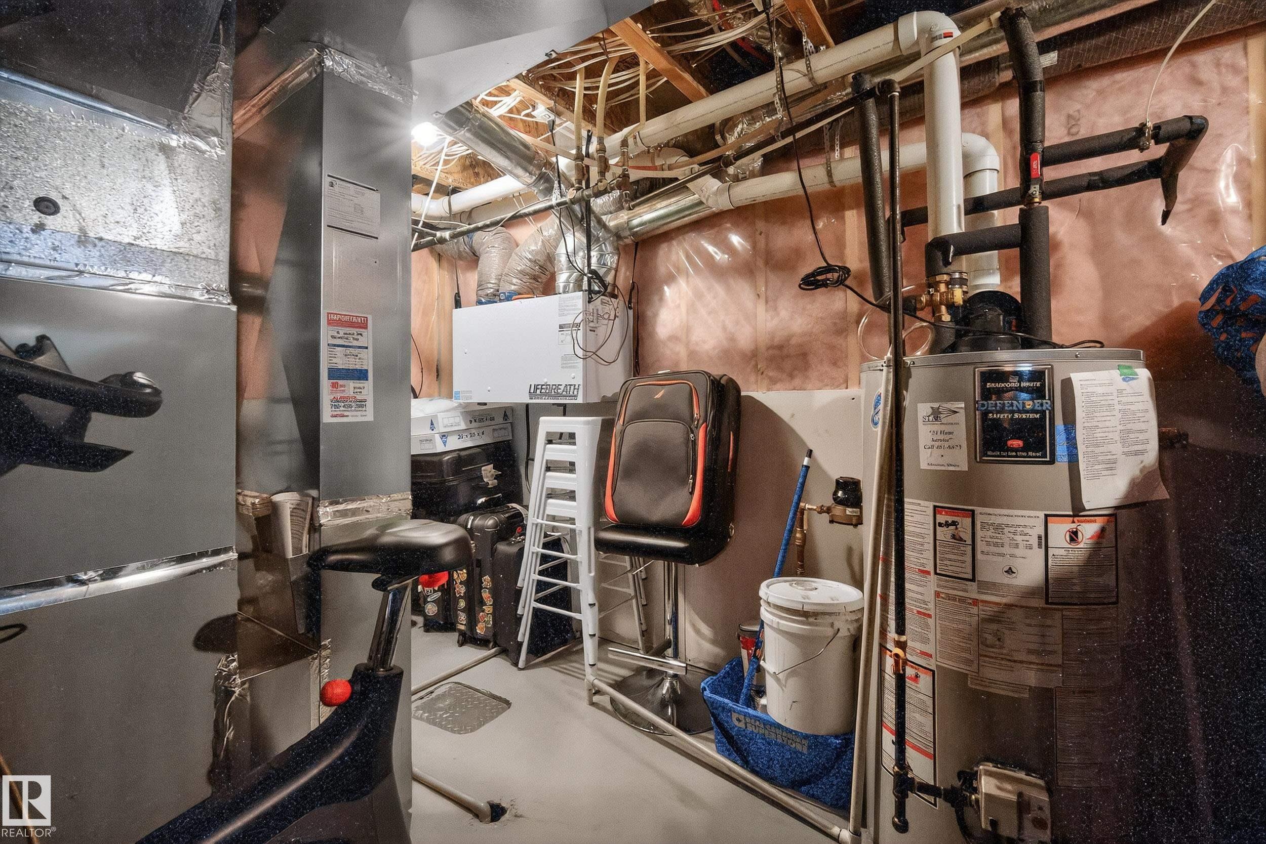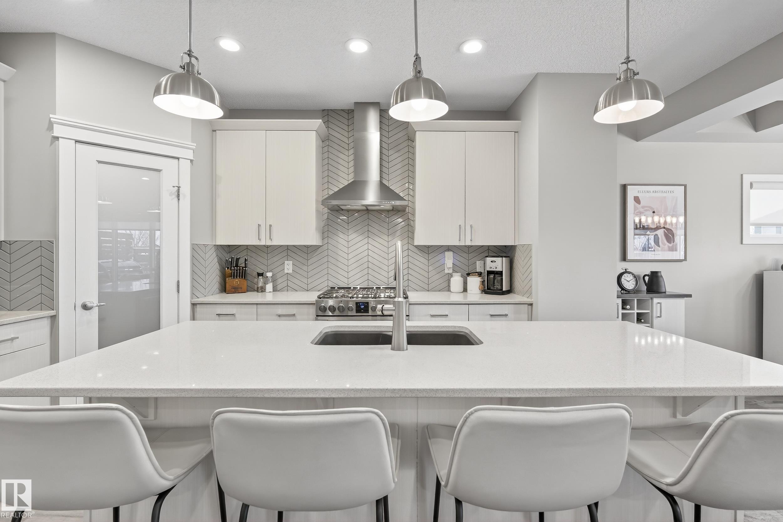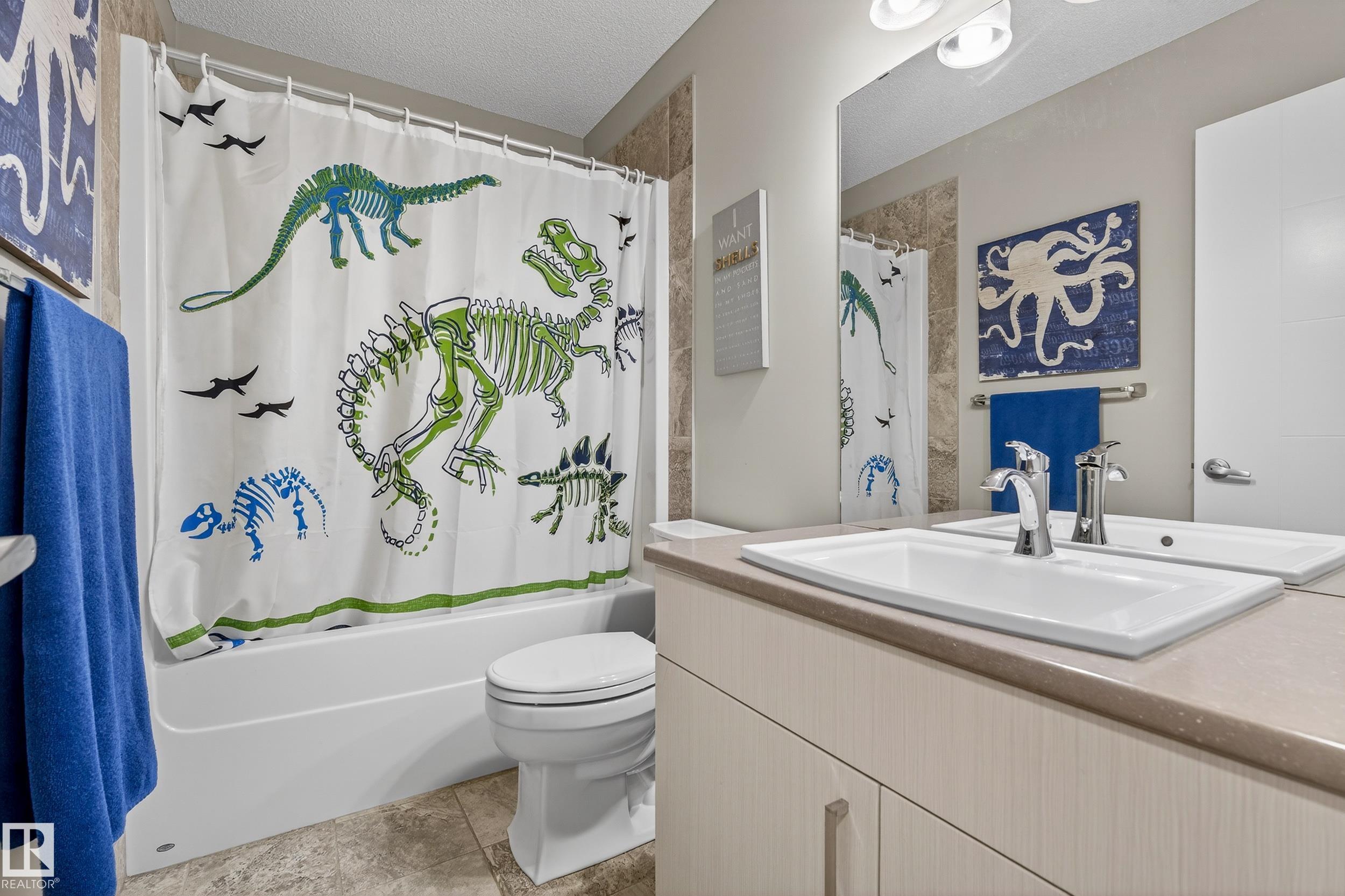 Welcome home to this property with 9-ft ceilings and upgraded flooring throughout the main level. The layout is ideal for daily living, featuring a cozy gas fireplace with mantle. The kitchen shines with quartz countertops, extended island, tile backsplash, upgraded lighting, Frigidaire gas range with stylish Faber hood fan, dishwasher, fridge, and extra dining room cabinetry. Upstairs offers 3 bedrooms plus a bonus room that can easily function as a 4th bedroom or office. The primary retreat includes a walk-in closet and a well-designed ensuite with walkthrough layout, hidden toilet, soaker tub, tiled shower, and upgraded countertop. Convenient upper-level laundry completes the floor. Enjoy the fully fenced backyard with stained deck, privacy walls, garden bed, new shed, and kids' playset. Energy-efficient features include high-efficiency furnace, HRV, Ecobee thermostat, central A/C, and excellent insulation. The garage includes hot/cold taps, floor drain and fridge water line. Truly move in ready!