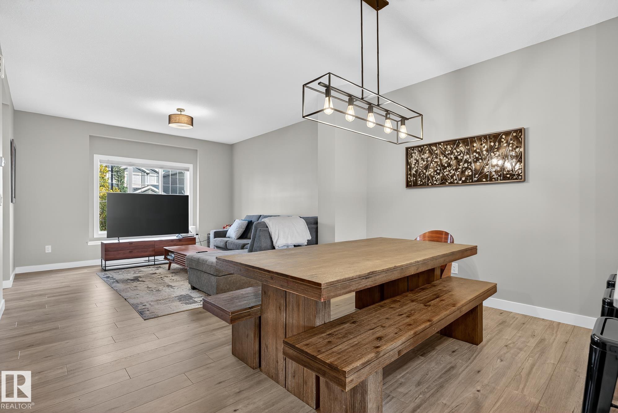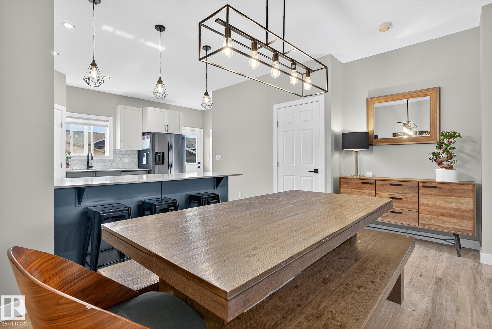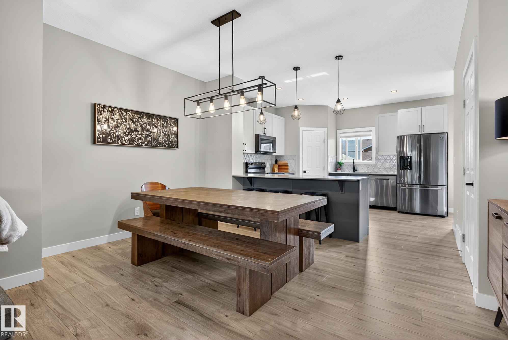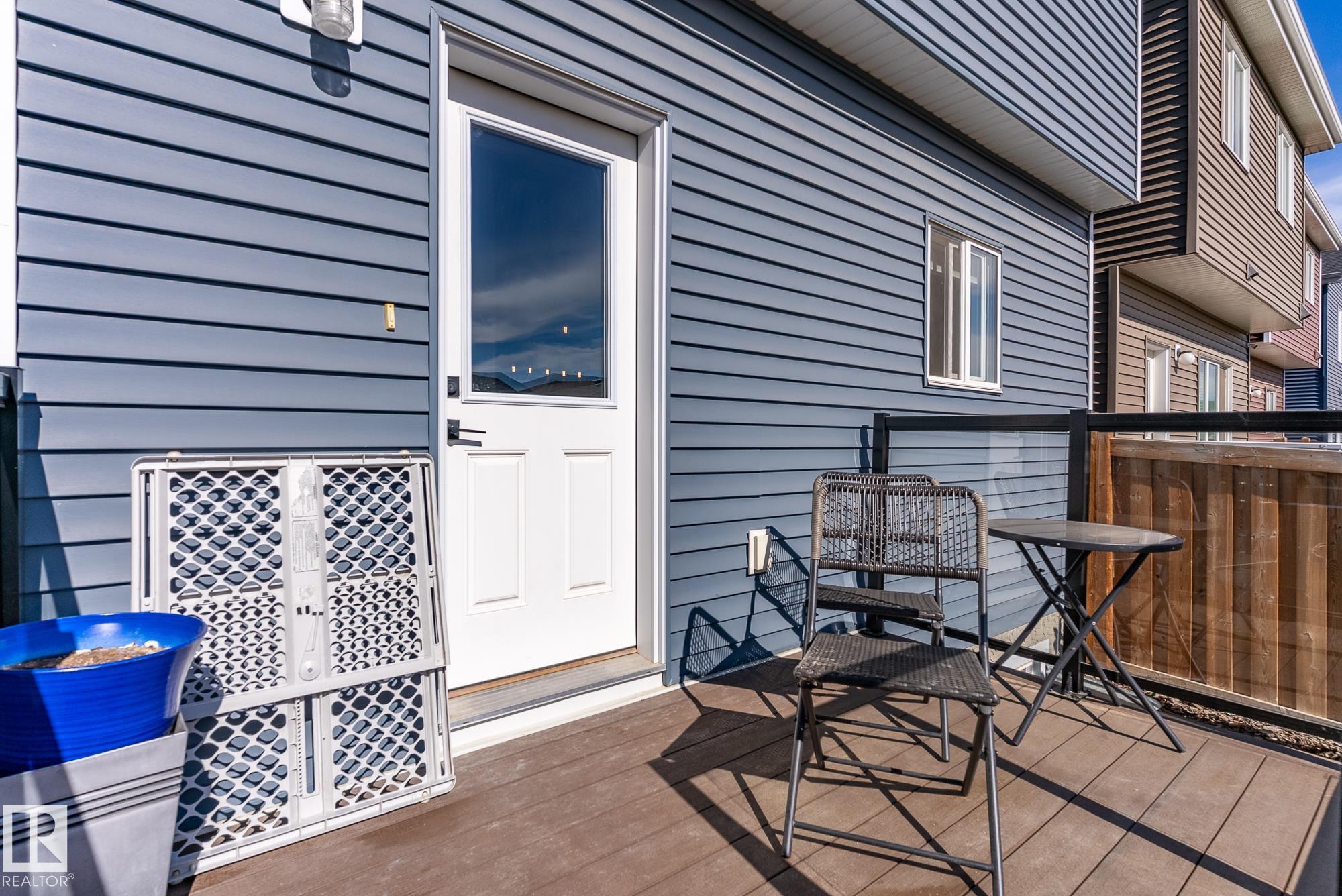 Welcome to this beautifully upgraded 2-storey in Saxony Glen! Featuring 3+1 bedrooms, 4 baths, side entrance, and a fully finished basement, this home offers thoughtful design, comfort, and income potential. Built with an extra foot added to both the main and upper floors, the layout feels spacious and airy with 9-ft ceilings on both the main level and basement. The modern kitchen showcases black SS appliances, quartz countertops, and custom tile details. Throughout the home you'll find vinyl plank and ceramic tile flooring, knock-down ceilings, and dimmer lighting for an elevated touch. The $36K professionally finished basement adds a 4th bedroom, full bath, and a generous recreation area--perfect for guests, teens, or extended family. Outside, enjoy $17K in professional landscaping including paving-stone walkways, firepit, perennials, shrubs, and a fully fenced yard. The double detached garage is already insulated and drywalled, and the home is equipped with central A/C. Your new home is waiting for you!