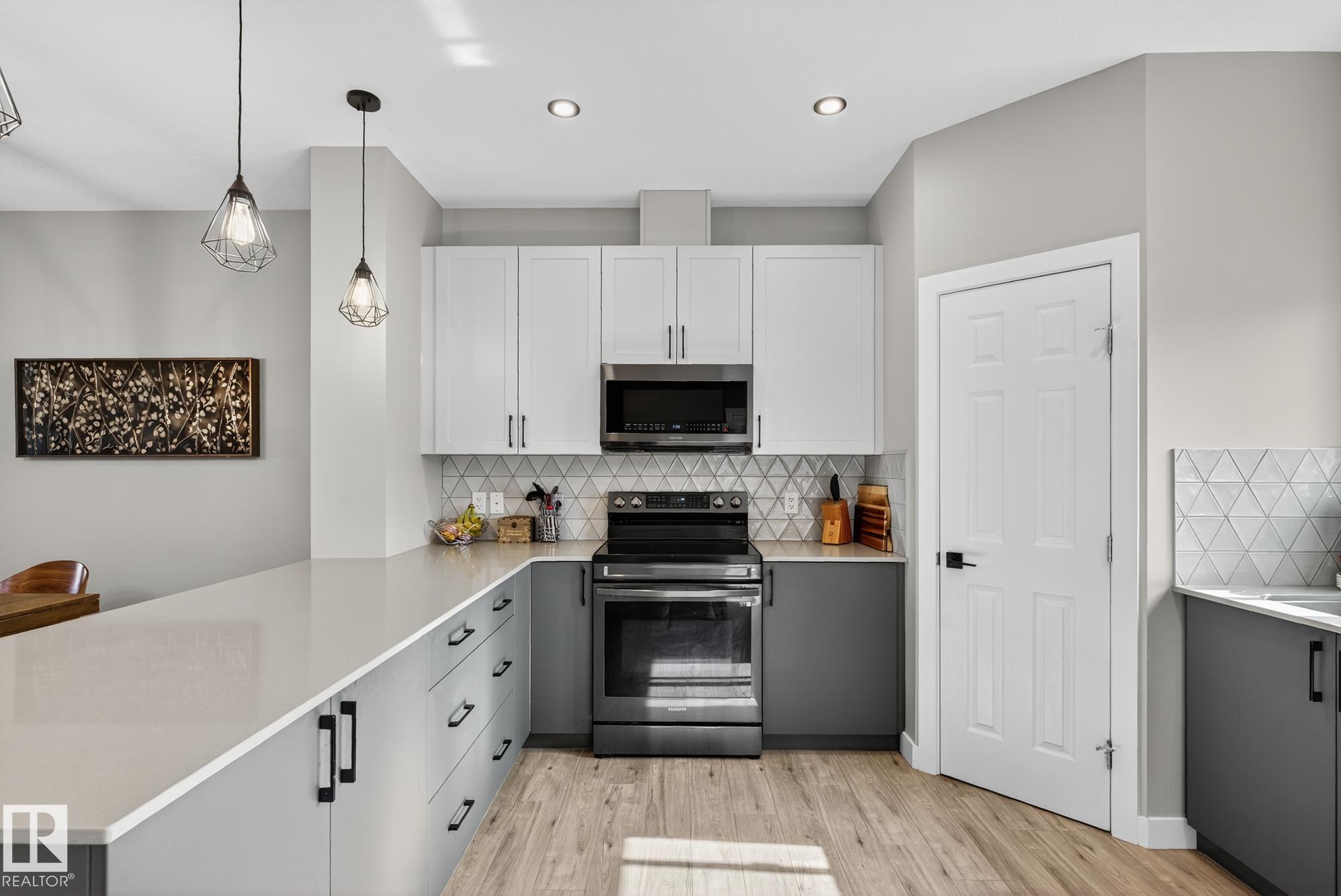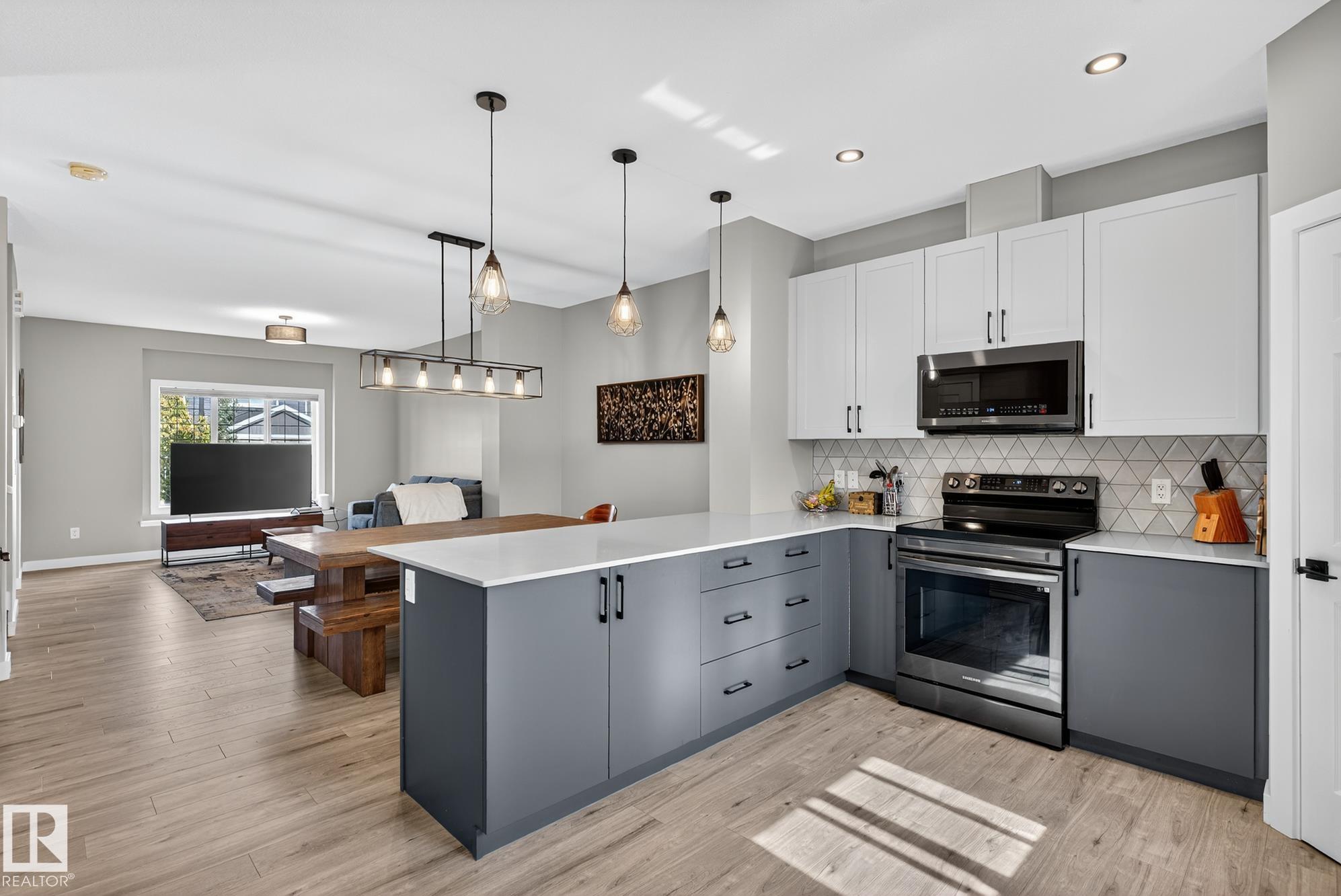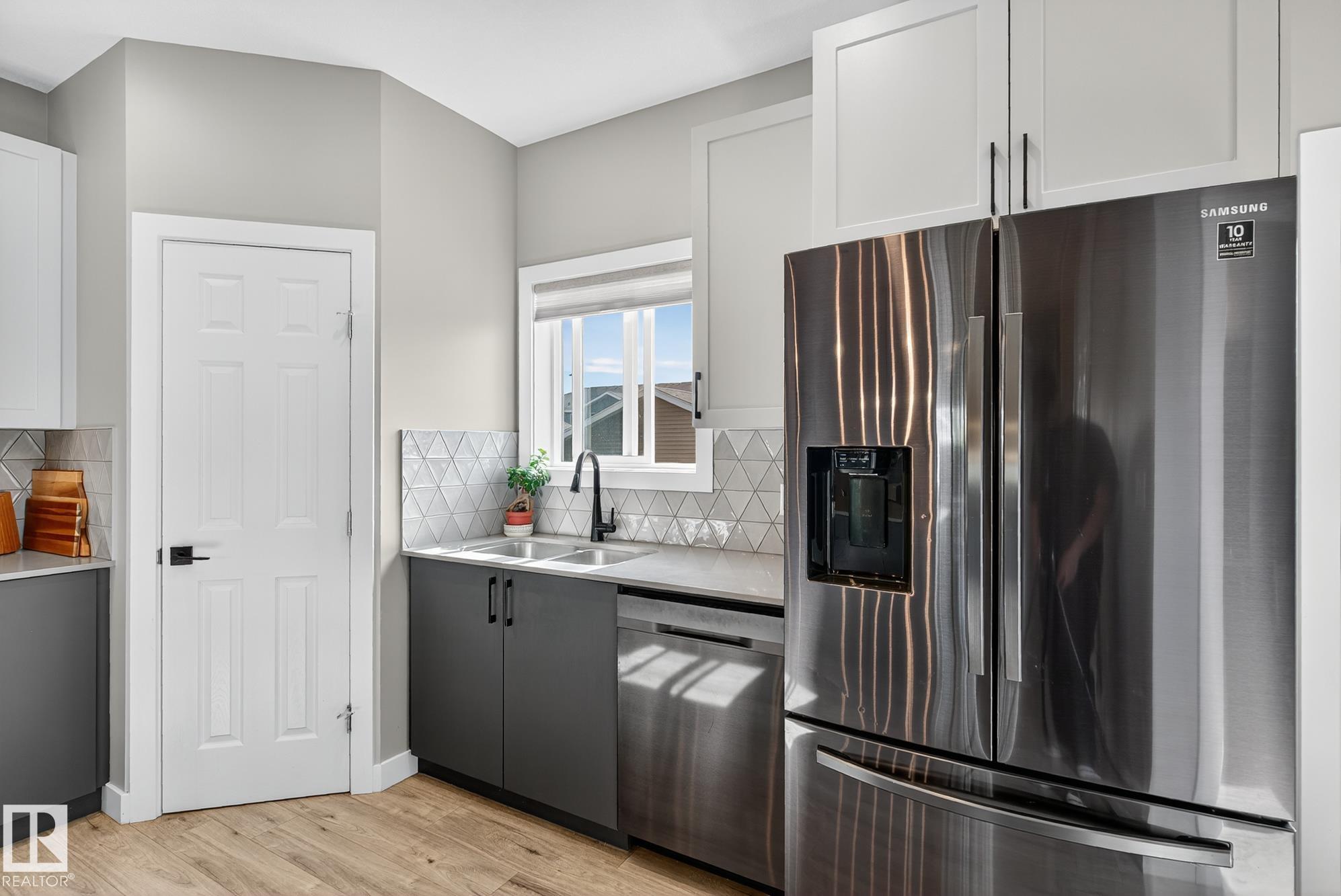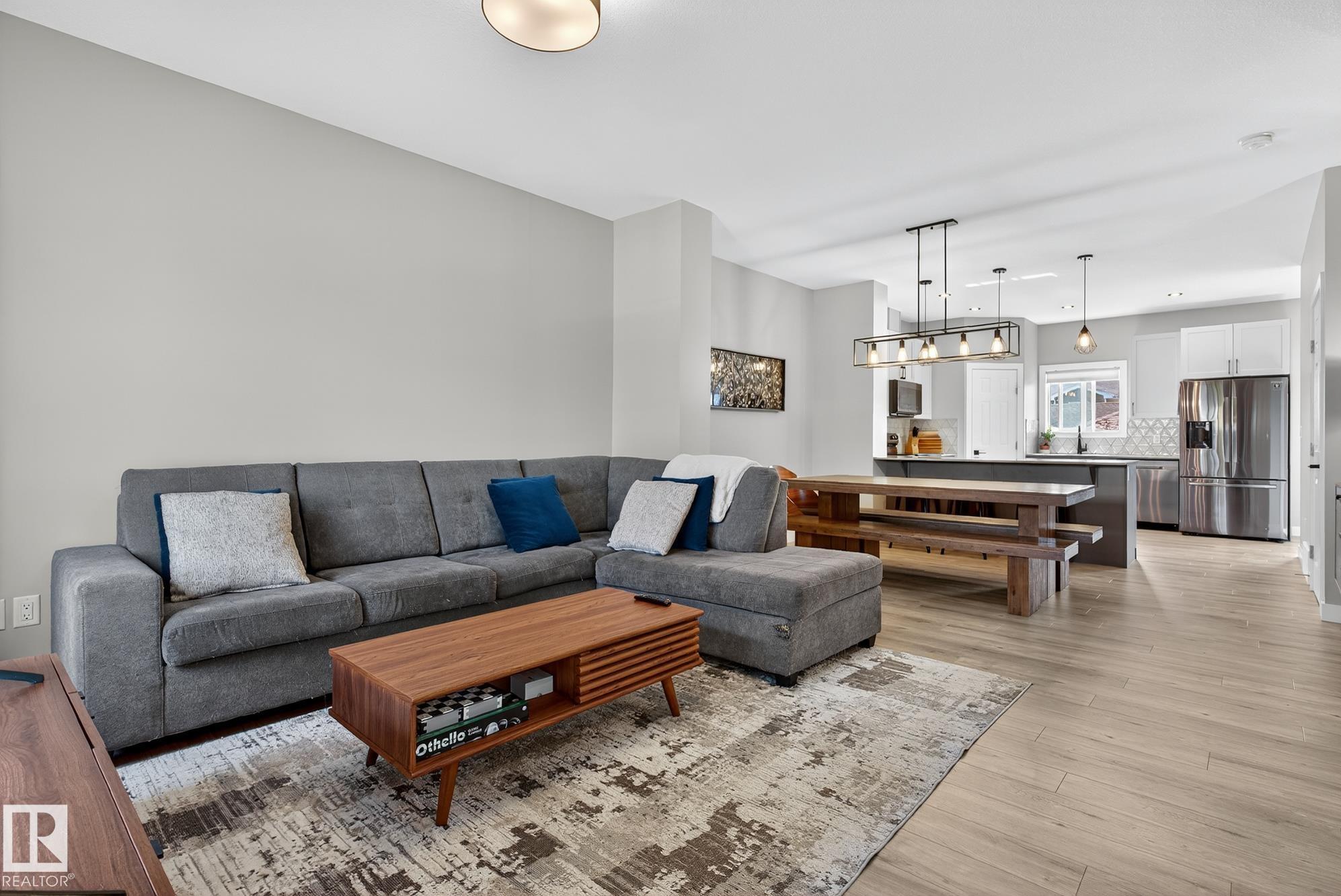 Welcome to this beautifully upgraded 2-storey in Saxony Glen! Featuring 3+1 bedrooms, 4 baths, side entrance, and a fully finished basement, this home offers thoughtful design, comfort, and income potential. Built with an extra foot added to both the main and upper floors, the layout feels spacious and airy with 9-ft ceilings on both the main level and basement. The modern kitchen showcases black SS appliances, quartz countertops, and custom tile details. Throughout the home you'll find vinyl plank and ceramic tile flooring, knock-down ceilings, and dimmer lighting for an elevated touch. The $36K professionally finished basement adds a 4th bedroom, full bath, and a generous recreation area--perfect for guests, teens, or extended family. Outside, enjoy $17K in professional landscaping including paving-stone walkways, firepit, perennials, shrubs, and a fully fenced yard. The double detached garage is already insulated and drywalled, and the home is equipped with central A/C. Your new home is waiting for you!