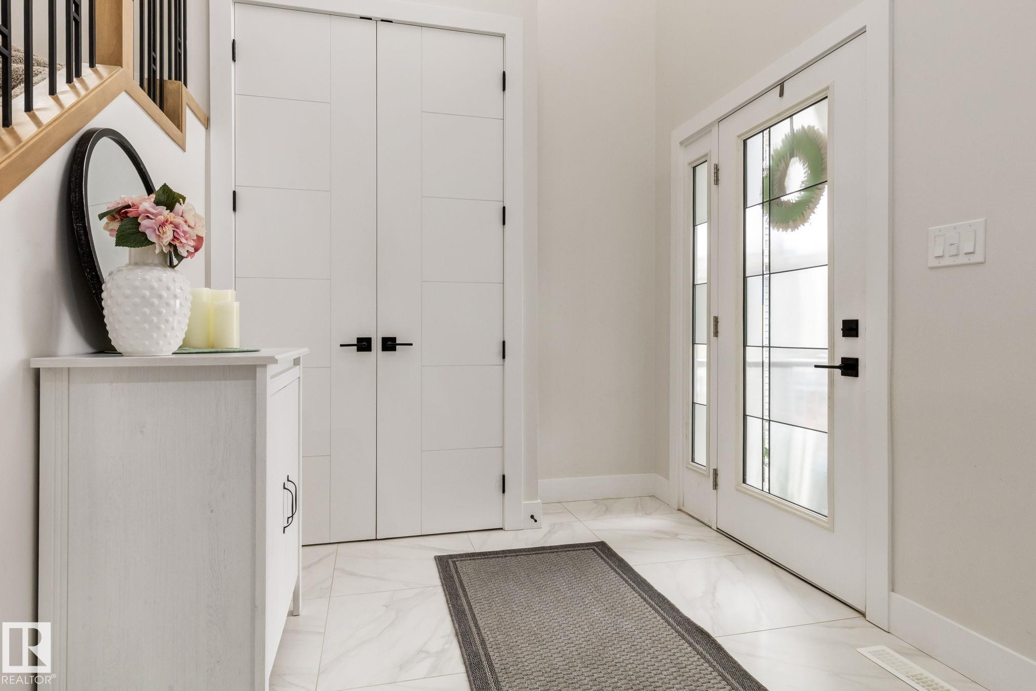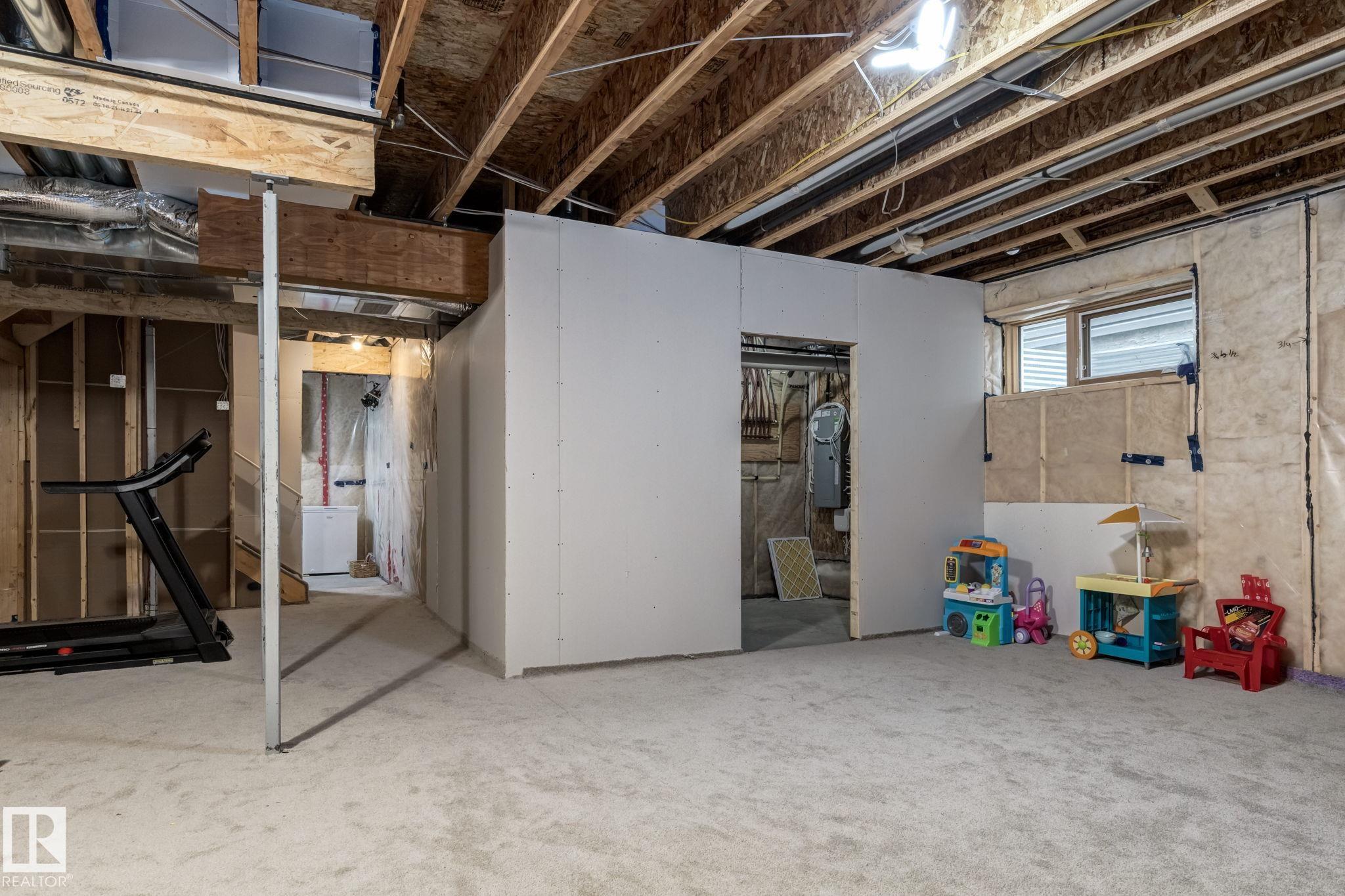 Welcome to this 2,200 sq ft 2-storey home in the new community of Ridgecrest! Meticulously maintained and showing like new, this home boasts an open-to-above foyer, main floor den, bright white kitchen with a walk-in pantry, and a living room with a striking stone feature wall and electric fireplace. Off the dining area, step out to a spacious deck overlooking your fully fenced, landscaped, south-facing backyard. Upstairs you'll find laundry, 3 bedrooms--including a generous primary suite with 5-piece ensuite and walk-in closet. Two additional bedrooms are well-sized with closets featuring MDF organizers. The basement is unfinished, ready for your personal touch. The oversized double attached garage includes a tandem bay--ideal for a workshop, sports gear, or extra storage. Ridgecrest offers ravine walking trails, nearby shopping, and public transportation just minutes away!