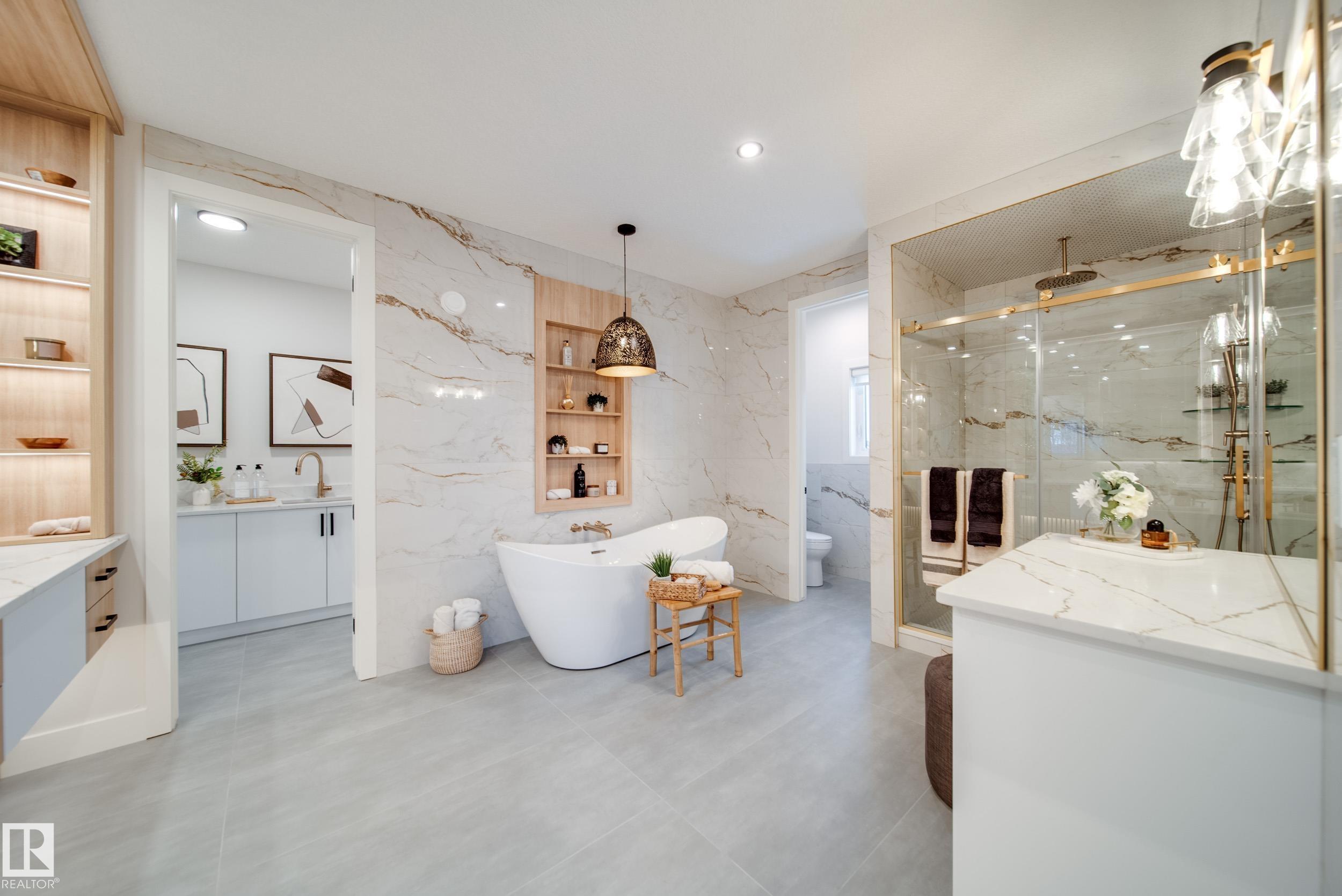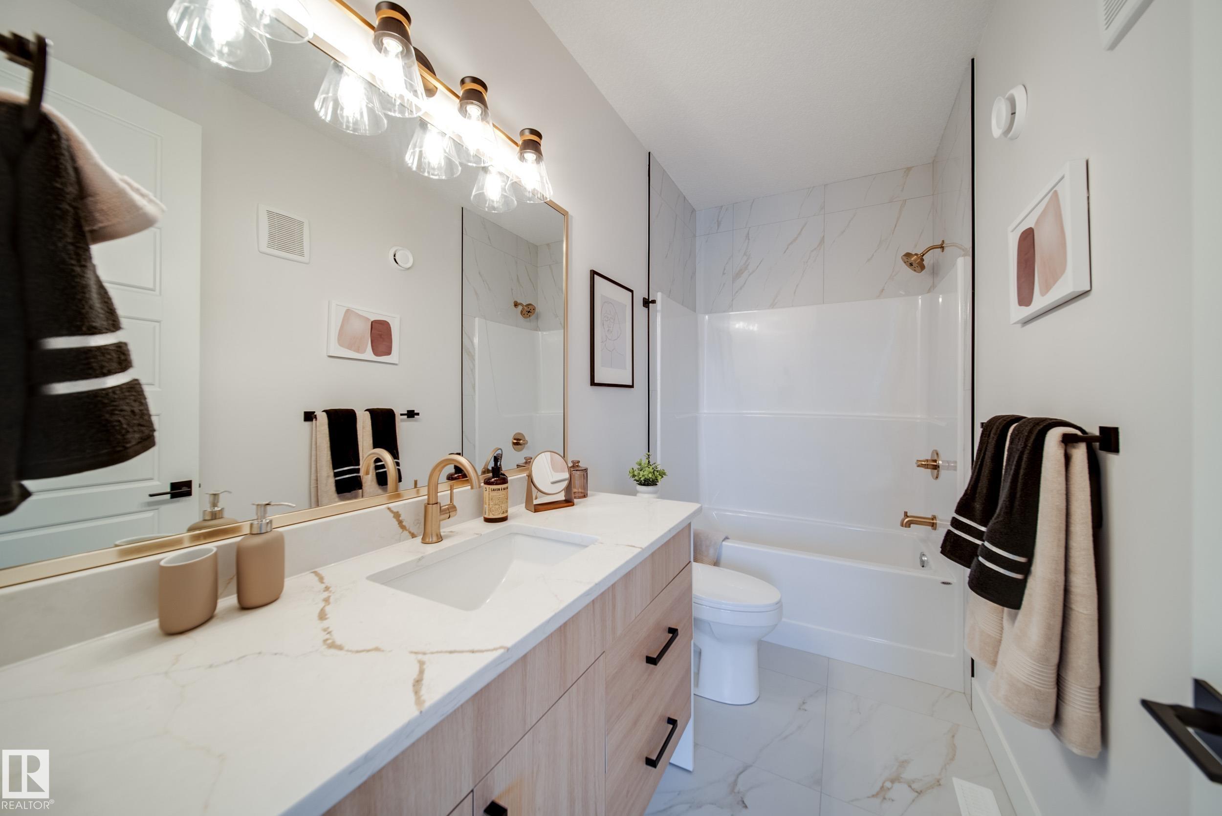 **SOUTH EDMONTON** BIG PIE SHAPE LOT**SPICE KITCHEN**REGULAR LOT**Masterfully blends classic Craftsman charm with modern living. The elegant exterior boasts a captivating mix of stone and cedar composite siding, a glazed entrance door, and a welcoming pre-cast concrete stoop, creating incredible curb appeal. Step inside to a thoughtfully designed layout featuring 1,161 sq.ft. on the main level and 1,114 sq.ft. upstairs. The second floor is a private retreat, hosting a spacious master suite with a walk-in closet and ensuite, two additional bedrooms, a versatile bonus room, and a convenient laundry area. Highlights include a relaxing soaker tub, an electric fireplace, and ample storage throughout. Built with both style and safety as a priority, this move-in-ready home is perfect for entertaining and comfortable family life. It's a perfect blend of elegance, function, and modern convenience. Your dream home awaits!**PHOTOS ARE REPRESENTATIVE**