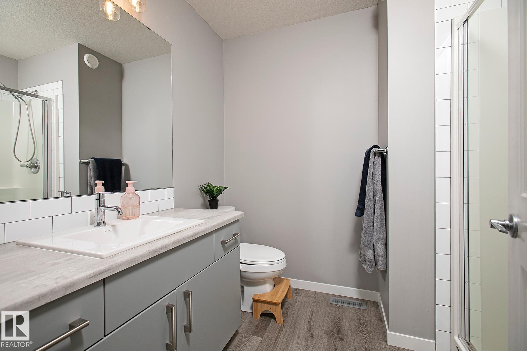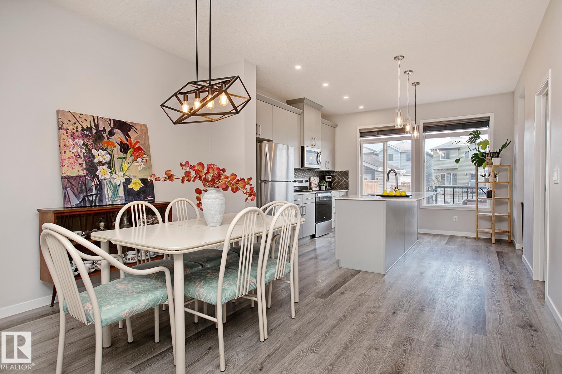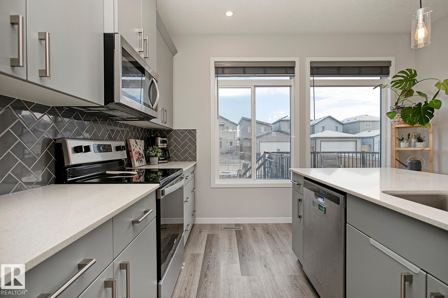 A lovely, Morrison built 2 Storey in Glenridding Ravine. GREAT curb appeal w/ darker grey siding & charcoal faux STONE. The COVERED ENTRY is spacious, & can double as a VERANDA for morning coffee. Once inside, the LUXURY vinyl plank flooring compliments the OPEN living room w/ an electric FIREPLACE & large PICTURE WINDOW letting in loads of NATURAL LIGHT. Eat in the dining room w/ a MODERN fixture & direct access to the kitchen; perfect for entertaining. Cook in the ISLAND KITCHEN w/ QUARTZ counters, STAINLESS appliances, HERRING BONE tiled back splash, soft close doors & a sizeable WALK-IN PANTRY for your dry goods. A 2 piece bath is great for guests. Upper floor is FAMILY FRIENDLY w/ 3 bedrooms including a Primary w/ WALK-IN CLOSET & a 3 piece ENSUITE to RELAX in at days end. A full 4 piece bath in the hallway services the other 2 bedrooms. A separate LAUNDRY ROOM w/ shelving is also found upstairs for your convenience. The basement is unfinished & awaiting your finishing touch. See it you'll LOVE it!