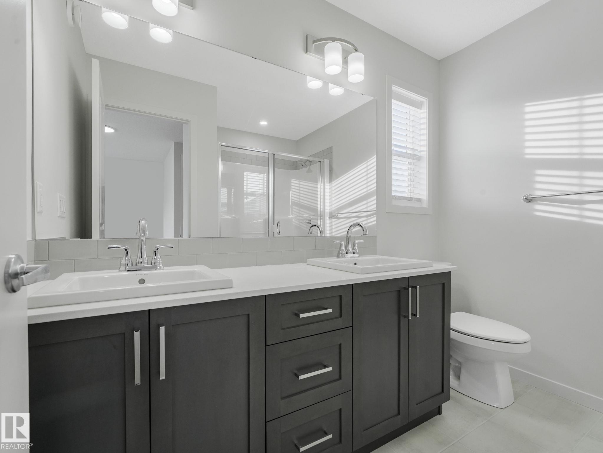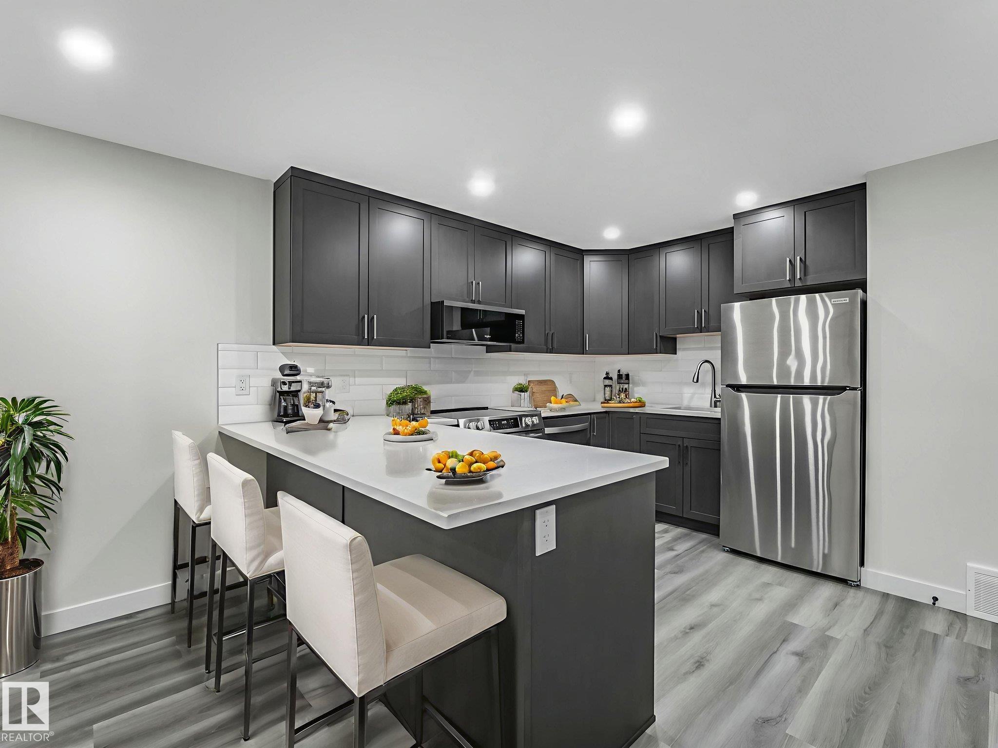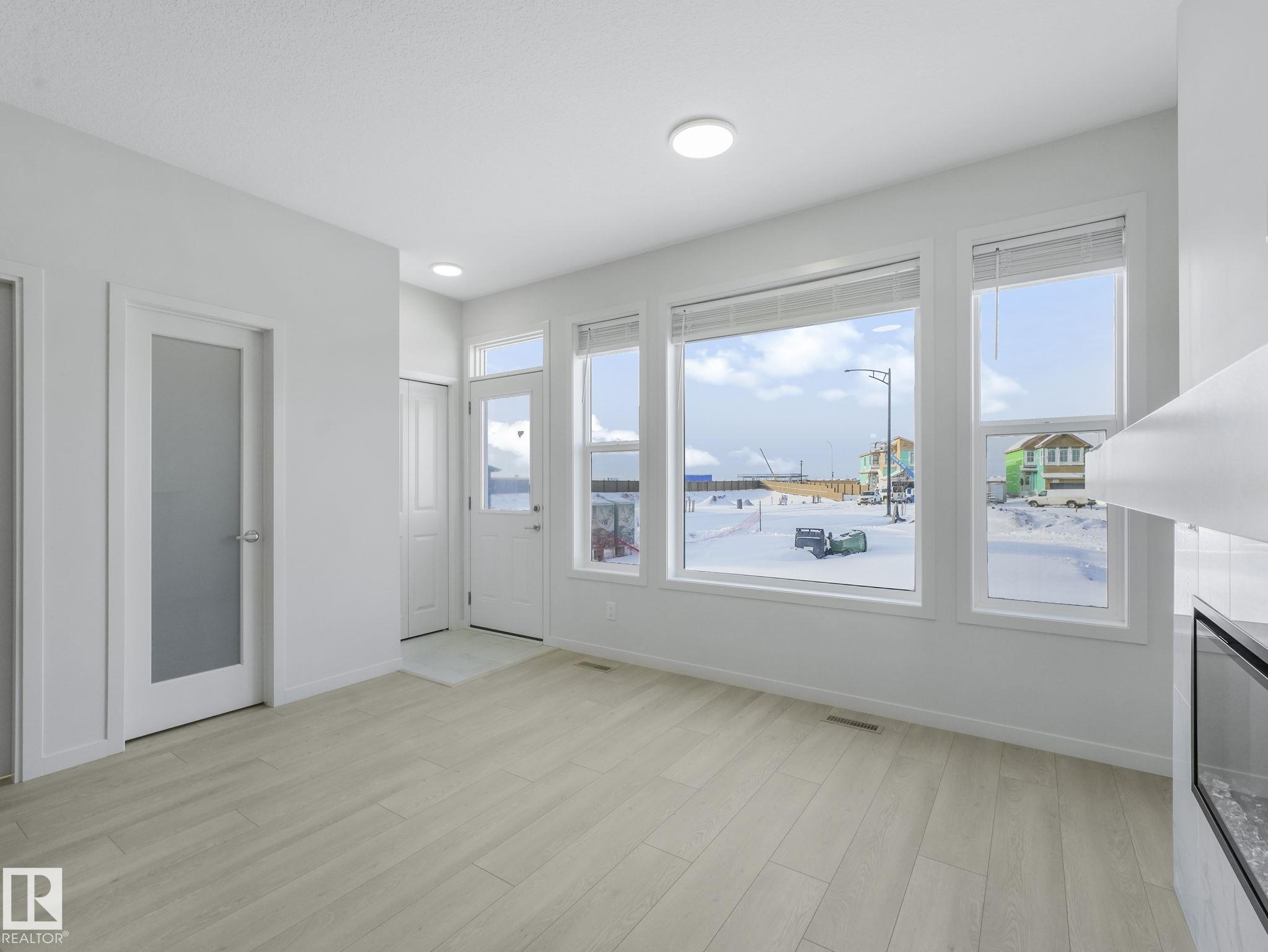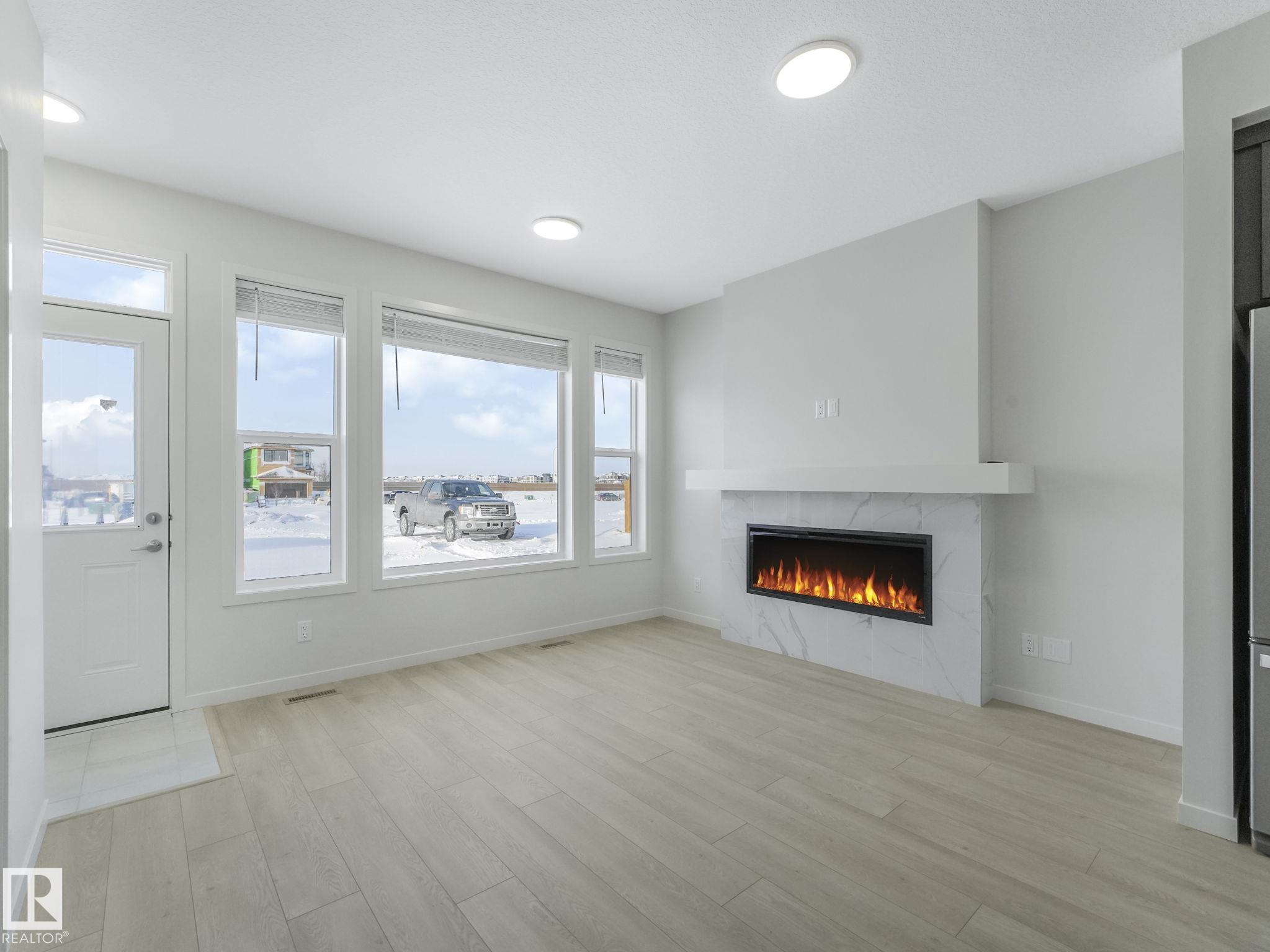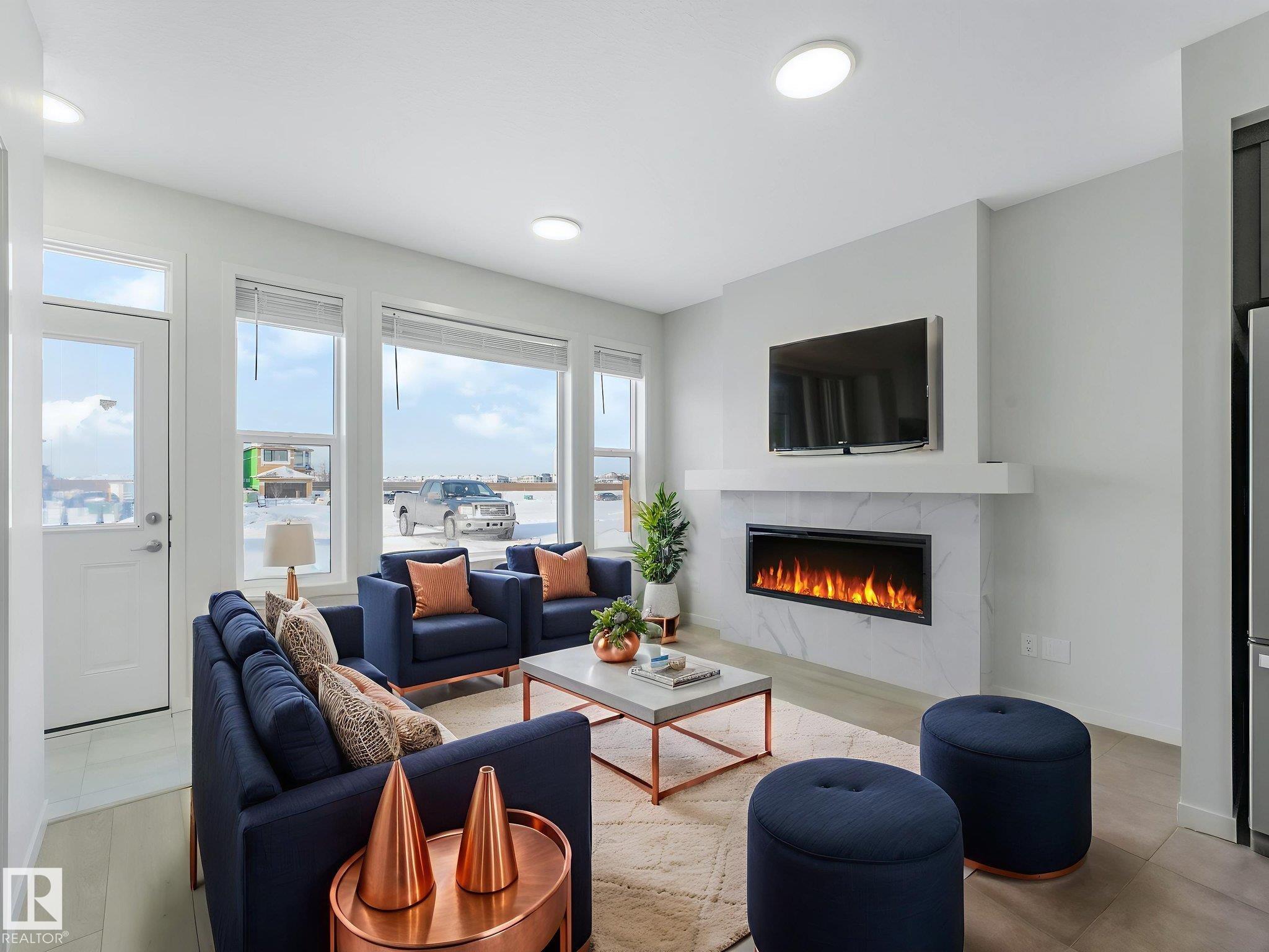 Welcome to this brand-new, never-lived-in home offering thoughtful design and modern finishes throughout. Situated on a prime corner lot, this home offers enhanced privacy, abundant natural light, and a sense of openness--perfect for relaxing, entertaining, or creating your backyard retreat. The upper level features three bedrooms, a flex room, a 4-piece main bath, and top-floor laundry. The primary bedroom includes a walk-in closet and a 4-piece ensuite with dual sinks and a stand-up shower. The main floor showcases modern colors, an island with quartz countertops, stainless steel appliances, and a cozy living room with an electric fireplace. A half bath and a versatile den complete this level. The legal basement suite offers excellent income potential and features a high-end kitchen with peninsula island and eat-in bar, stainless steel appliances, a spacious living room, a finished bathroom with quartz countertops, and separate laundry. Completing the property is a concrete pad ready for a future double.