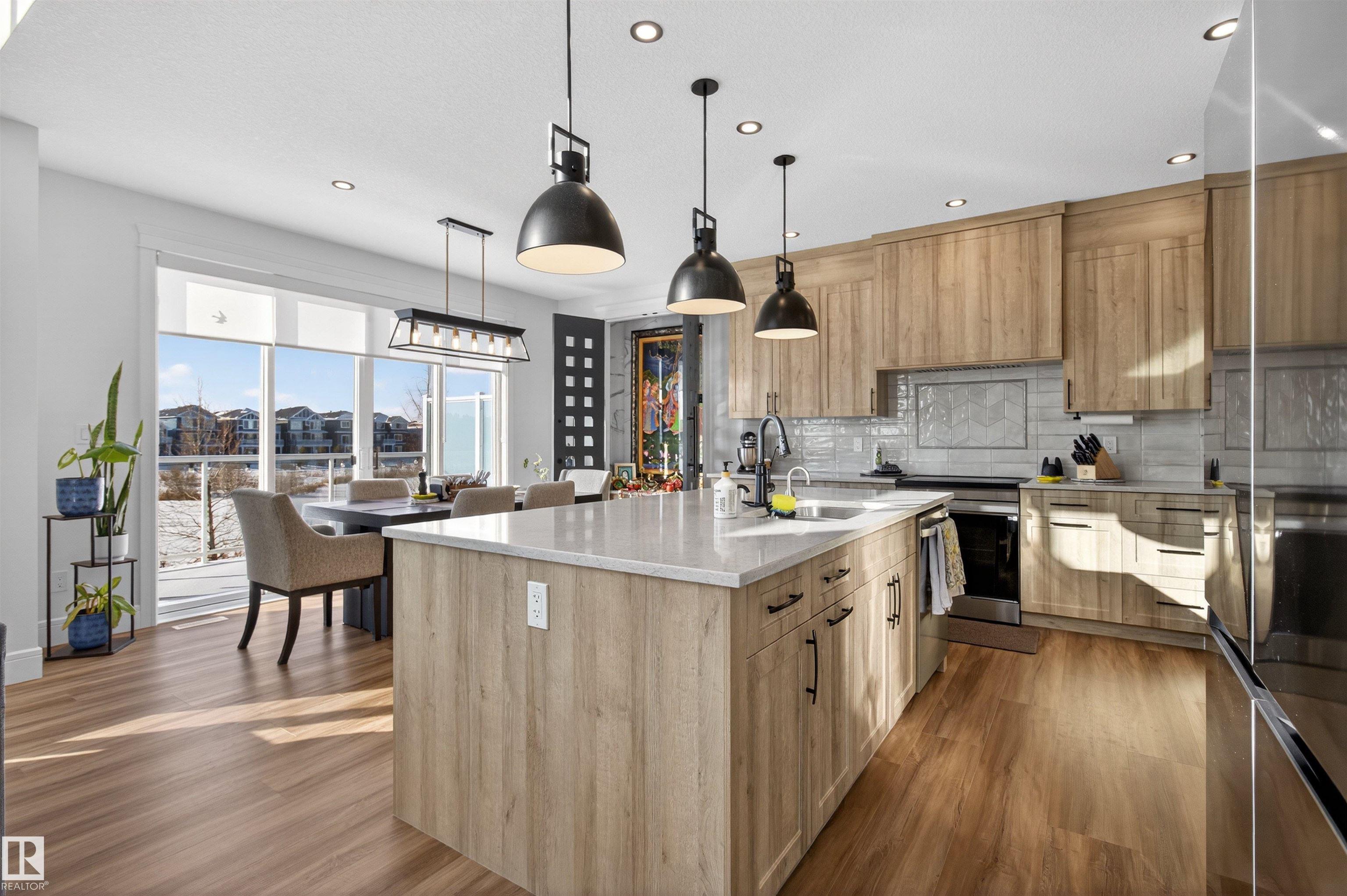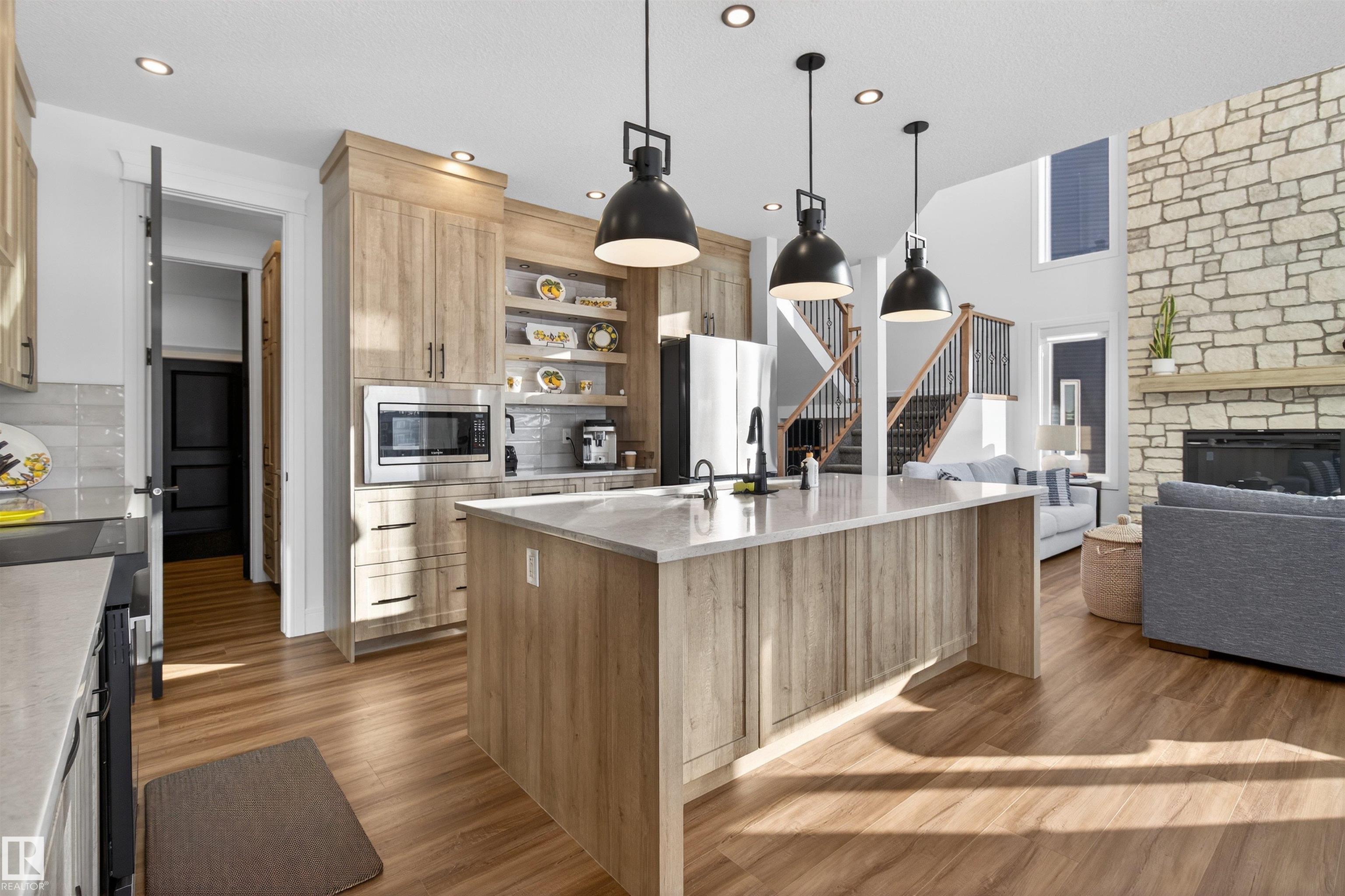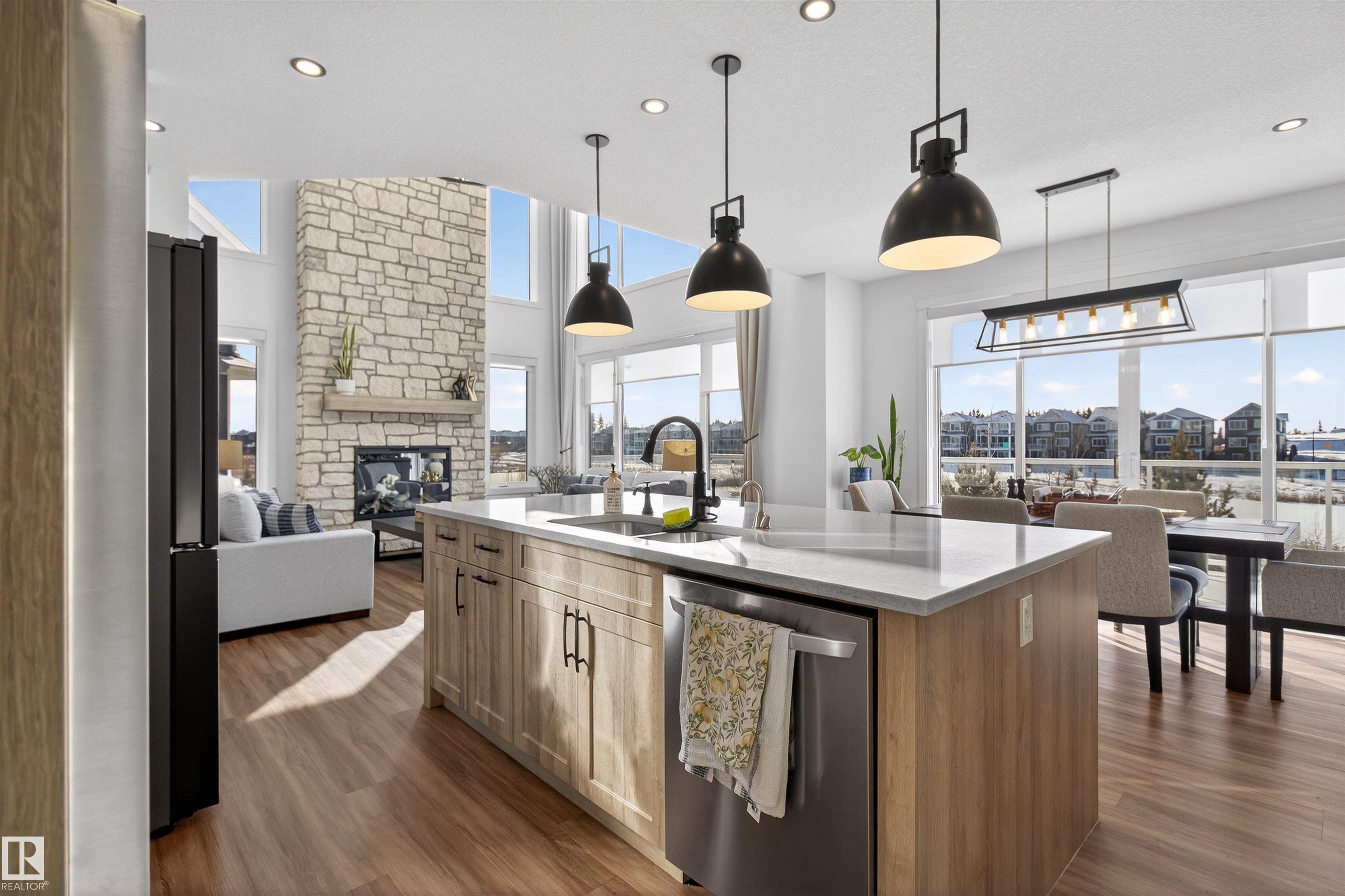 GORGEOUS CUSTOM BUILT 2 STOREY WALKOUT! BACKING THE POND! Welcome to Glenridding Ravine in south Edmonton. Prime location situated in a quiet cul-de-sac. Featuring an open concept with 2500 sq ft plus a FULLY FINISHED walkout basement. Modern design with HIGH QUALITY finishings throughout! Huge entry way, hardwood floors & spacious living room with soaring ceilings. Stunning stone-featured floor to ceiling fireplace! An abundance of windows to enjoy the views! CHEF'S DREAM KITCHEN! Beautiful cabinetry, Quartz countertops, highend appliances & a walk-through pantry. Main floor bedroom, 3 piece bathroom, mud room and dog wash. Large dining area & a massive deck that looks over the pond. Upstairs are 3 bedrooms, a 5 piece bathroom, large laundry room and a LUXURIOUS 5-PIECE ENSUITE in the Primary Bedroom plus huge walk-through closet! Entertain your friends in the basement Rec Room! AWESOME GYM, & 3 piece bathroom. LOVE THE PRIVATE BACKYARD! Double attached garage & beautiful curb appeal! OUTSTANDING VALUE!!
