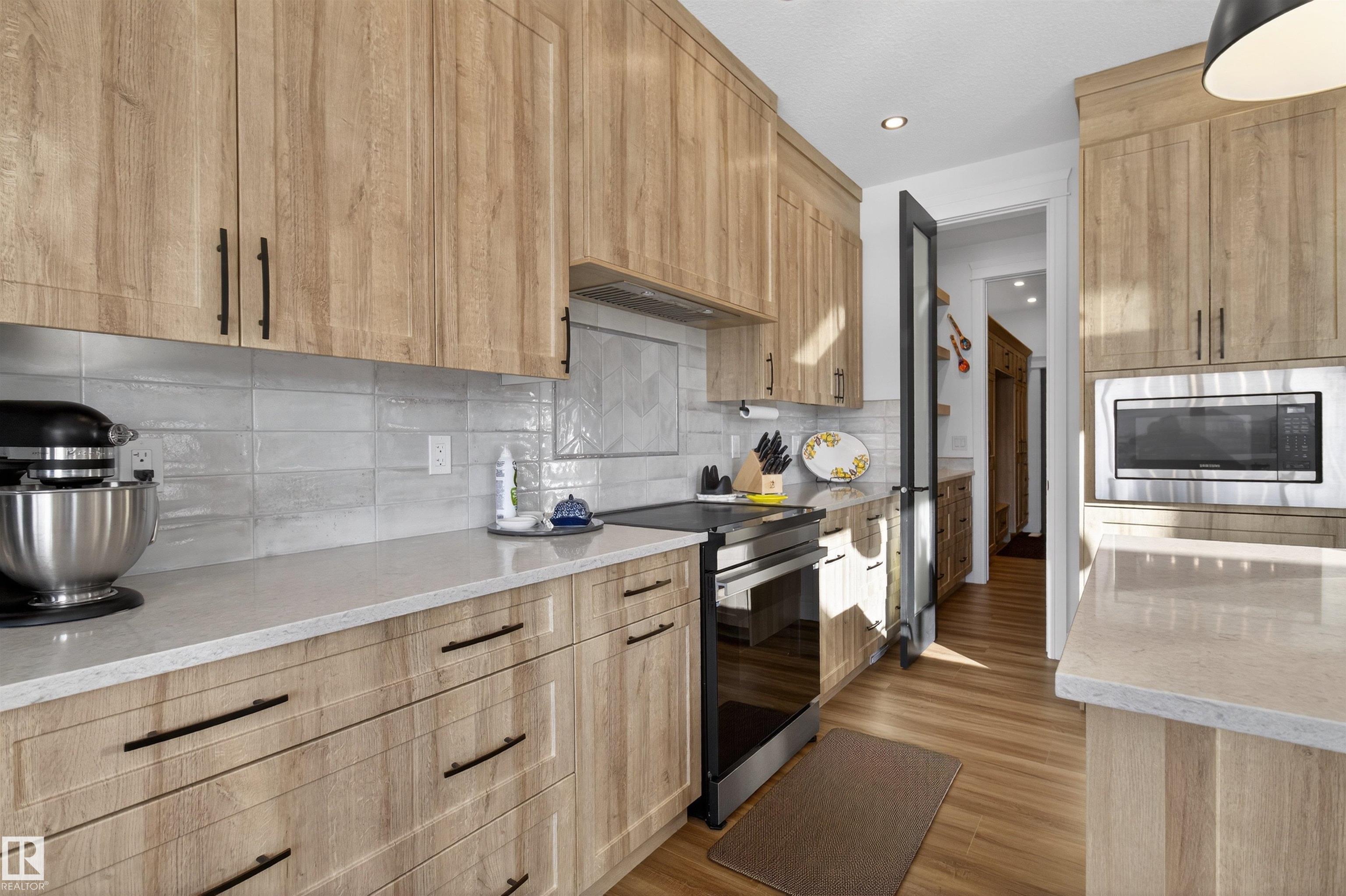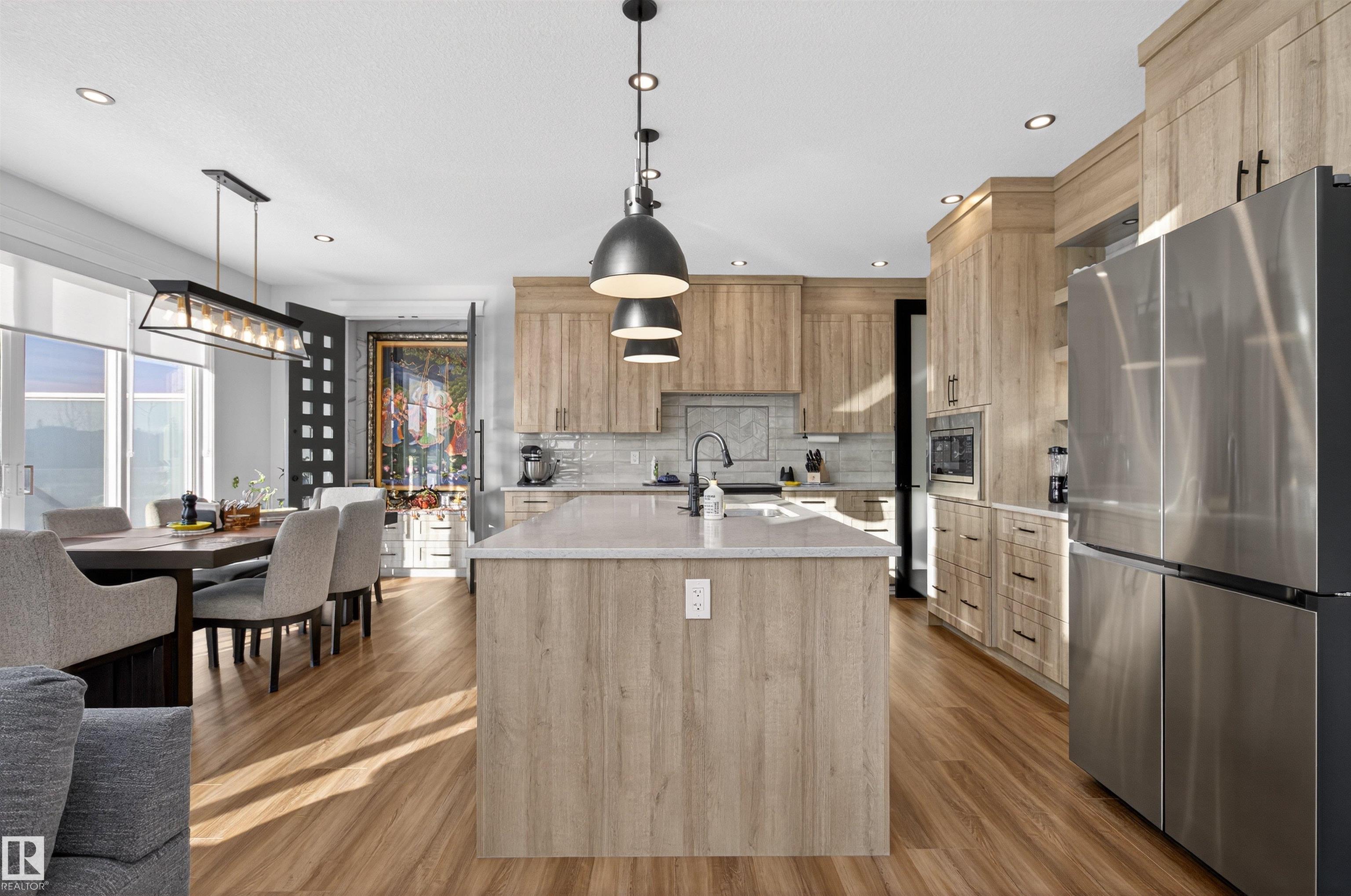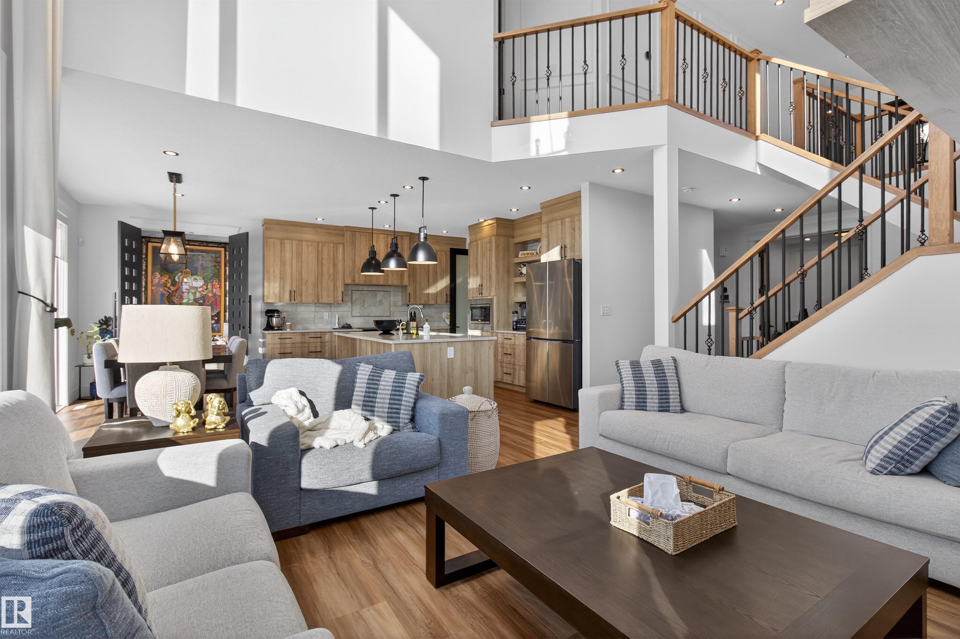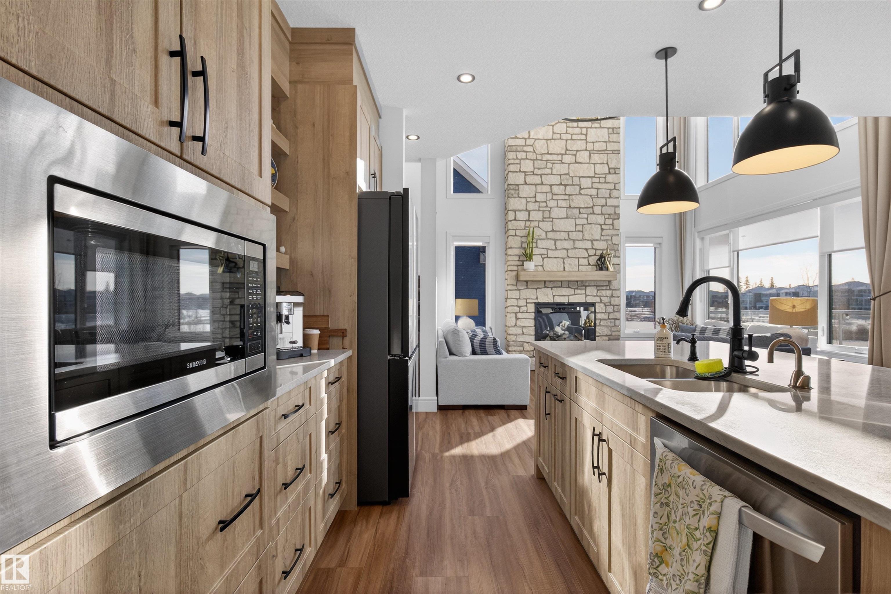 GORGEOUS CUSTOM BUILT 2 STOREY WALKOUT! BACKING THE POND! Welcome to Glenridding Ravine in south Edmonton. Prime location situated in a quiet cul-de-sac. Featuring an open concept with 2500 sq ft plus a FULLY FINISHED walkout basement. Modern design with HIGH QUALITY finishings throughout! Huge entry way, hardwood floors & spacious living room with soaring ceilings. Stunning stone-featured floor to ceiling fireplace! An abundance of windows to enjoy the views! CHEF'S DREAM KITCHEN! Beautiful cabinetry, Quartz countertops, highend appliances & a walk-through pantry. Main floor bedroom, 3 piece bathroom, mud room and dog wash. Large dining area & a massive deck that looks over the pond. Upstairs are 3 bedrooms, a 5 piece bathroom, large laundry room and a LUXURIOUS 5-PIECE ENSUITE in the Primary Bedroom plus huge walk-through closet! Entertain your friends in the basement Rec Room! AWESOME GYM, & 3 piece bathroom. LOVE THE PRIVATE BACKYARD! Double attached garage & beautiful curb appeal! OUTSTANDING VALUE!!