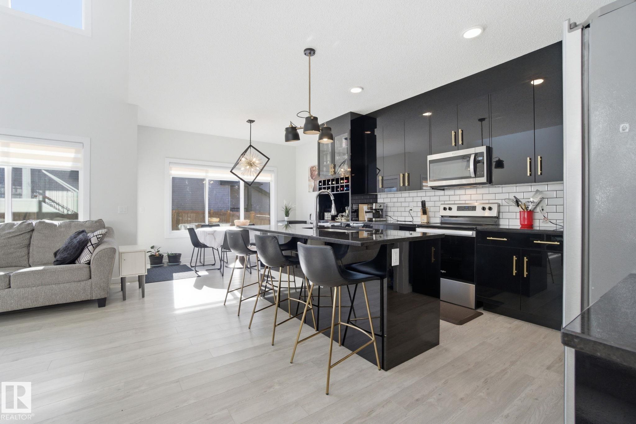 Welcome to this beautiful SOUTH-BACKING home in Glenridding Ravine with over 2,660 sq ft of living space, including a FULLY LEGAL BASEMENT SUITE. The main floor features a versatile bedroom/flex room, a bright open-to-below living room, and a luxurious kitchen with QUARTZ countertops, STAINLESS STEEL appliances, ample cabinetry, pantry and a stylish WINE/ESPRESSO BAR with GLASS CABINETRY to entertain guests. A full 4-pc bathroom makes the main level ideal for guests or multi-generational living. Upstairs offers a central bonus room, 3 spacious bedrooms, a 4-pc bath, laundry and a primary suite with a 5-PC ENSUITE featuring your own SOAKER TUB and WALK-IN CLOSET. The LEGAL BASEMENT SUITE includes a full kitchen, living room, bedroom, 4-pc bath and its own laundry. Enjoy summer BBQs on your DECK overlooking the SOUTH-facing backyard, or stay cool indoors with central A/C. A double garage and nearby ravine walking trails complete this exceptional home. This is the perfect blend of luxury and functionality!