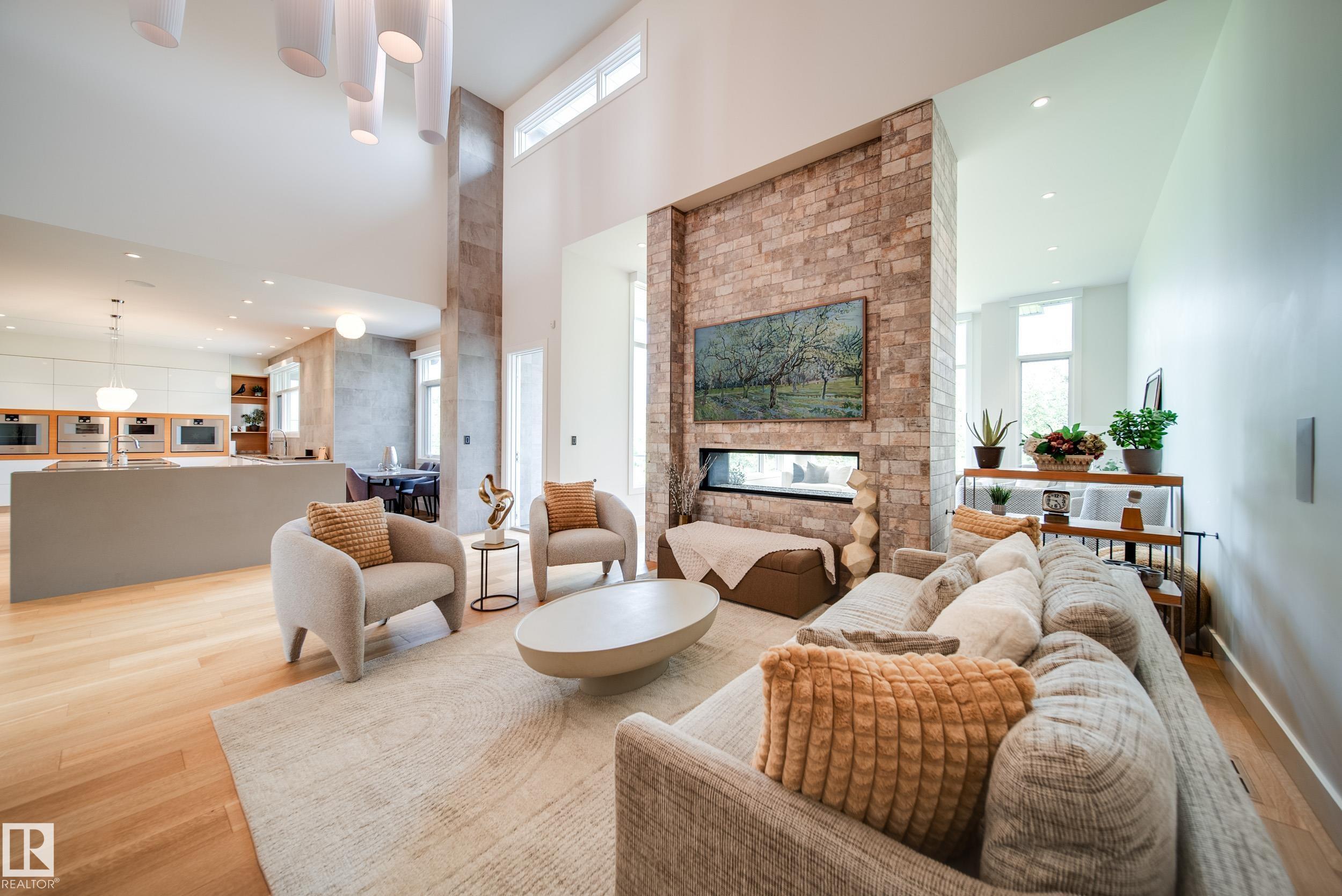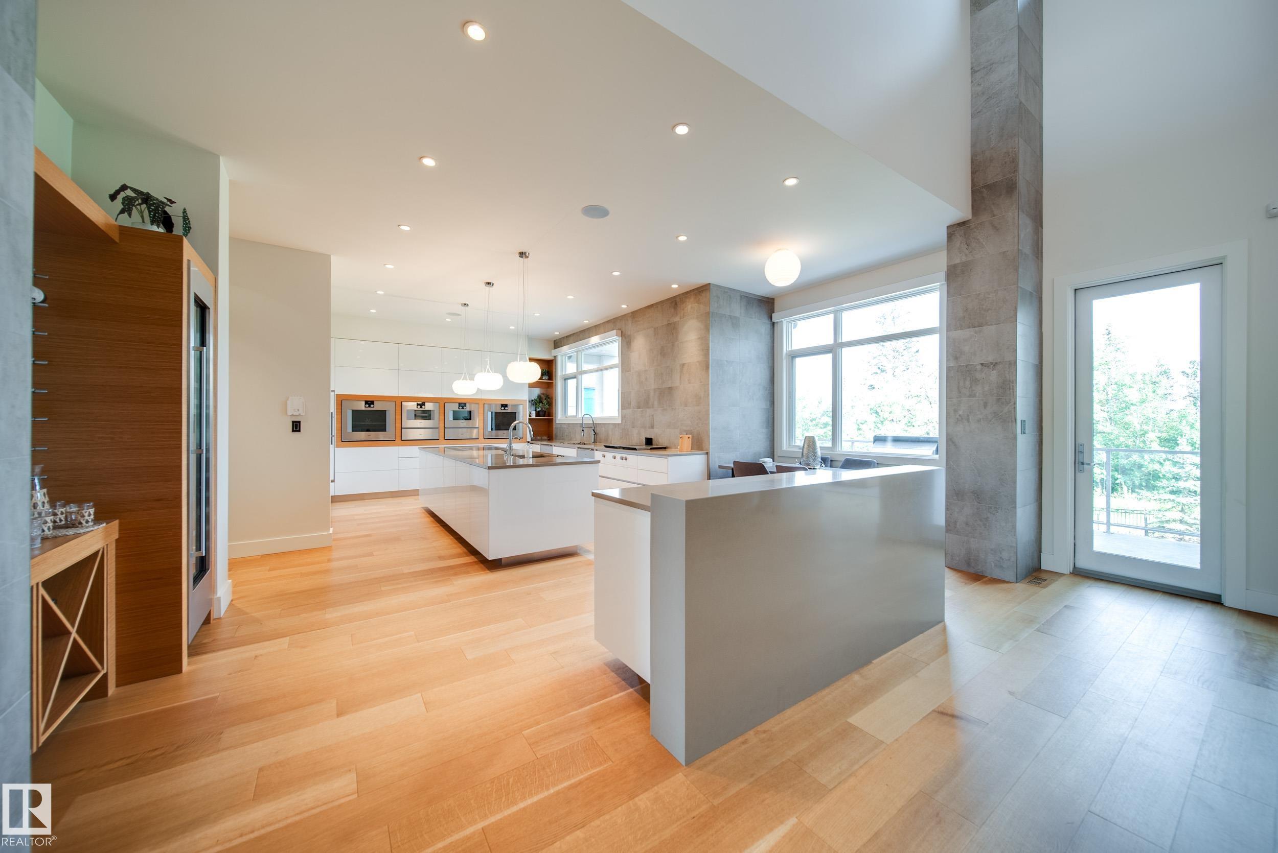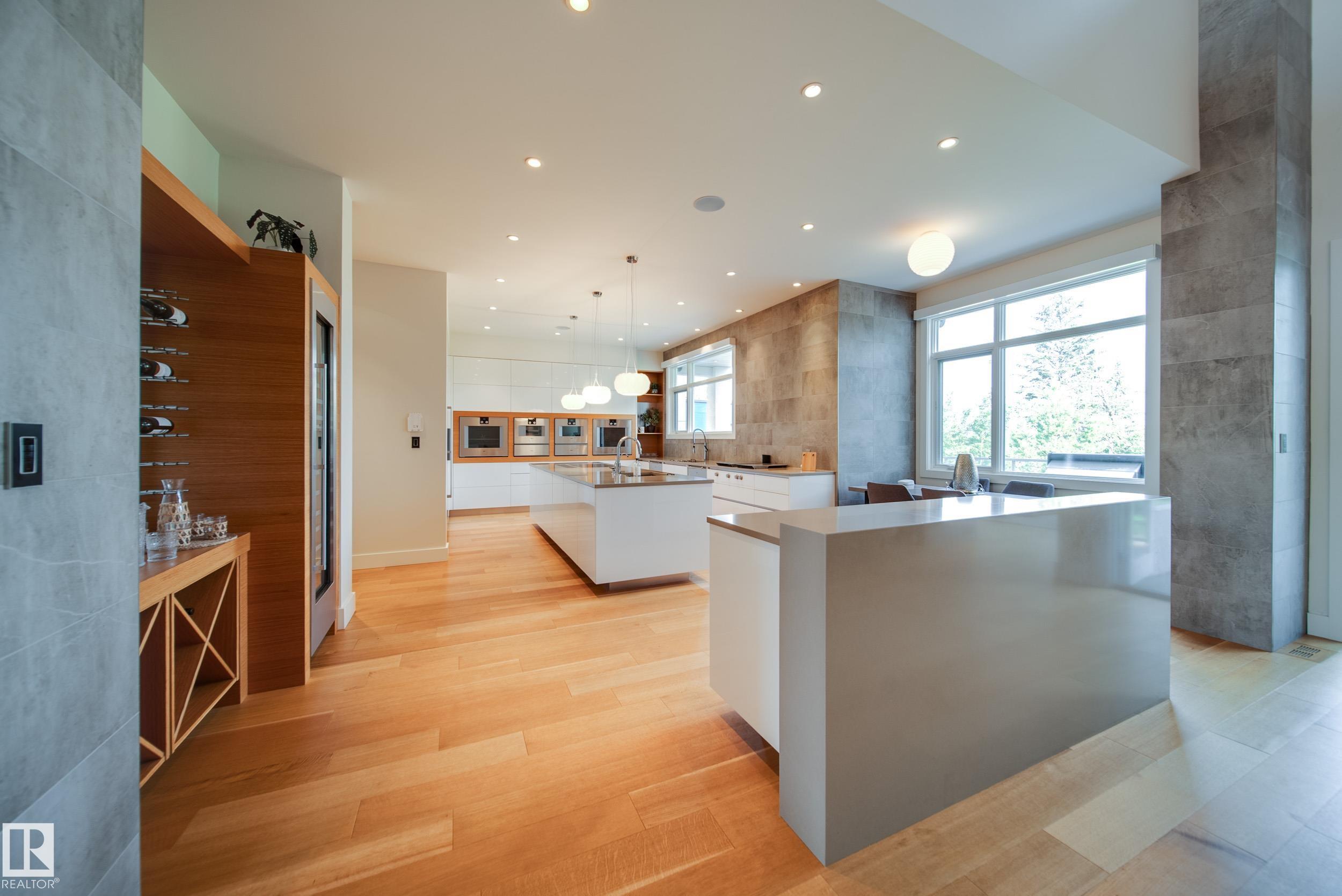 Welcome to the Former Dream Home Lottery Show home in Jagare Ridge! Built by Birkholz. This custom built 2-storey walk out offers over 7,200 sqft of luxury on an a MASSIVE 11,000 sqft RAVINE BACKING LOT! The open concept design impresses with soaring 20' ceilings, custom brick fireplace feature walls, wide plank oak floors & walls of windows bringing in endless natural light. The chef's kitchen is a true standout w/ dual islands, butler's pantry, quartz counters, premium cabinetry, built-in appliances & 4 wall ovens! The home features 5 spacious bedrooms including a main floor bedroom plus 4 bathroom's! GORGEOUS primary suite overlooking the ravine boasts huge WIC & SPA inspired ensuite bath! The fully developed walk out basement is built for entertaining w/ heated floors, a wet bar/games room, wine room, exercise area & walkout access to the covered patio and yard. Complete w/ a rooftop patio w/ panoramic views, complete home automation & a heated triple/tandem garage! Must be seen to appreciate!